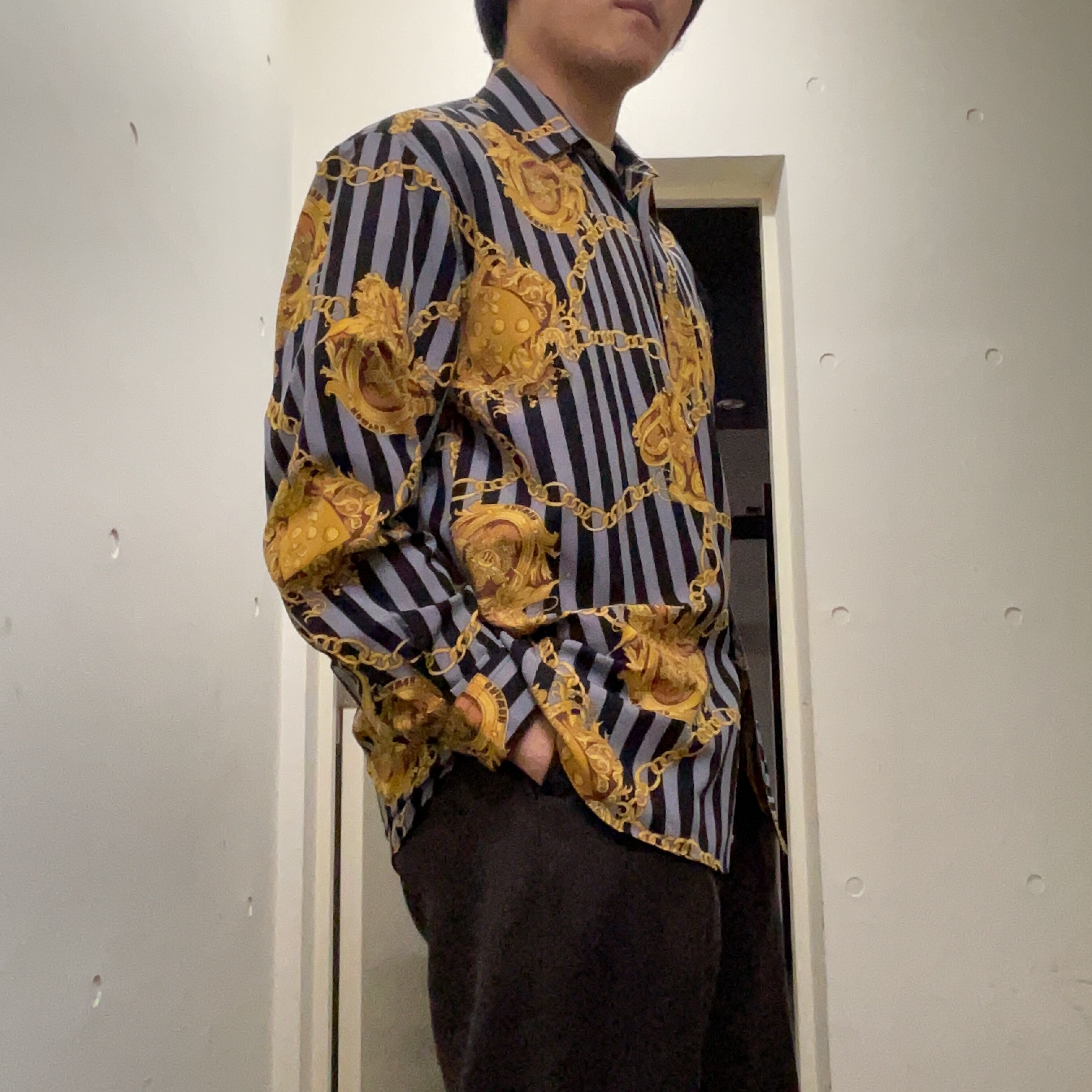 Reckless basic fashion Gold Accessories Pattern Shirt