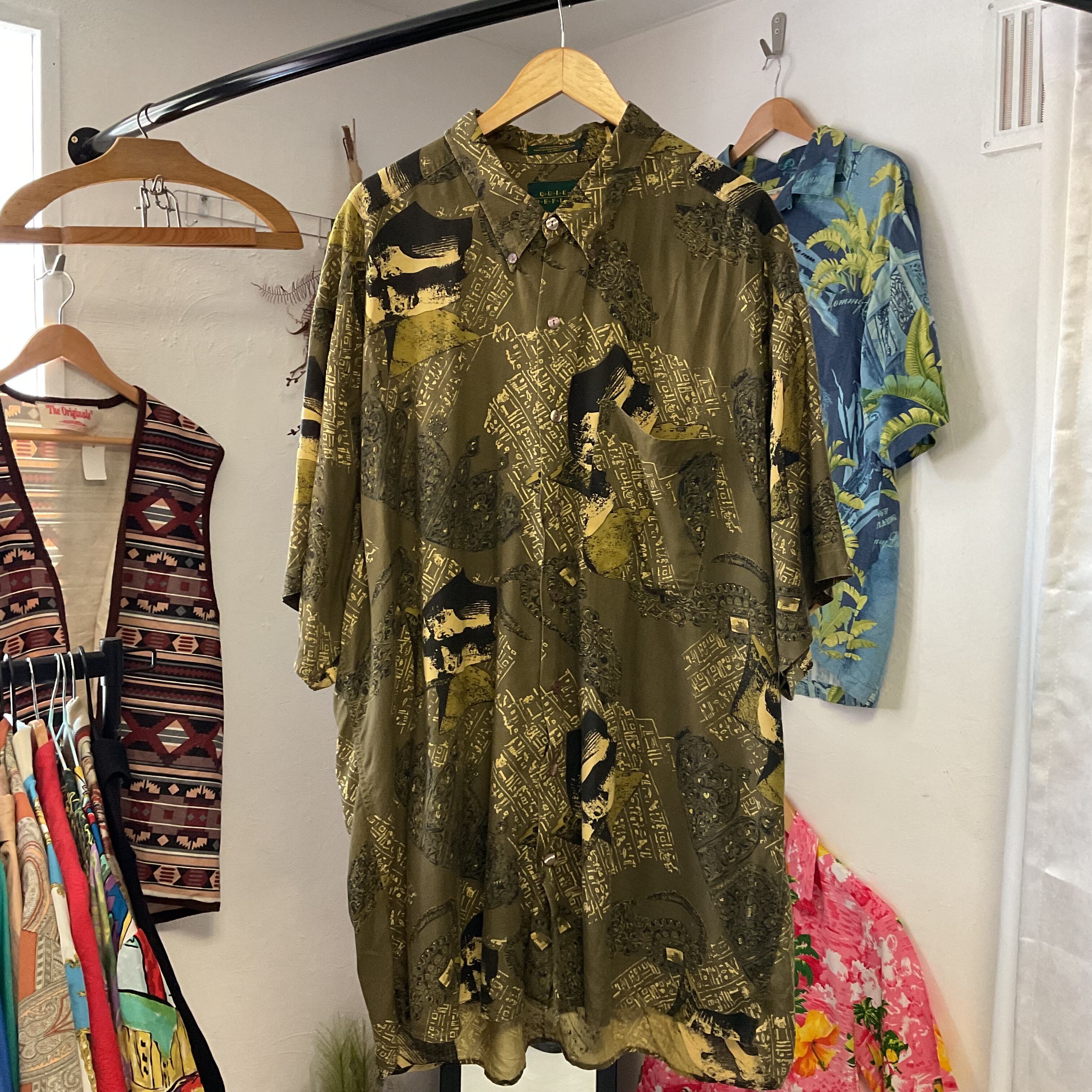 Q•U•I•C•K/R•E•F•L•E•X 2XL Egypt Pattern Rayon Shirt