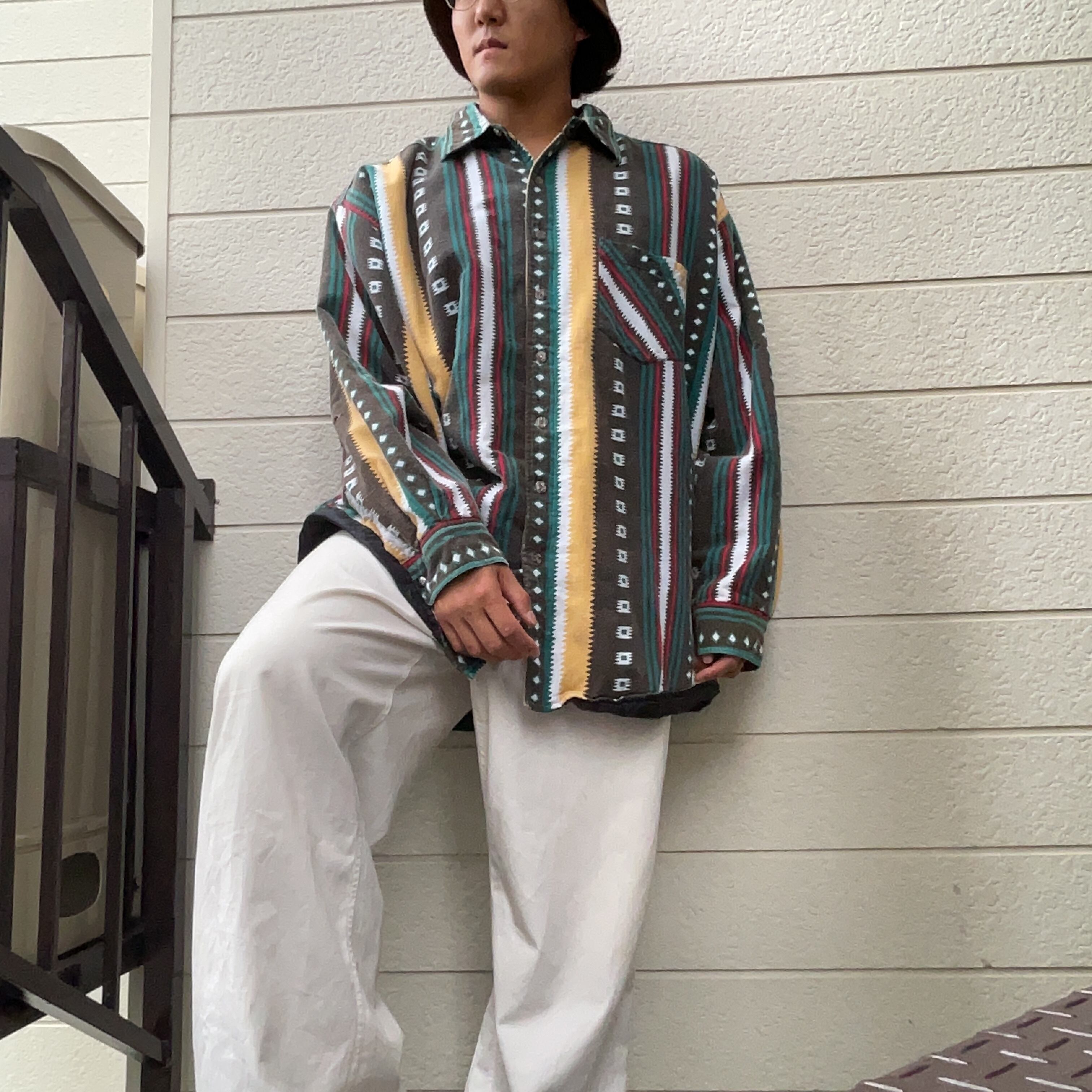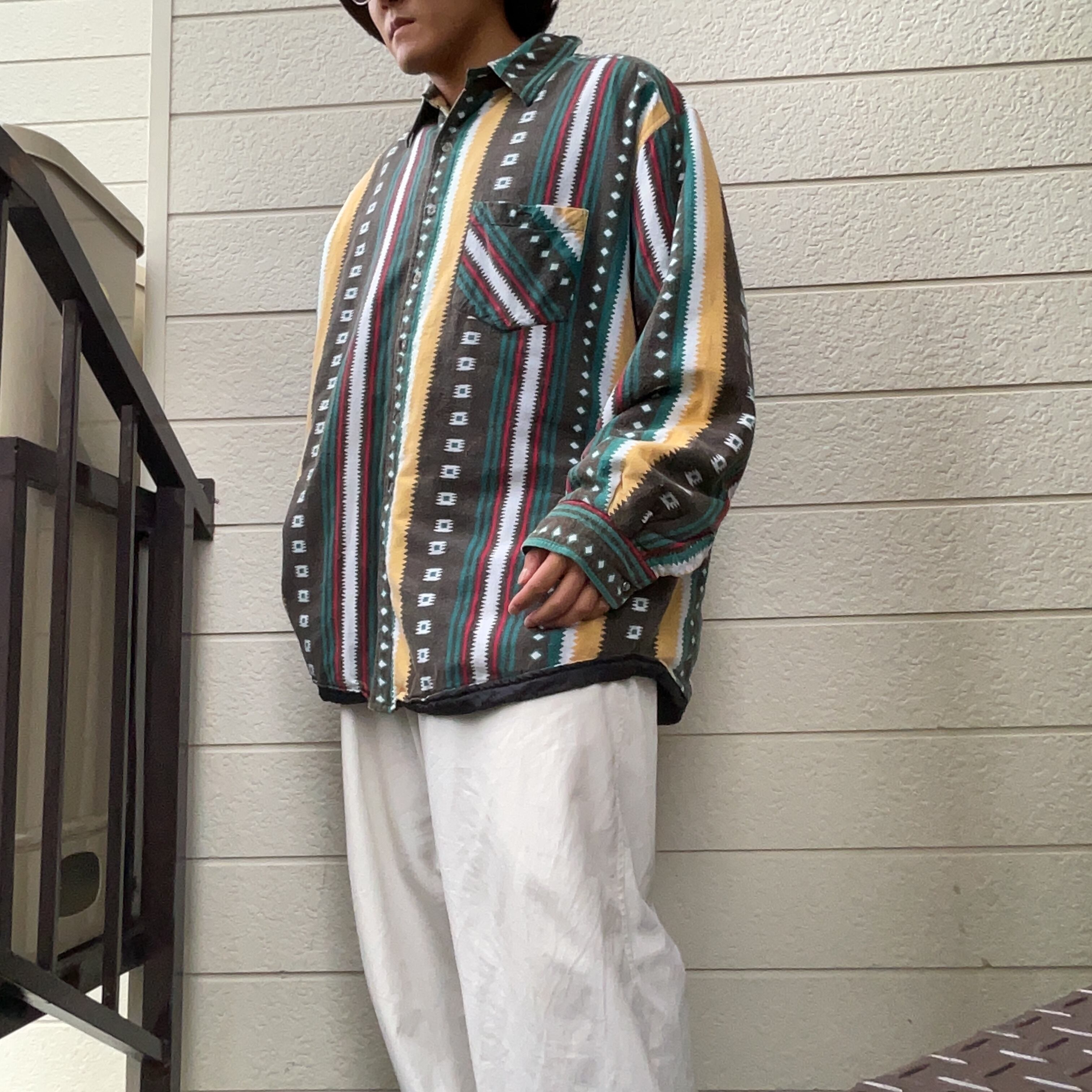 Native Pattern Stripe Thick Long Shirt
