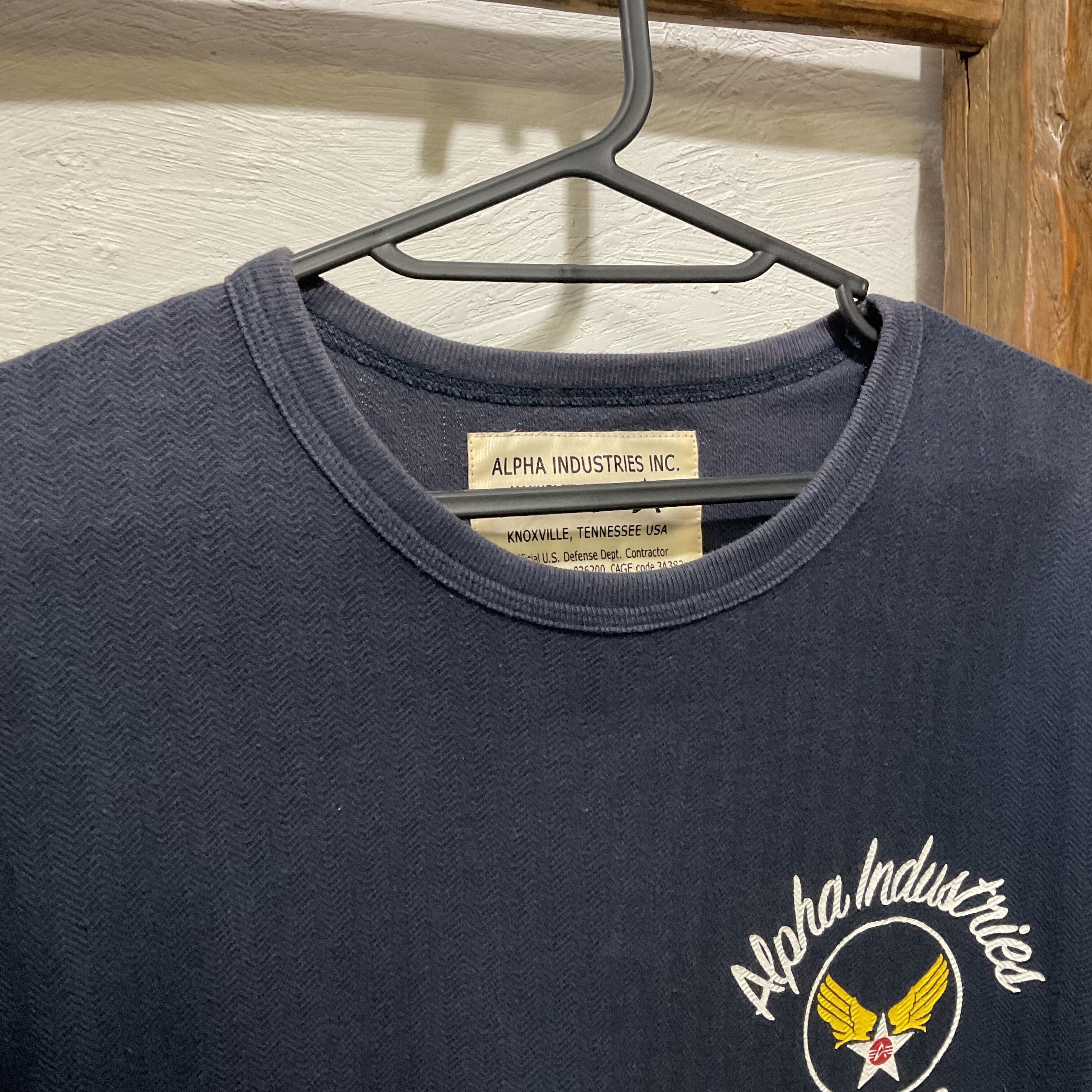 米軍納入実績を誇る Alpha Industries のプリントTシャツ。フライトジャケットで有名な同ブランドらしく、胸元には空軍インシグニアをアレンジしたロゴを配置。タフな生地感とミリタリーの雰囲気を日常で楽しめる一枚です。