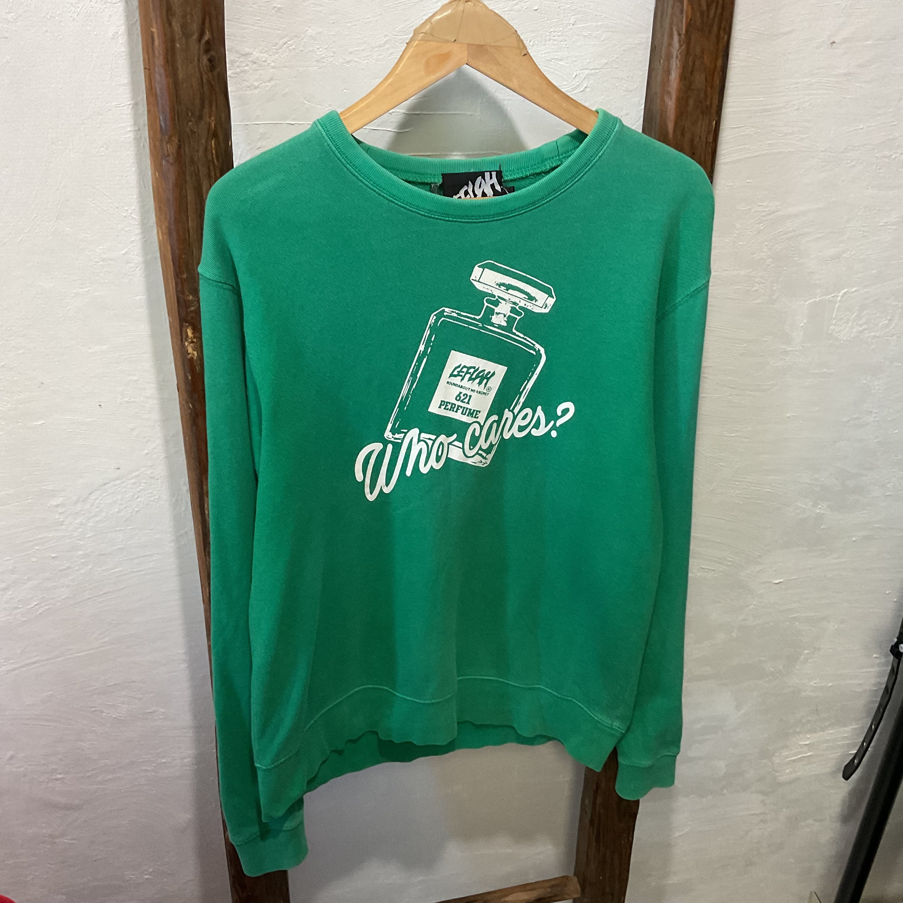 LEFTISH “Who Cares?” Perfume Graphic Crewneck Sweatshirt