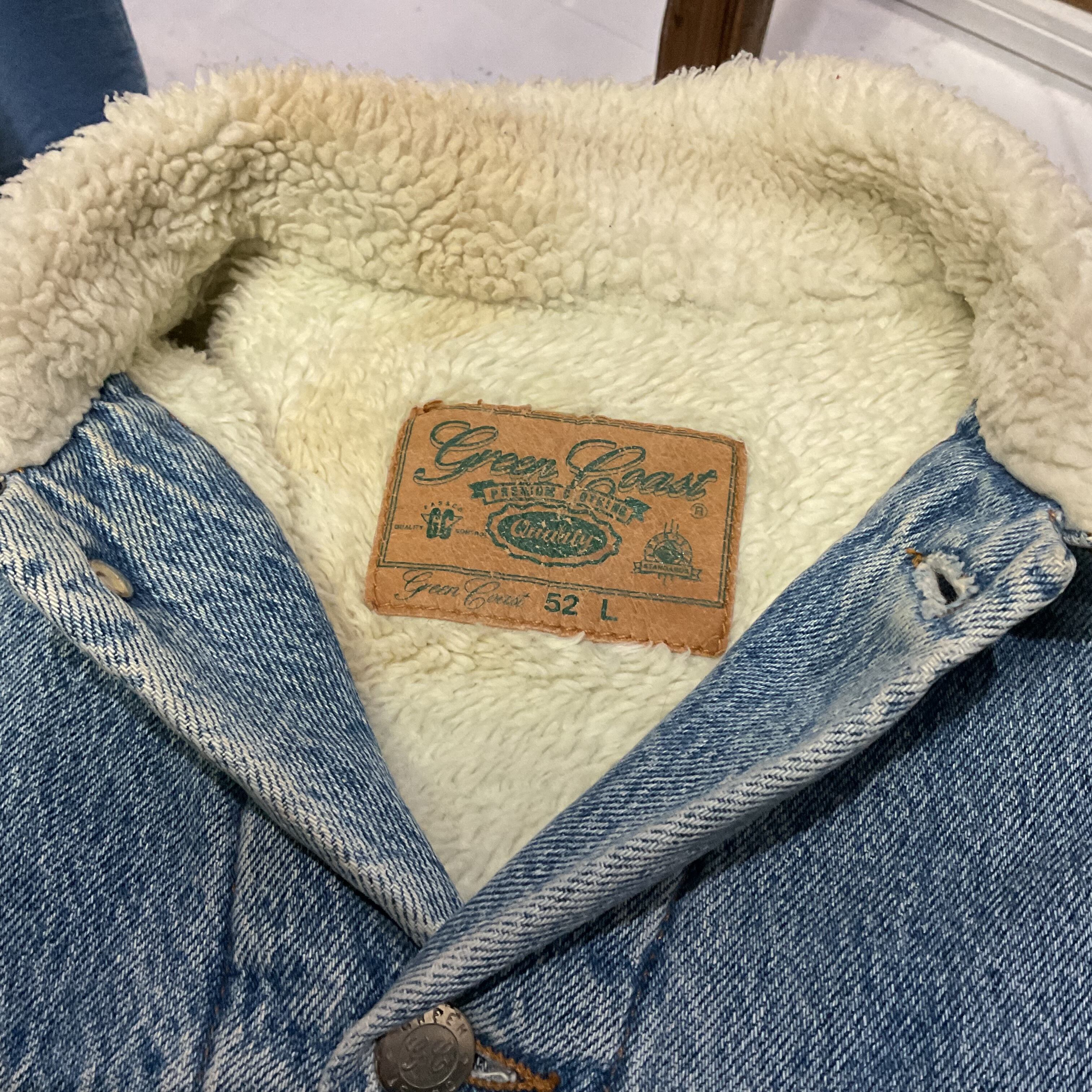 Vintage Green Coast Sherpa Denim Jacket 52L Oversized Fit