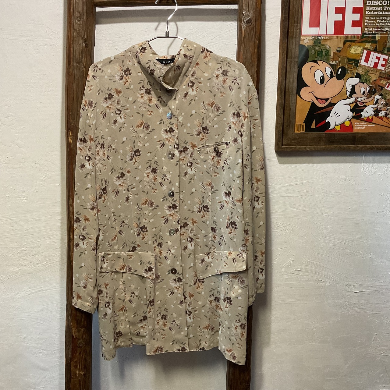 90s Vintage GIVE Floral Long Retro Blouse Tunic Shirt
