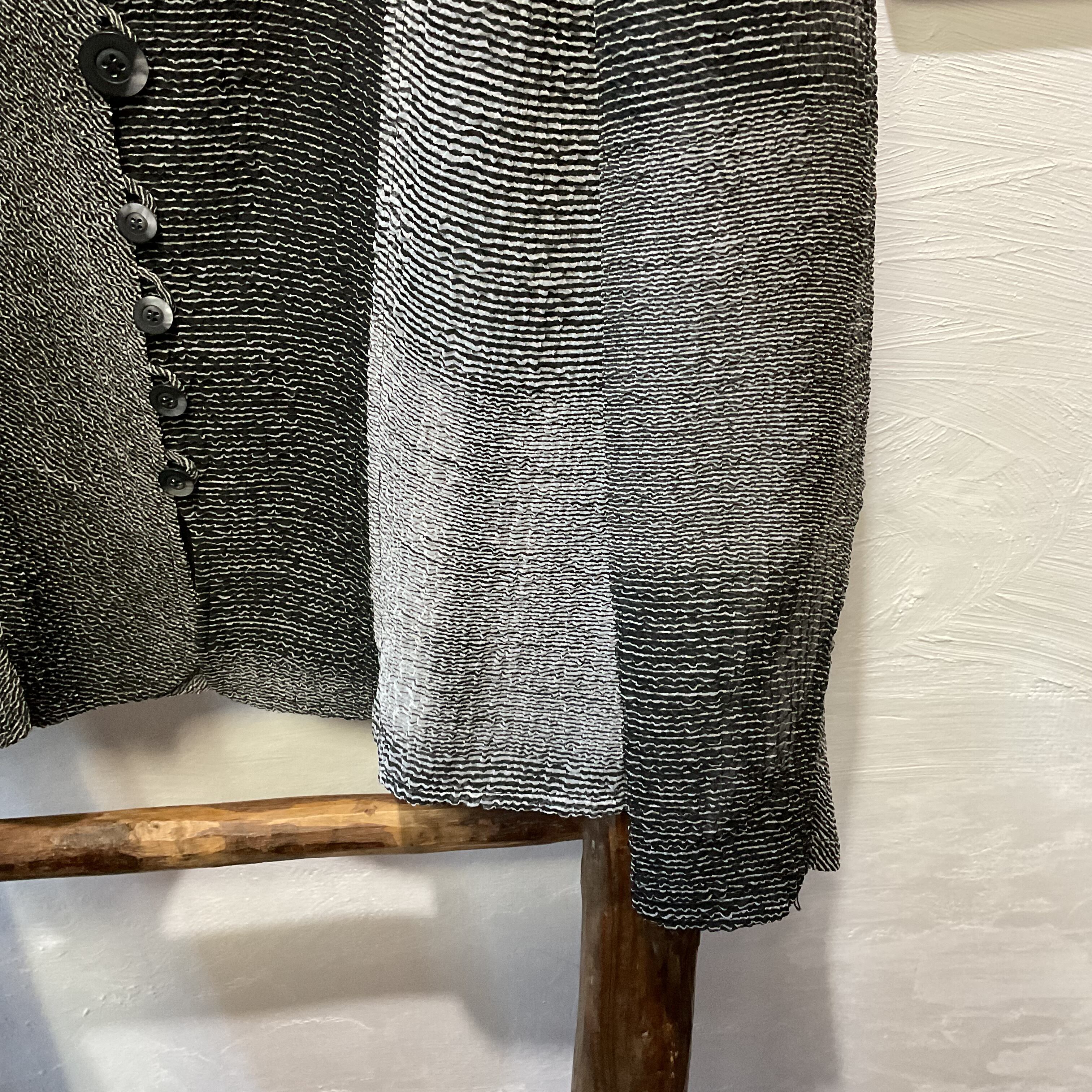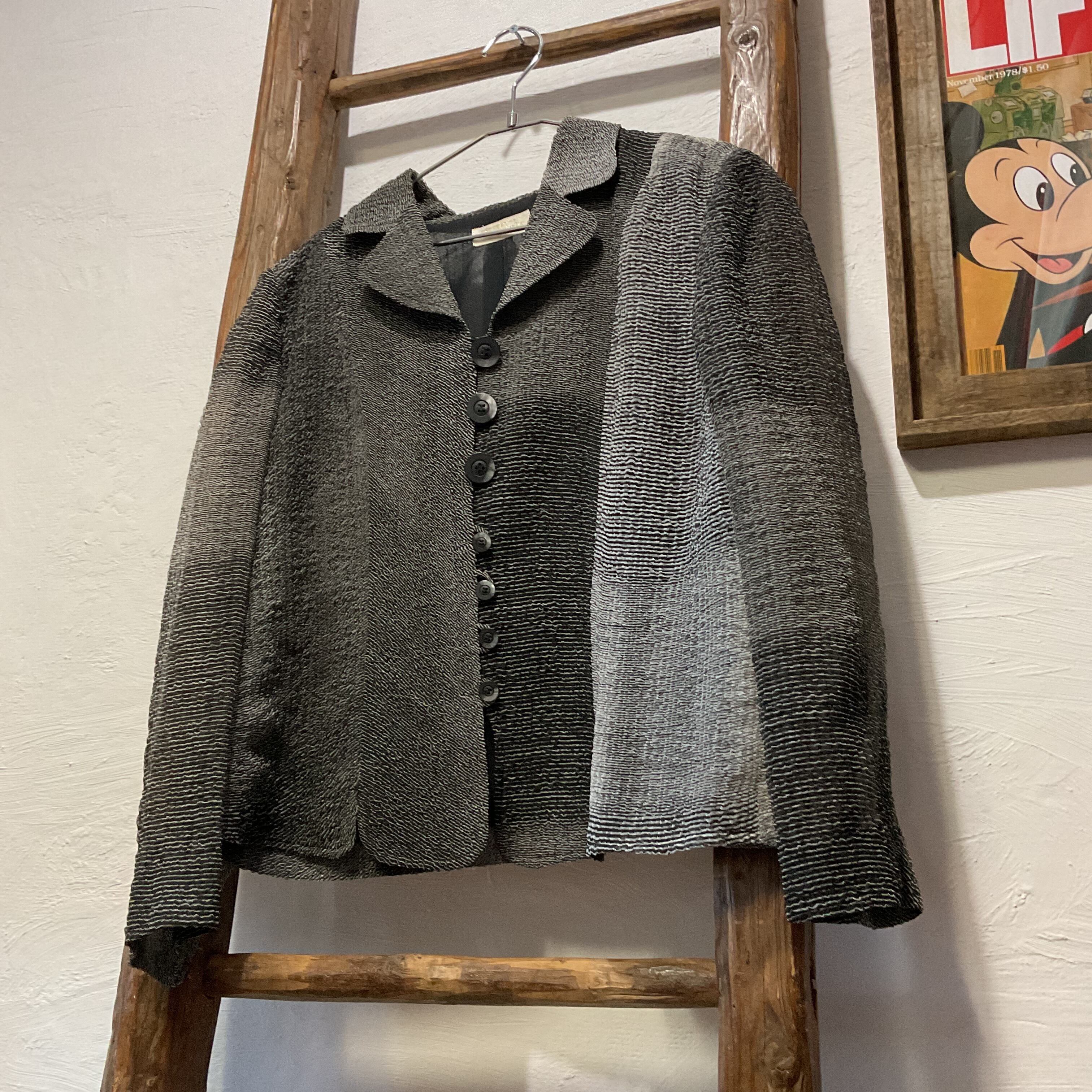 ブラック×グレーの落ち着いた配色に縦ボタンが映え、上品でスタイリッシュな雰囲気。