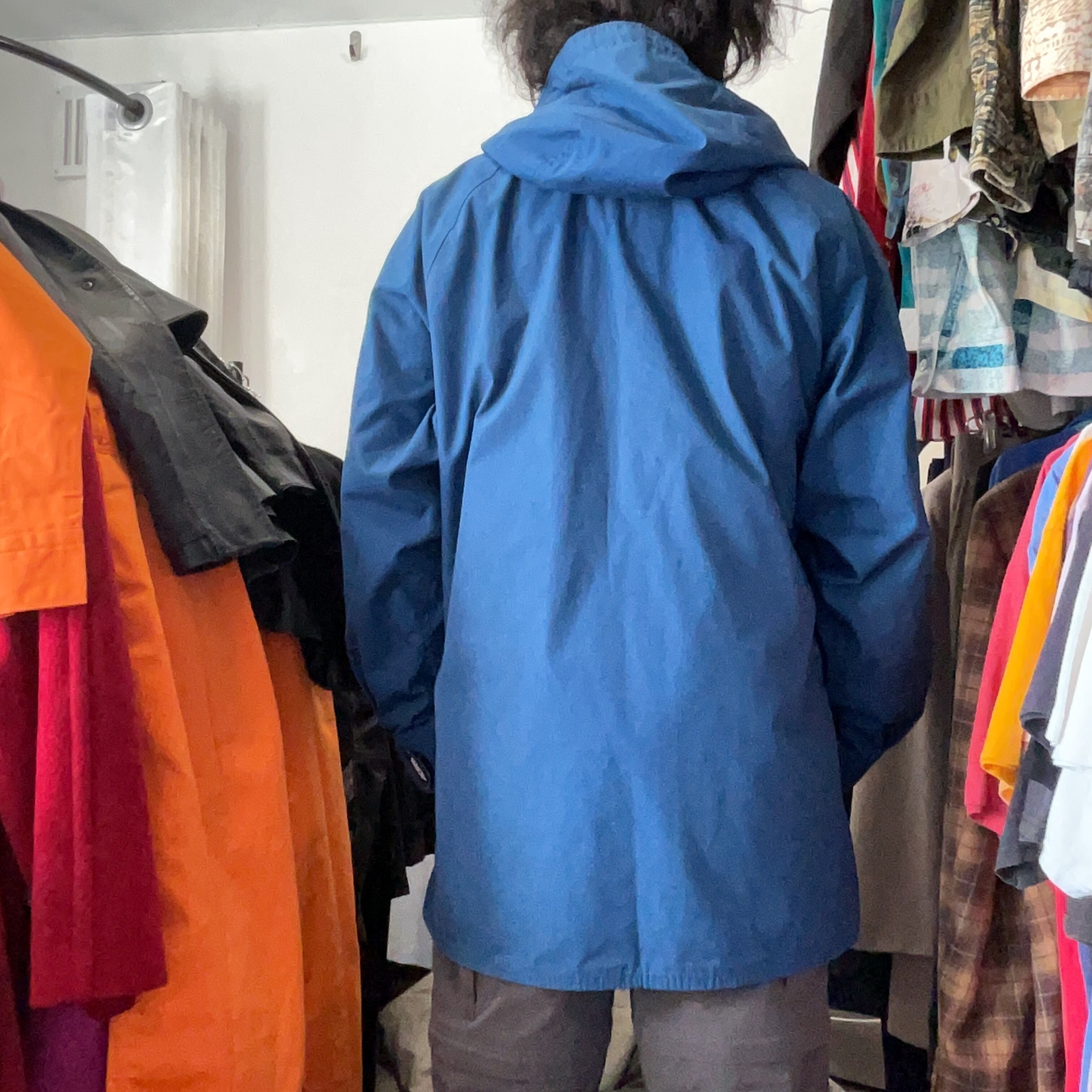 フードはドローコード付き、袖口はベルクロで調整可能。