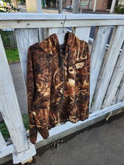 リアルな森林風景と鹿が立体的にプリントされた存在感のある1着。