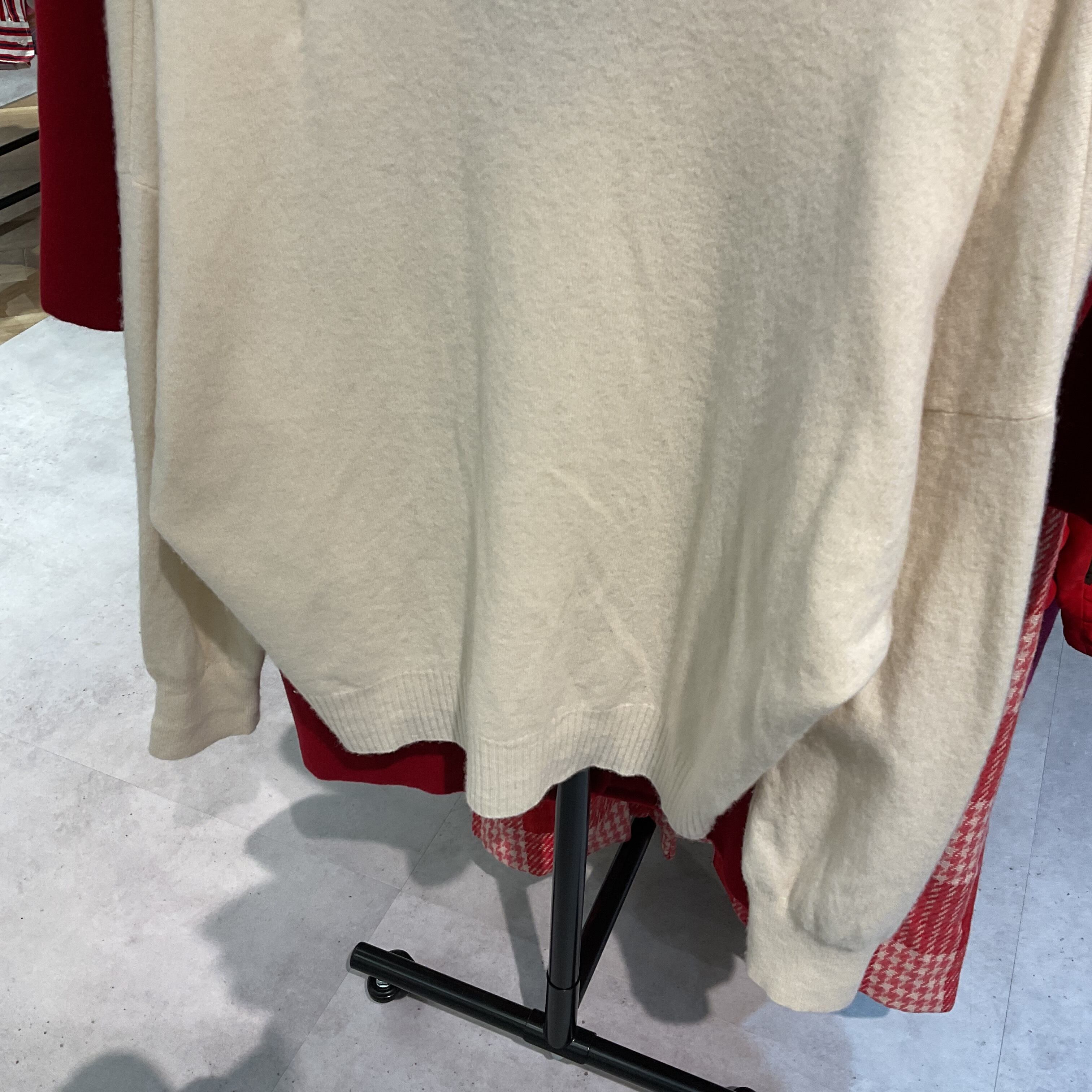 上品なオフホワイトカラーと柔らかいウール100%素材が特徴で、軽やかでふんわりとした着心地。