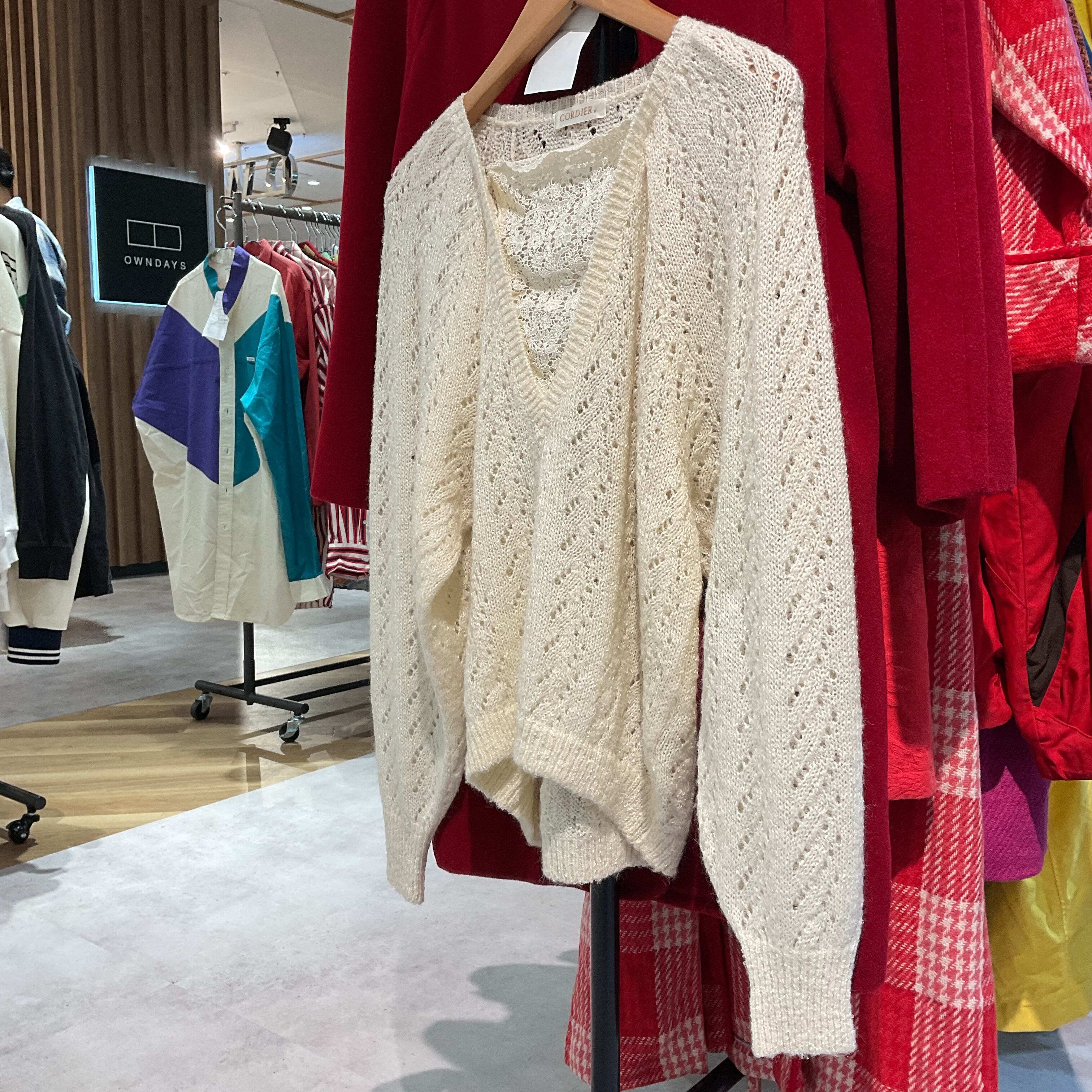 上品な大人の女性に人気のブランド「CORDIER(コルディア)」による、日本製の透かし編みニットトップス。