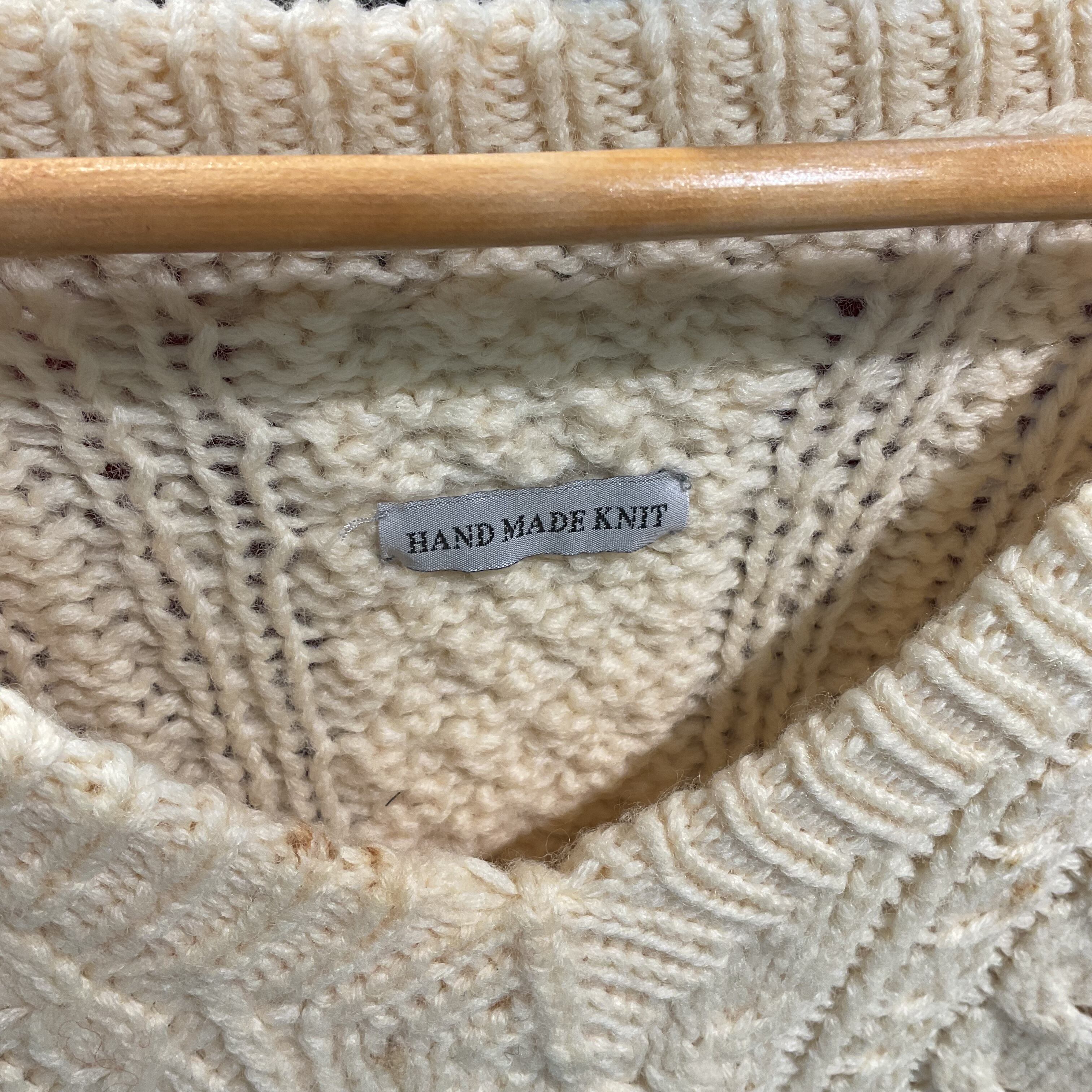 「HAND MADE KNIT」のタグが付いており、一点一点丁寧に手編みされた温かみを感じる仕上がり。