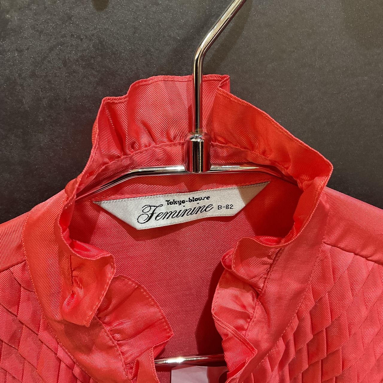 Tokyo Blouse Coral Pink Color “Feminine” Pintuck Ruffle Blouse