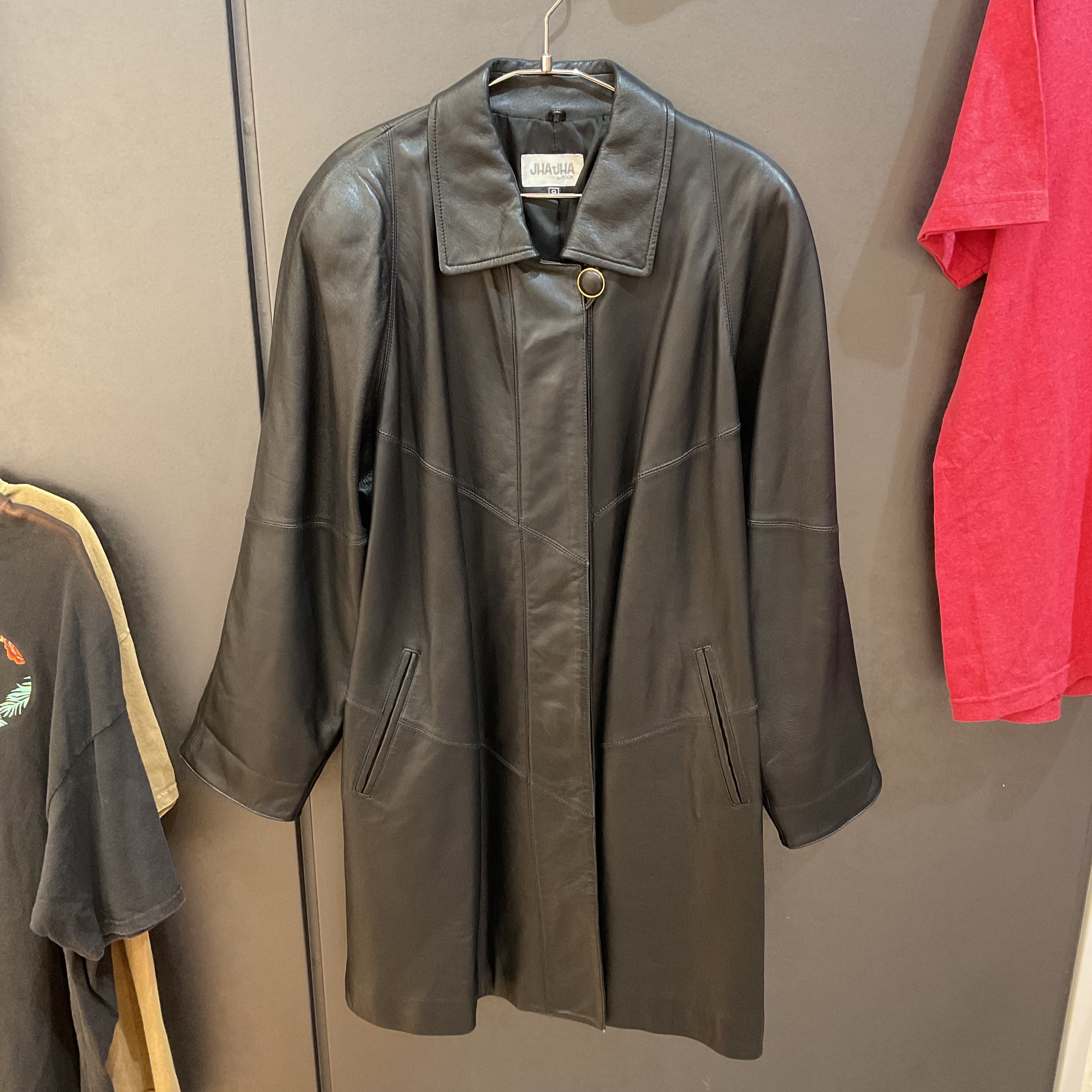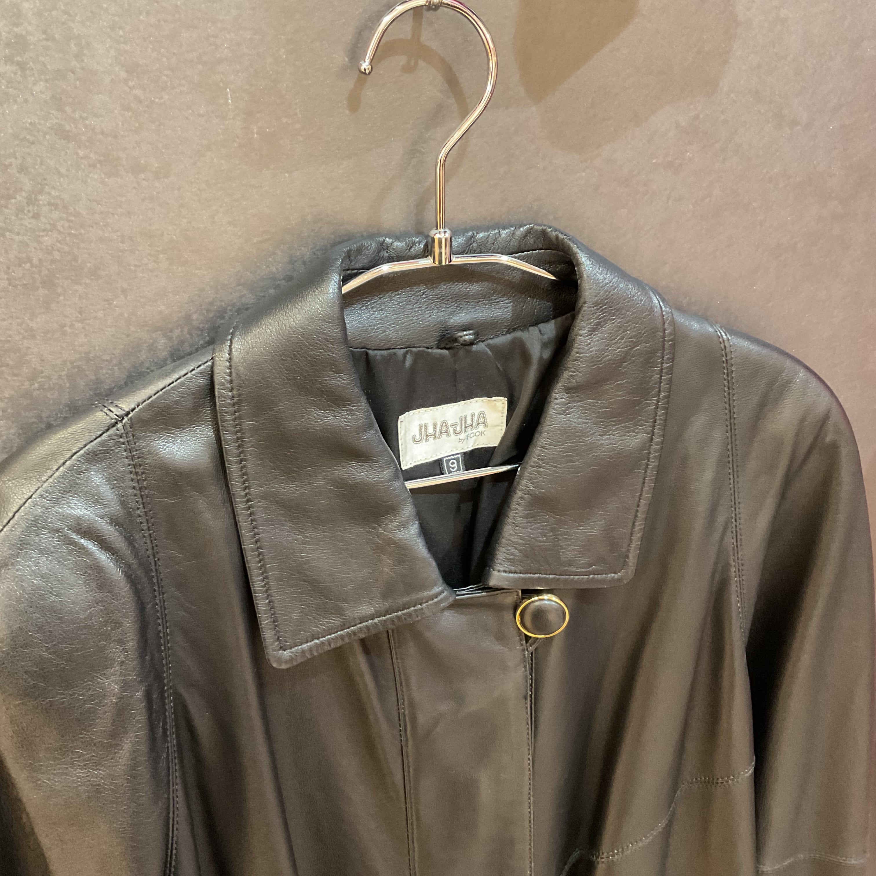 上質な本革(シープスキン系)を使用したブラックレザーコート。