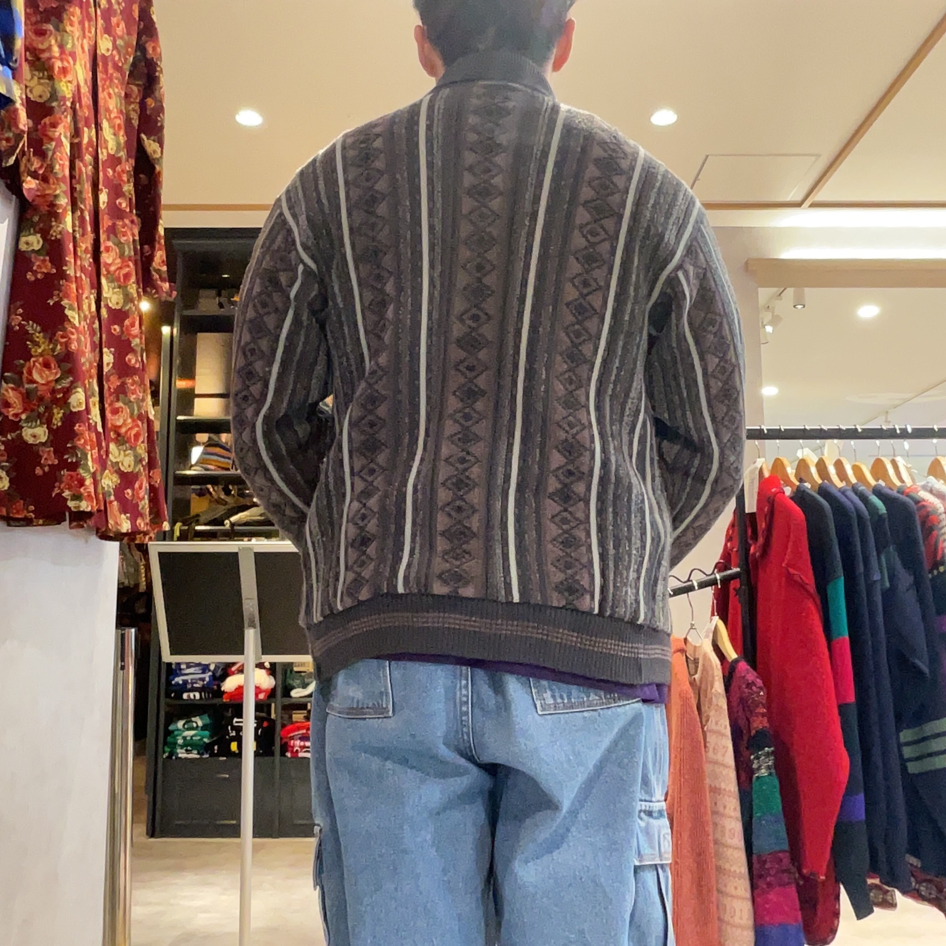 90's Bonton Geometric Pattern Shawl Collar Cardigan