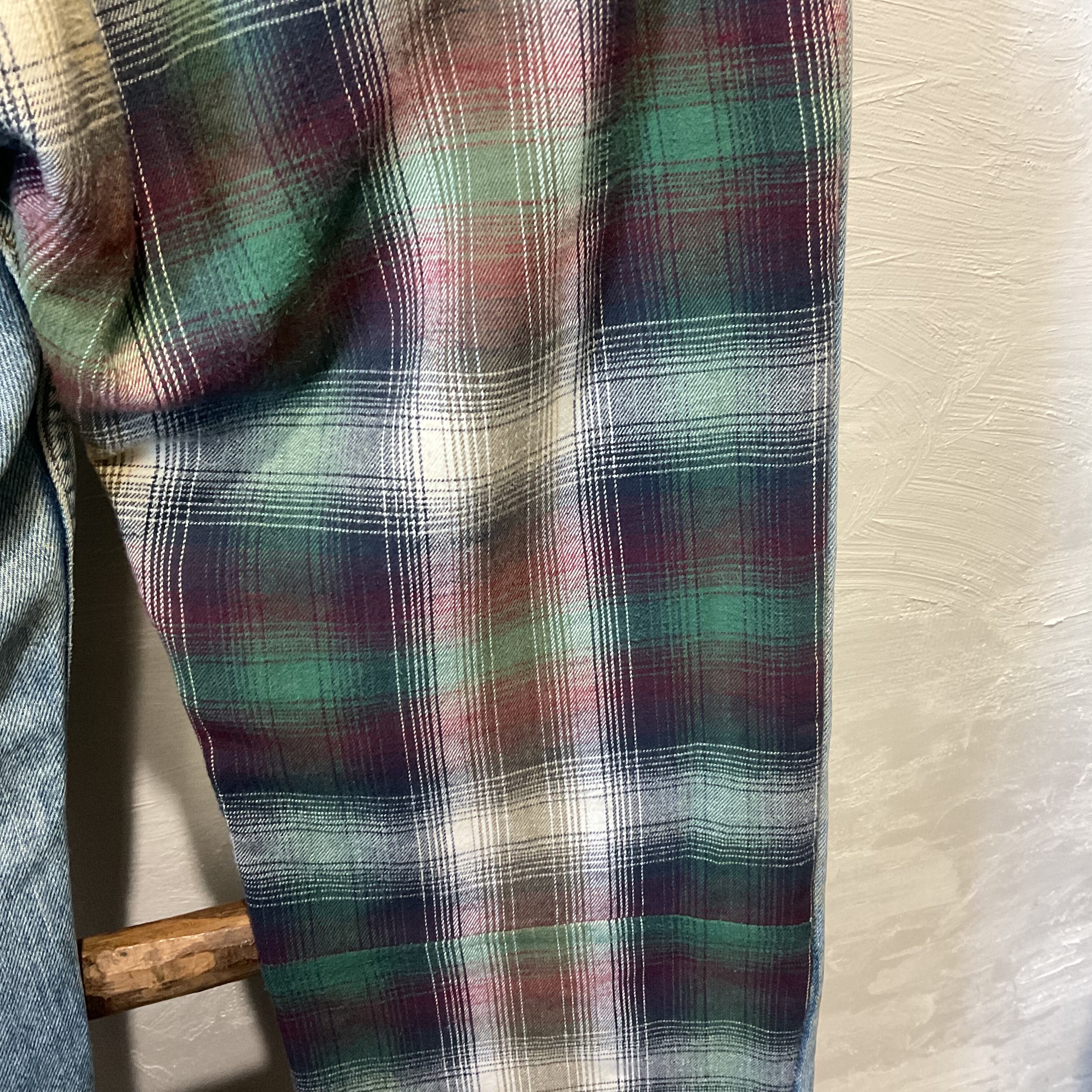 フロント全面に強めのクラッシュ加工 → 裏からチェックネル(フランネル)を当てたリメイク作品。