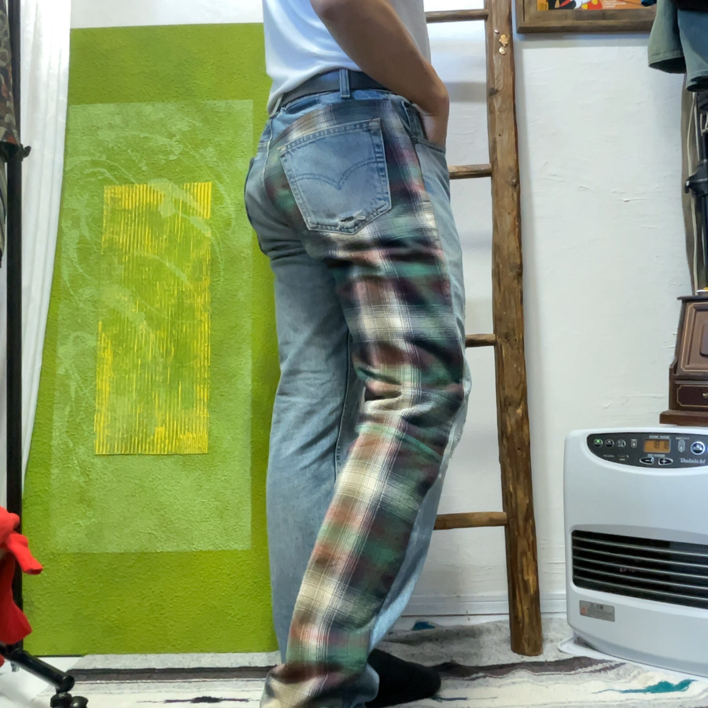 Levi’s 505 Heavy Destroyed Flannel Patchwork Remake Jeans