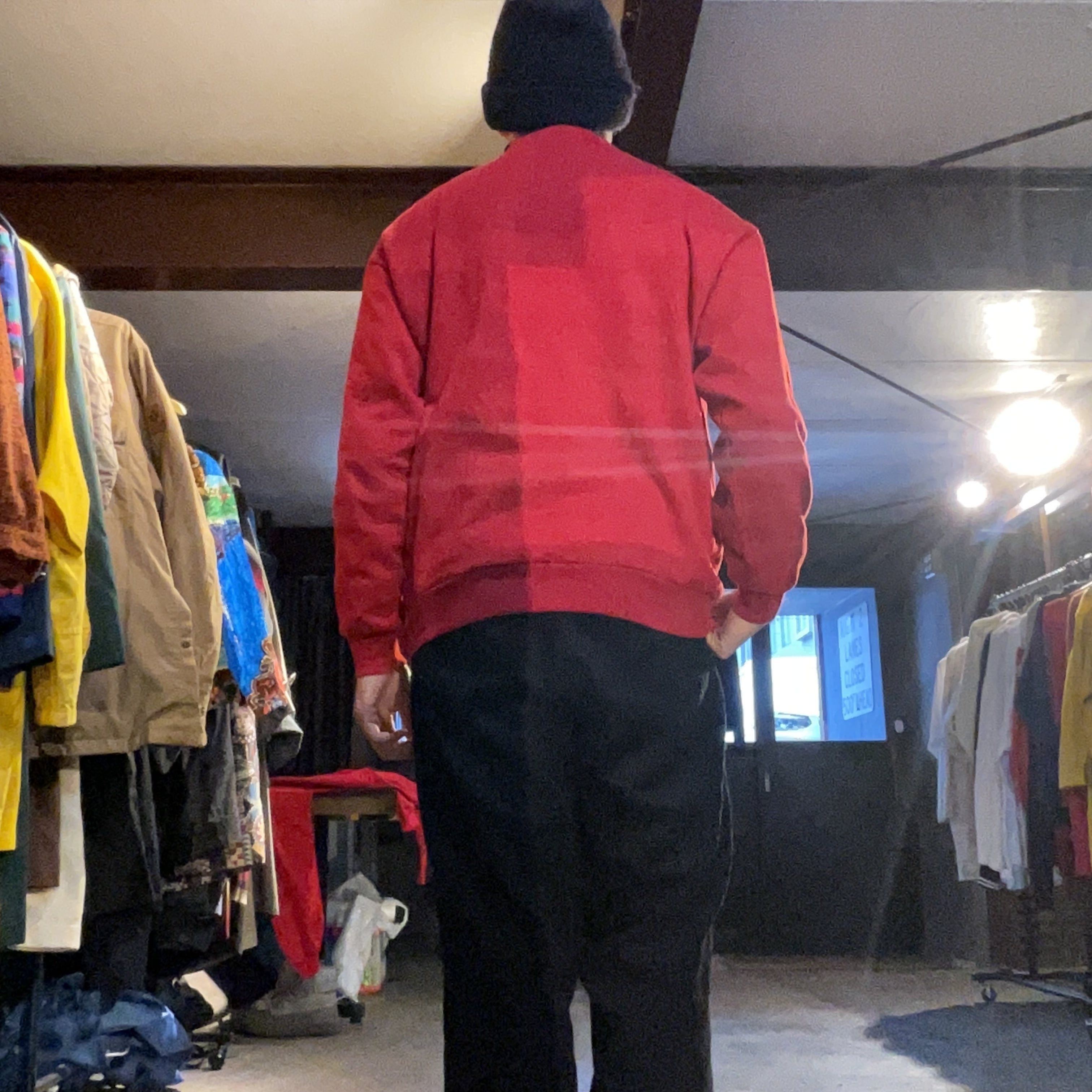生地は コットン50 / ポリ50 の軽め裏起毛で、80〜90sアメリカ製スウェット特有の柔らかいタッチ。重すぎない着心地で、冬だけでなく秋口から長く使える万能タイプ。