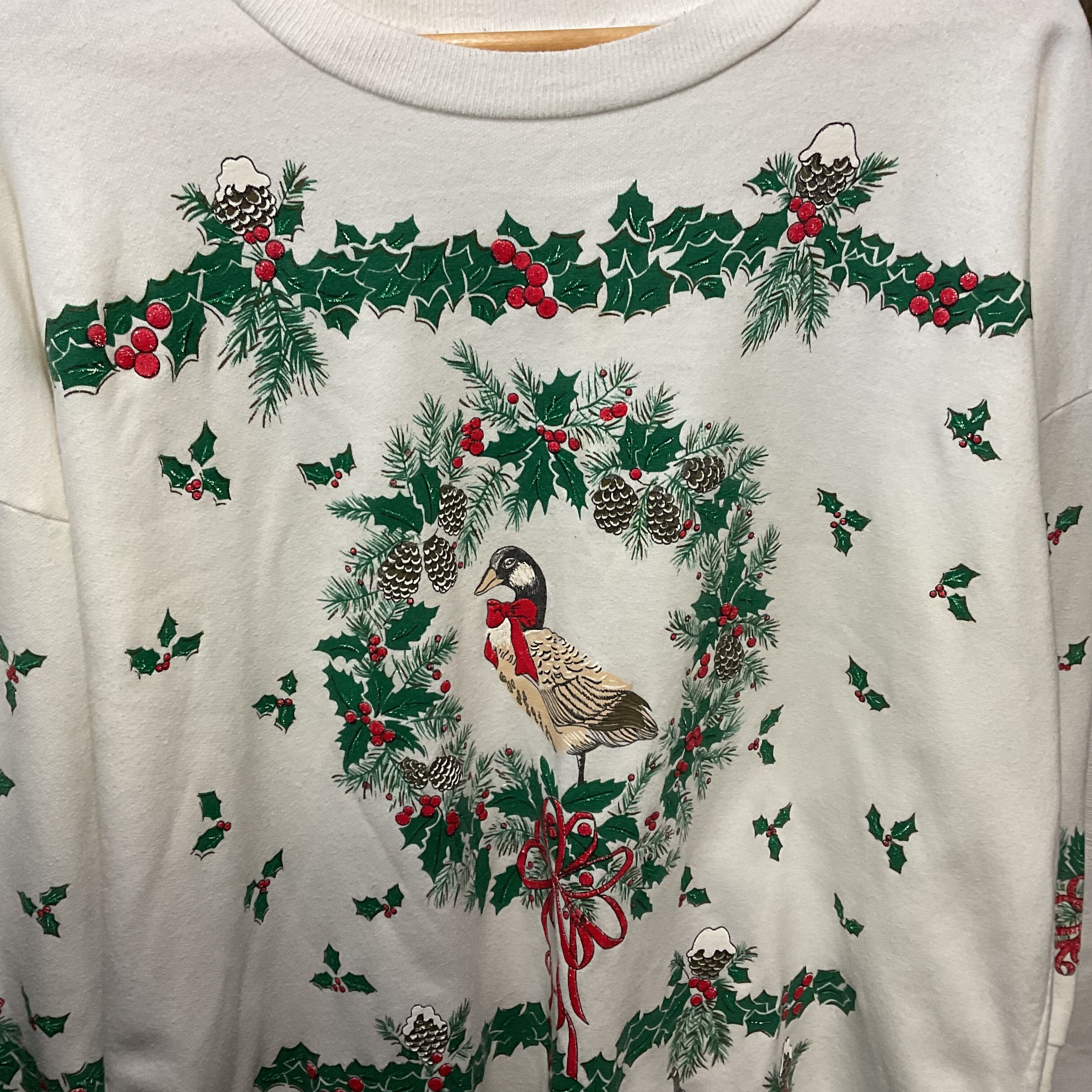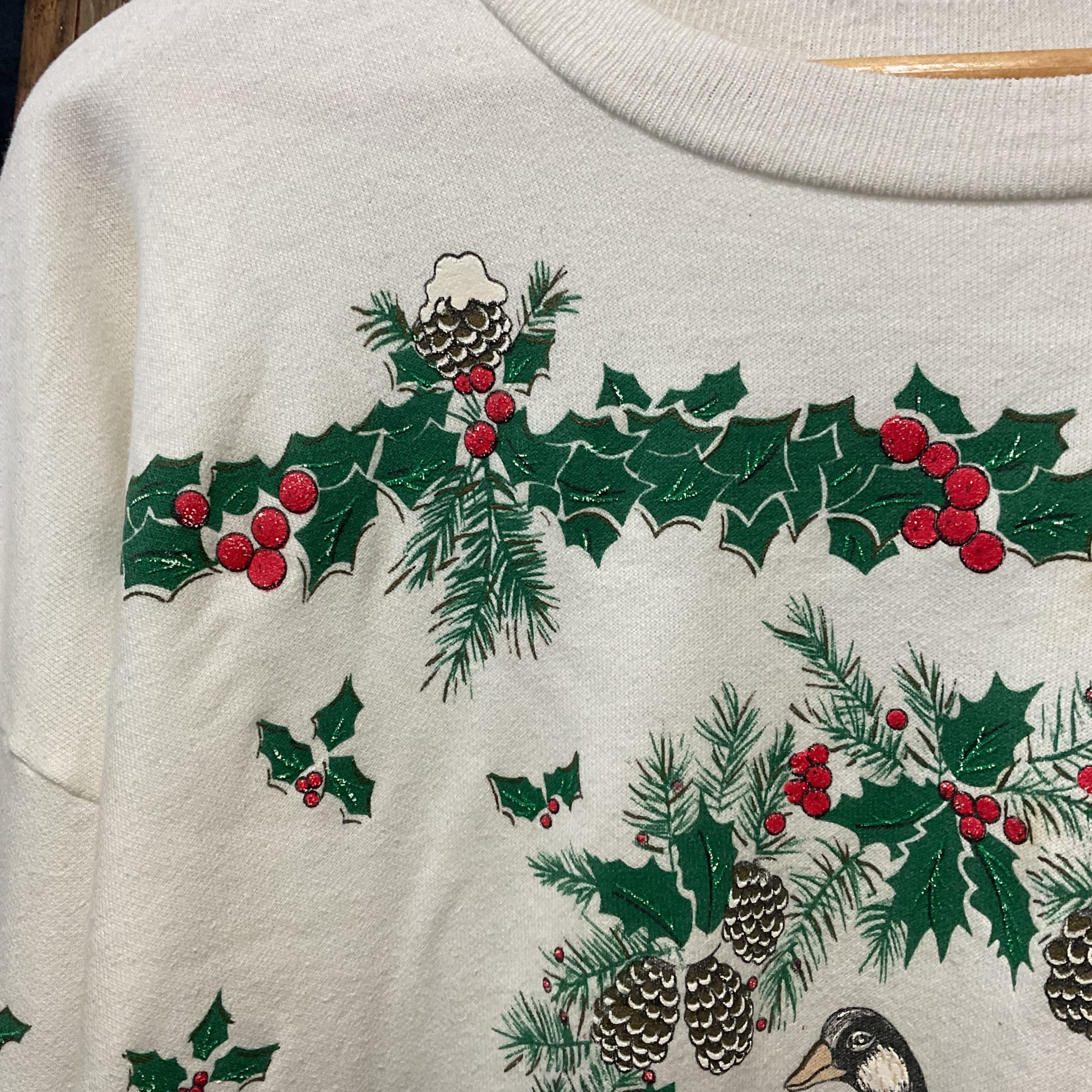 派手すぎずヴィンテージらしい可愛さがあり、古着クリスマススウェットの中でも上品系に入る1枚。