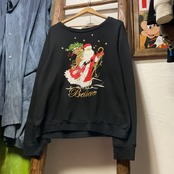 フロント下部には 「Believe」 のメッセージ。物語性のあるデザインで、いかにもアメリカンなホリデースウェットらしさが魅力。