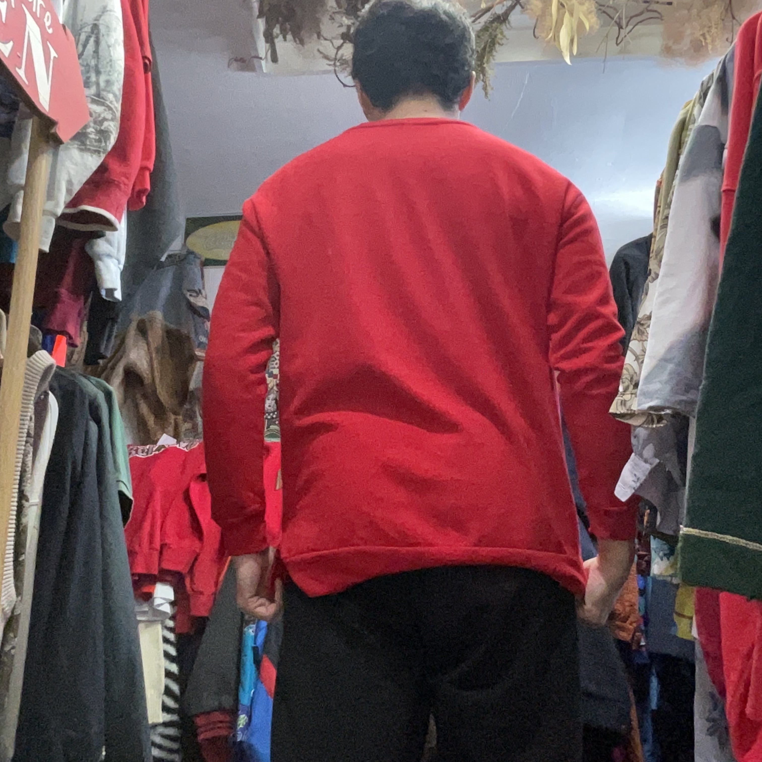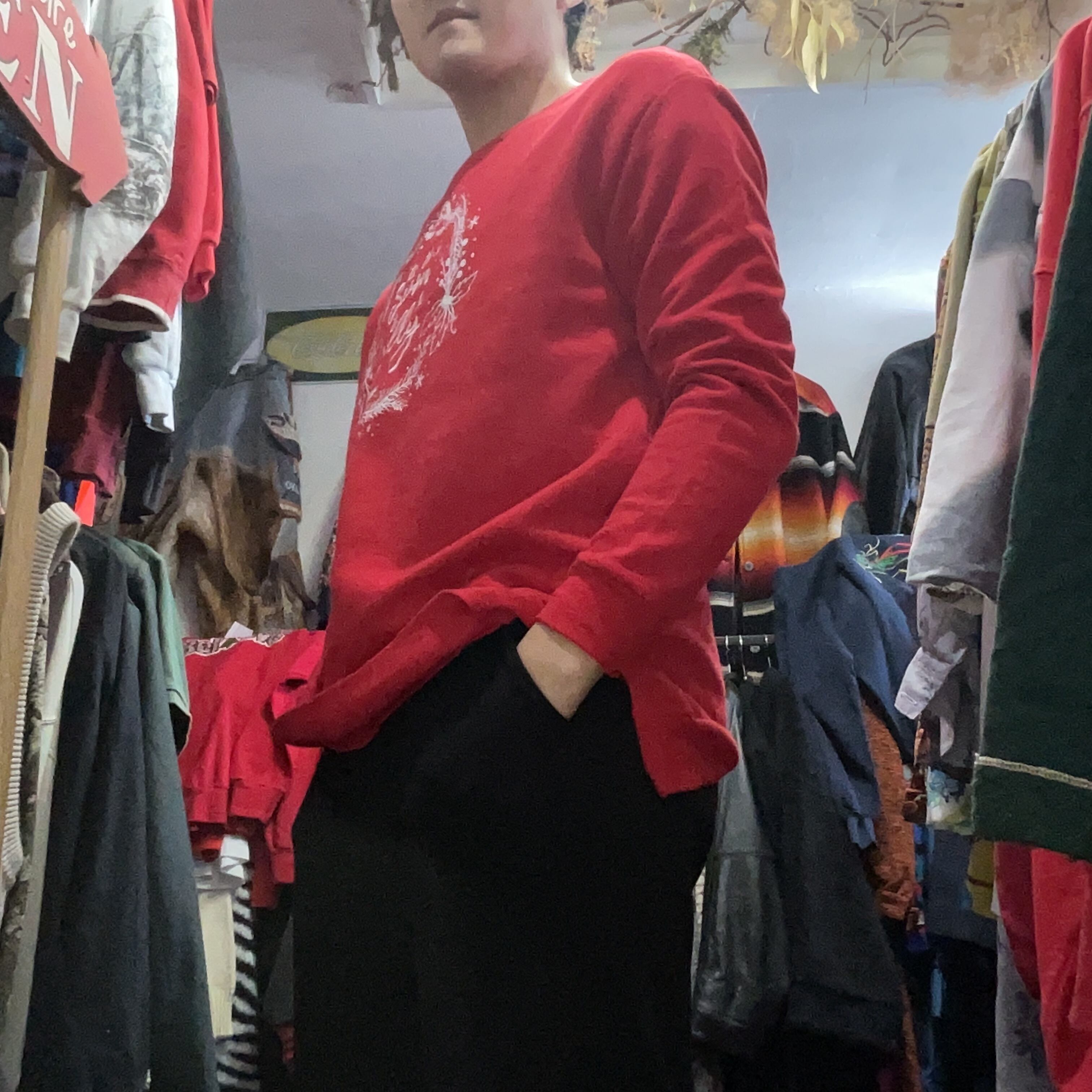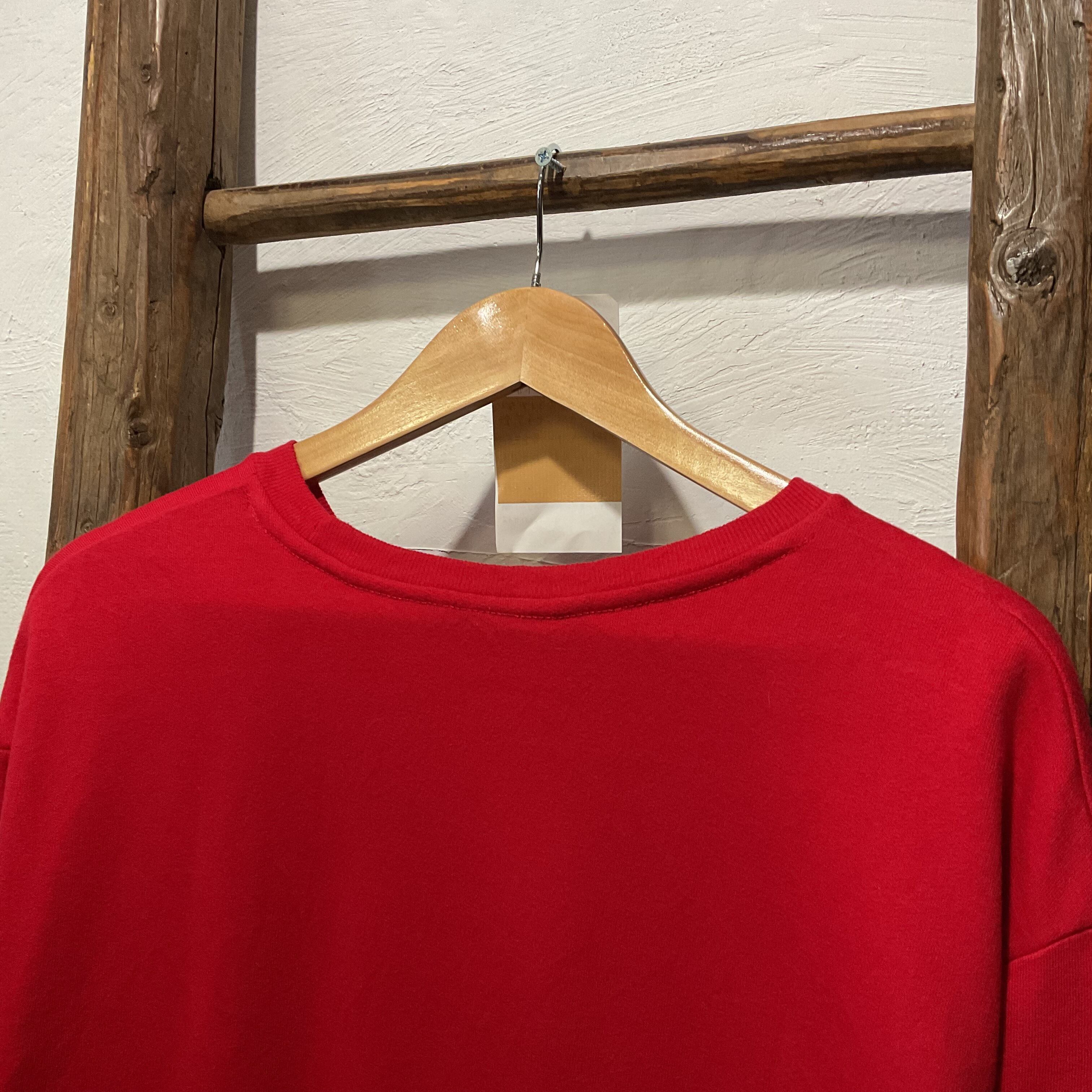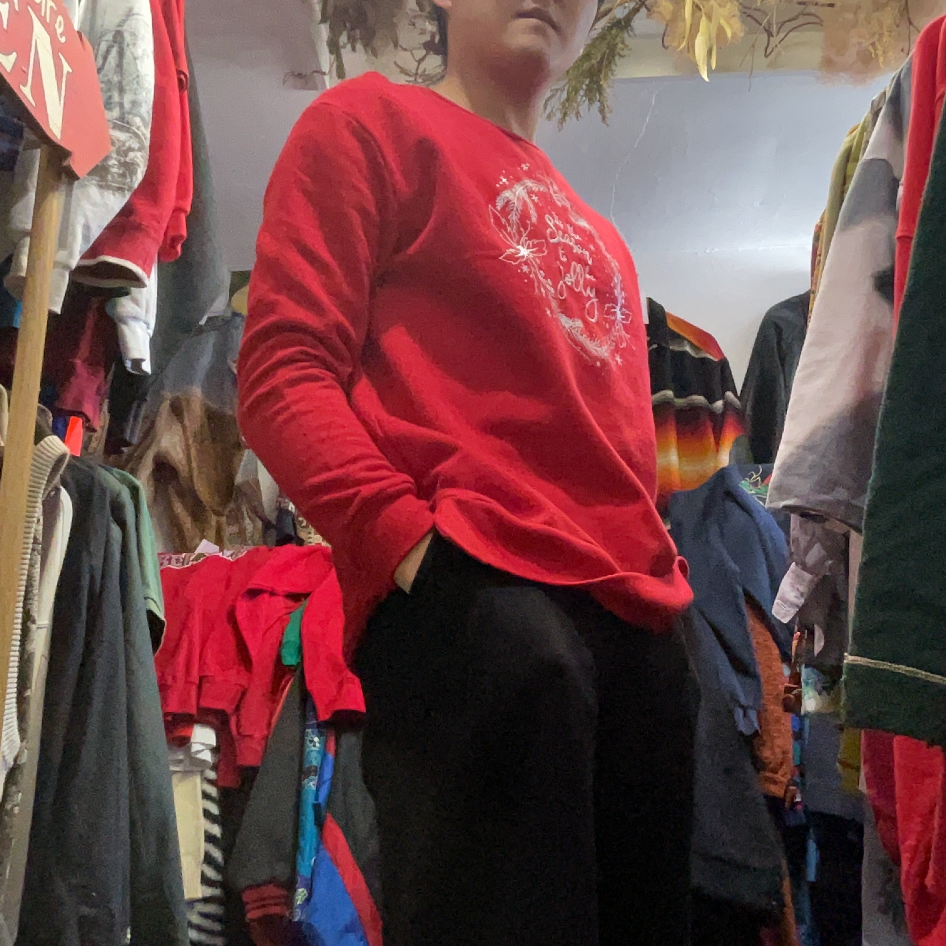 “’Tis the Season to Be Jolly”(=陽気な季節がやってきた)というホリデーシーズン定番フレーズを、リース状のボタニカルモチーフで囲んだクリスマススウェット。