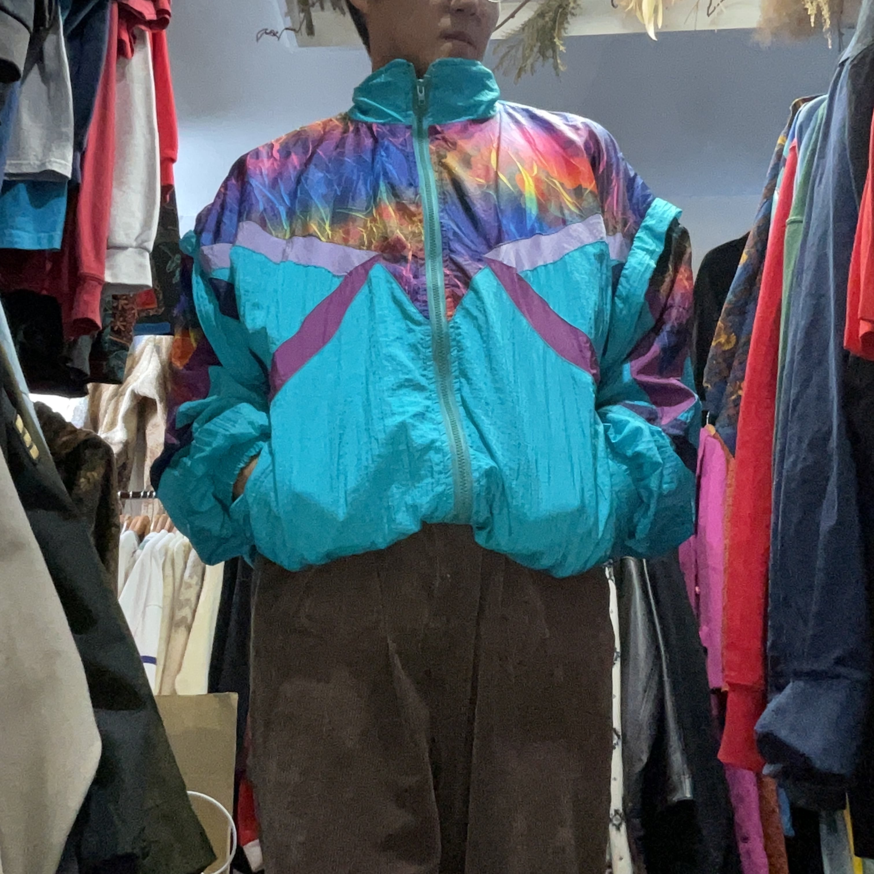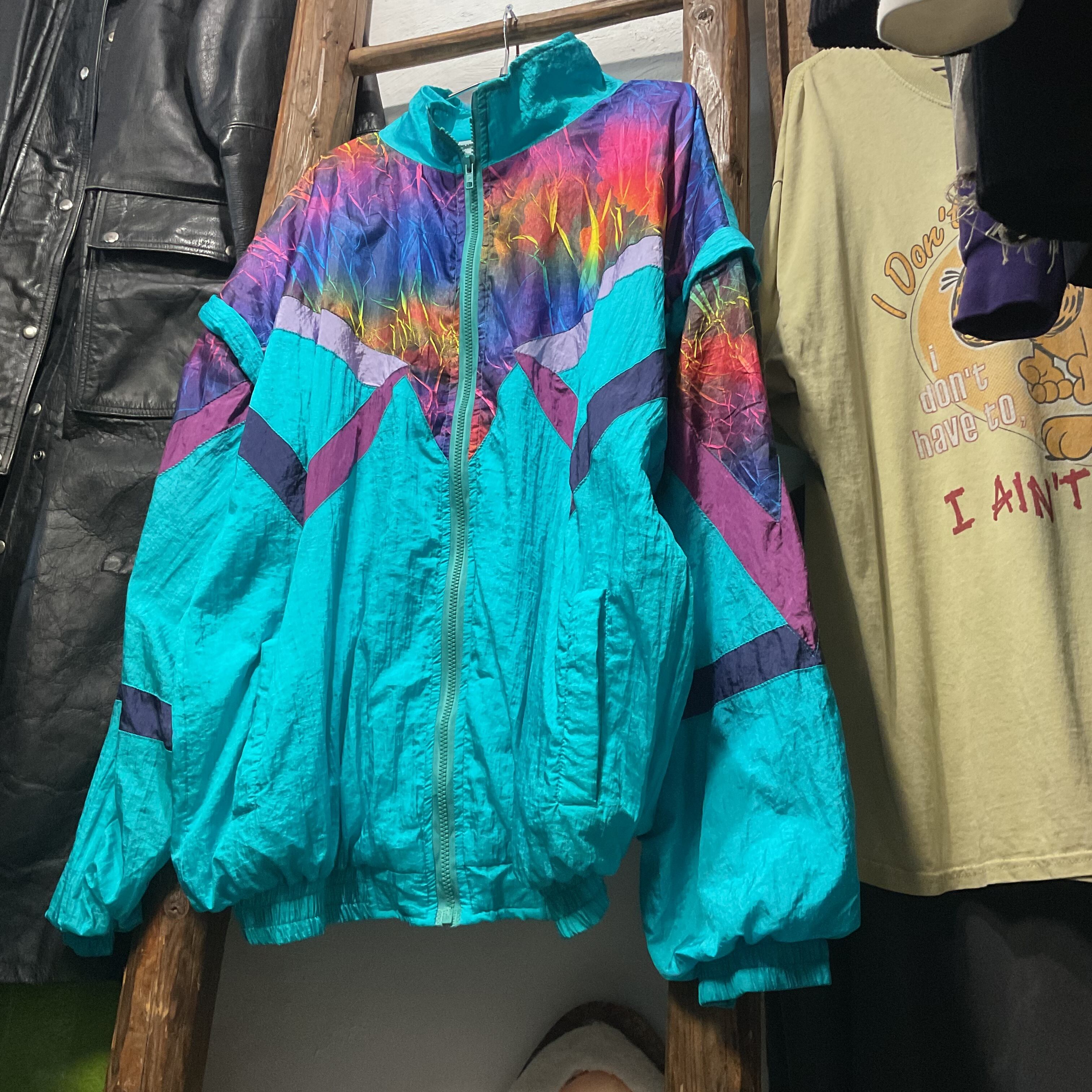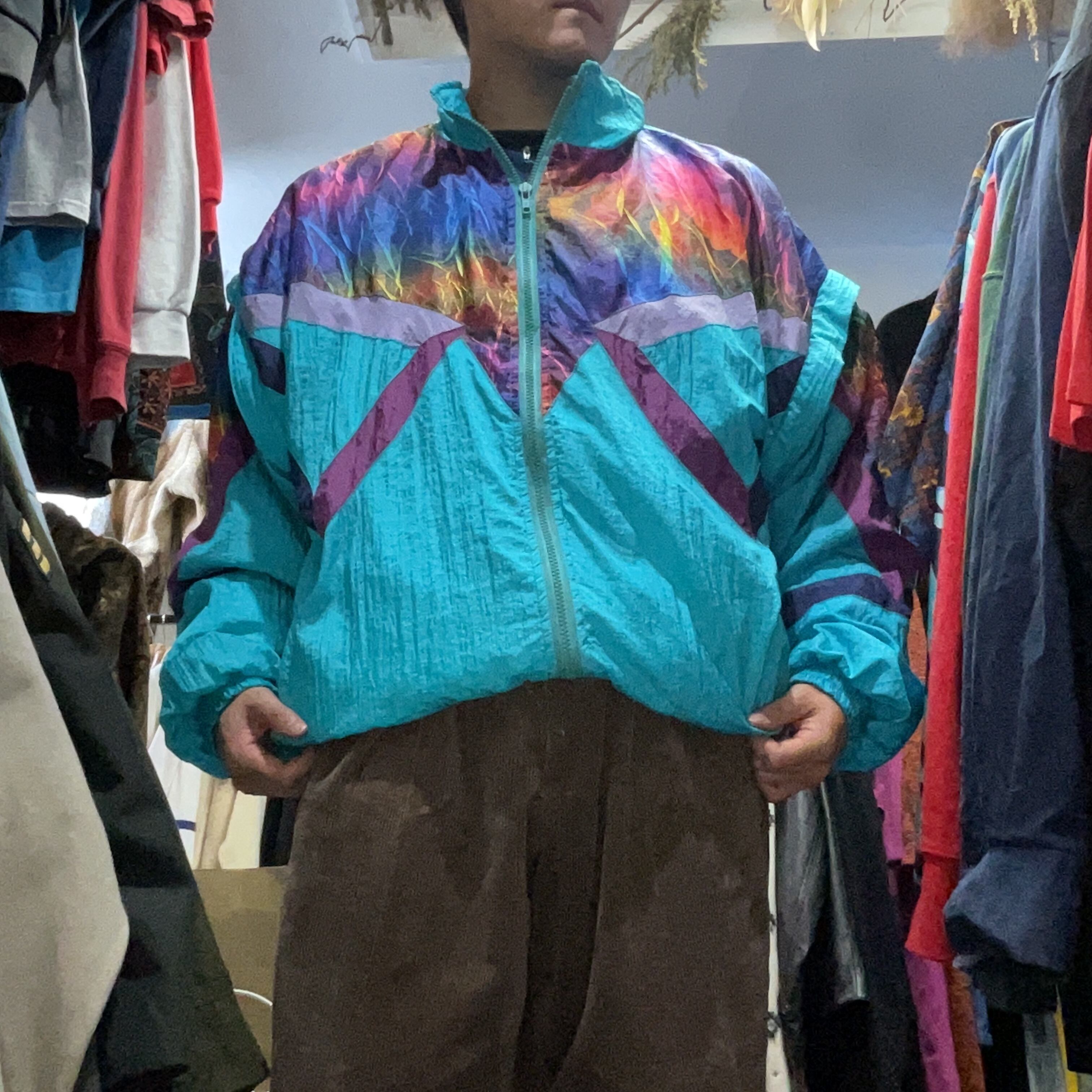 90s Abstract Print Nylon Zip Jacket