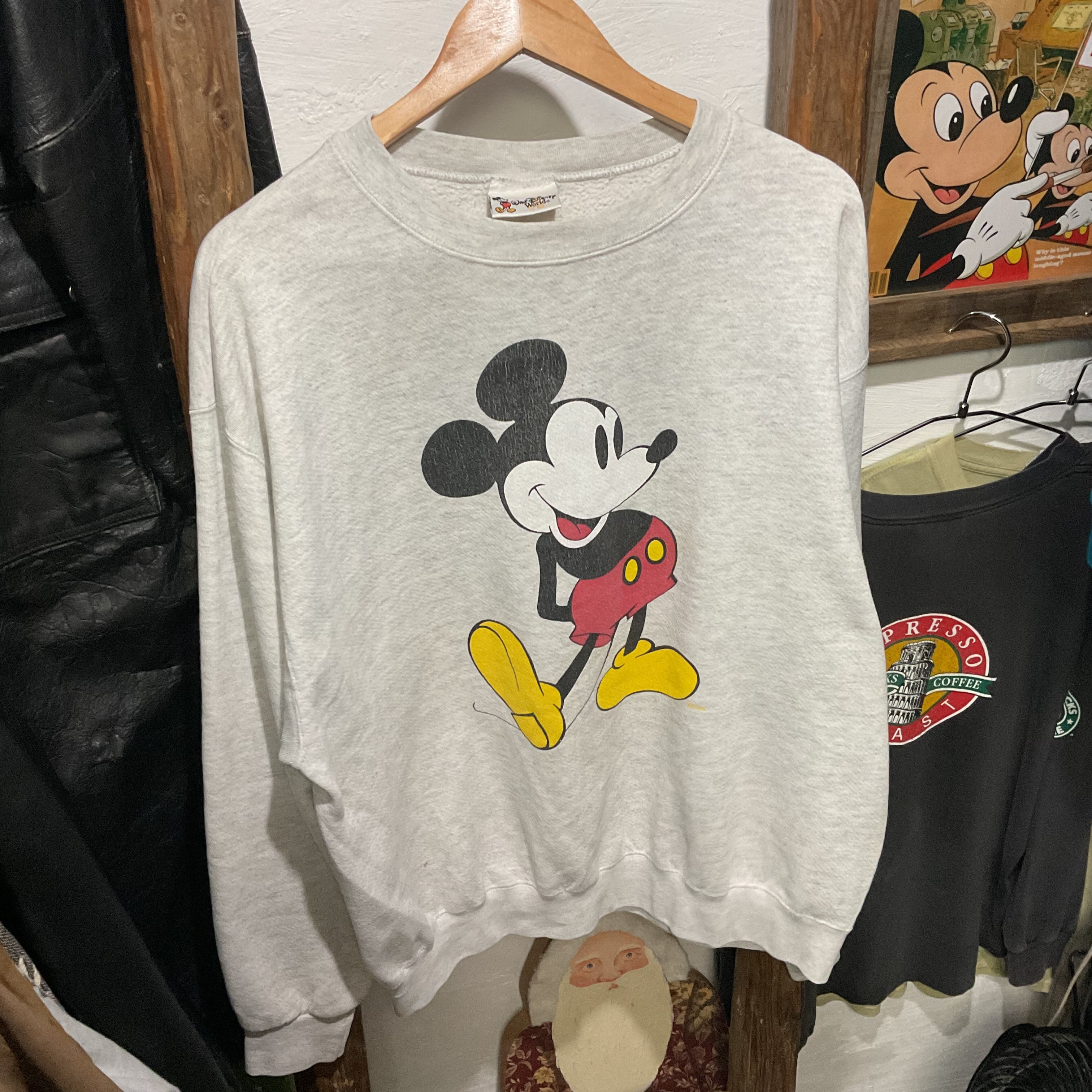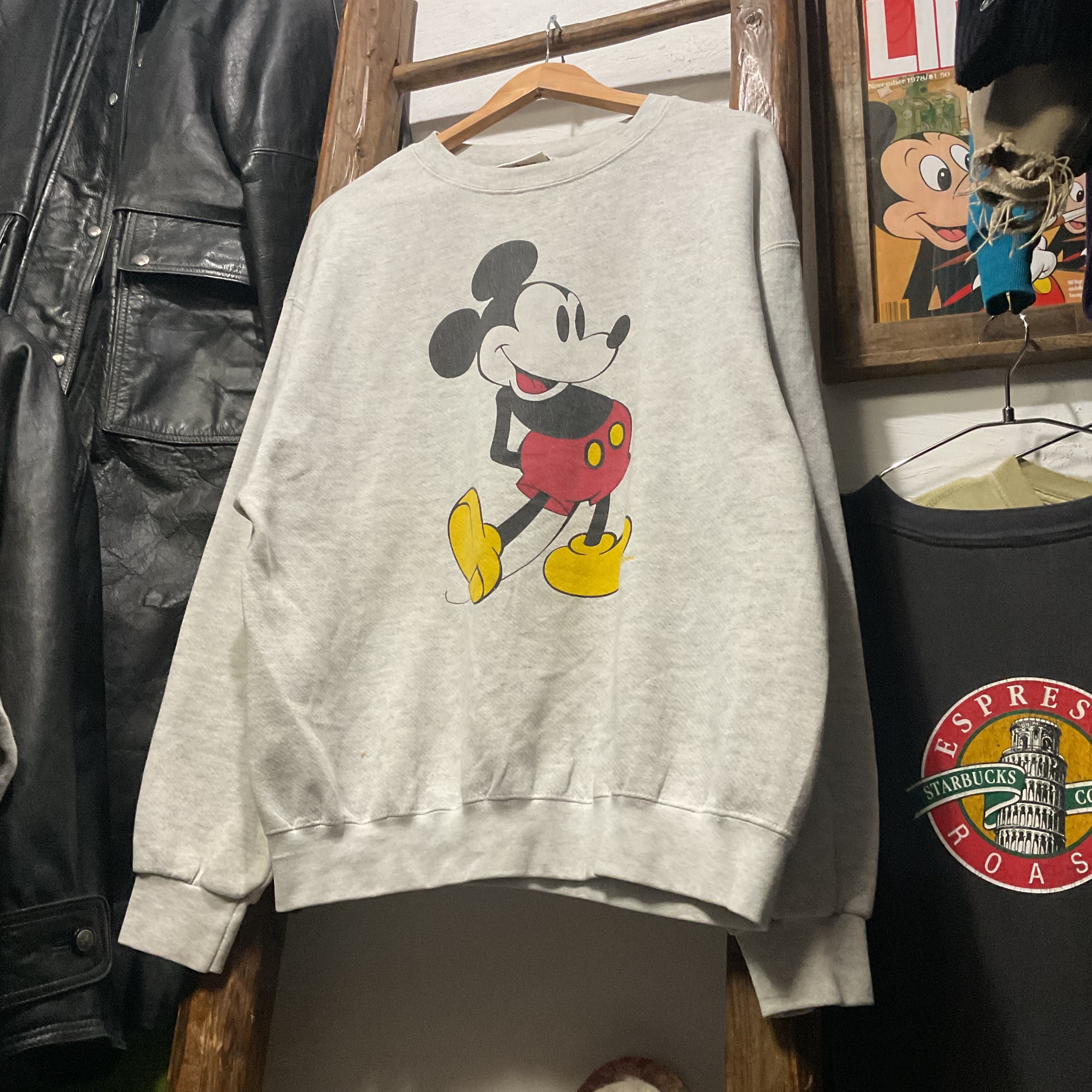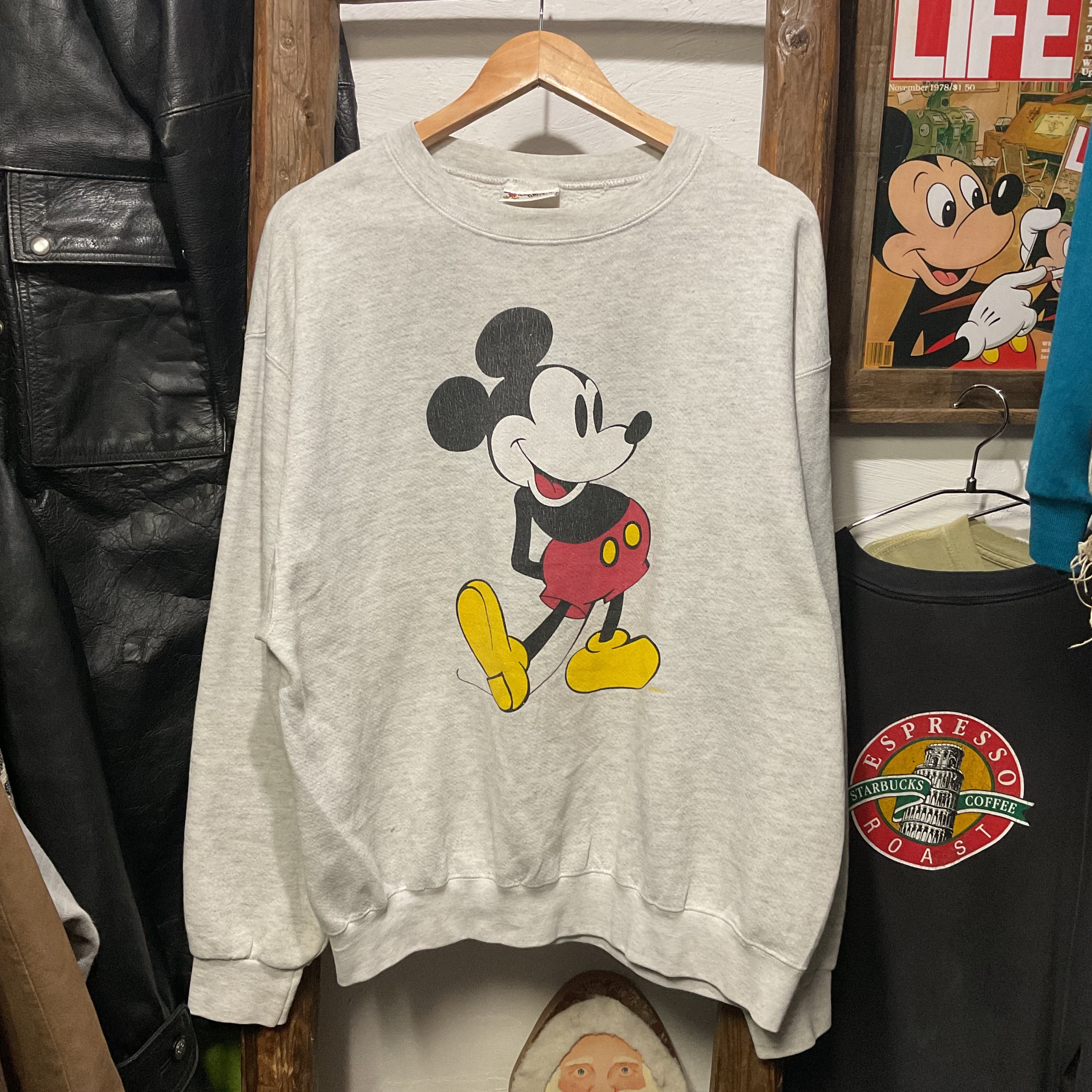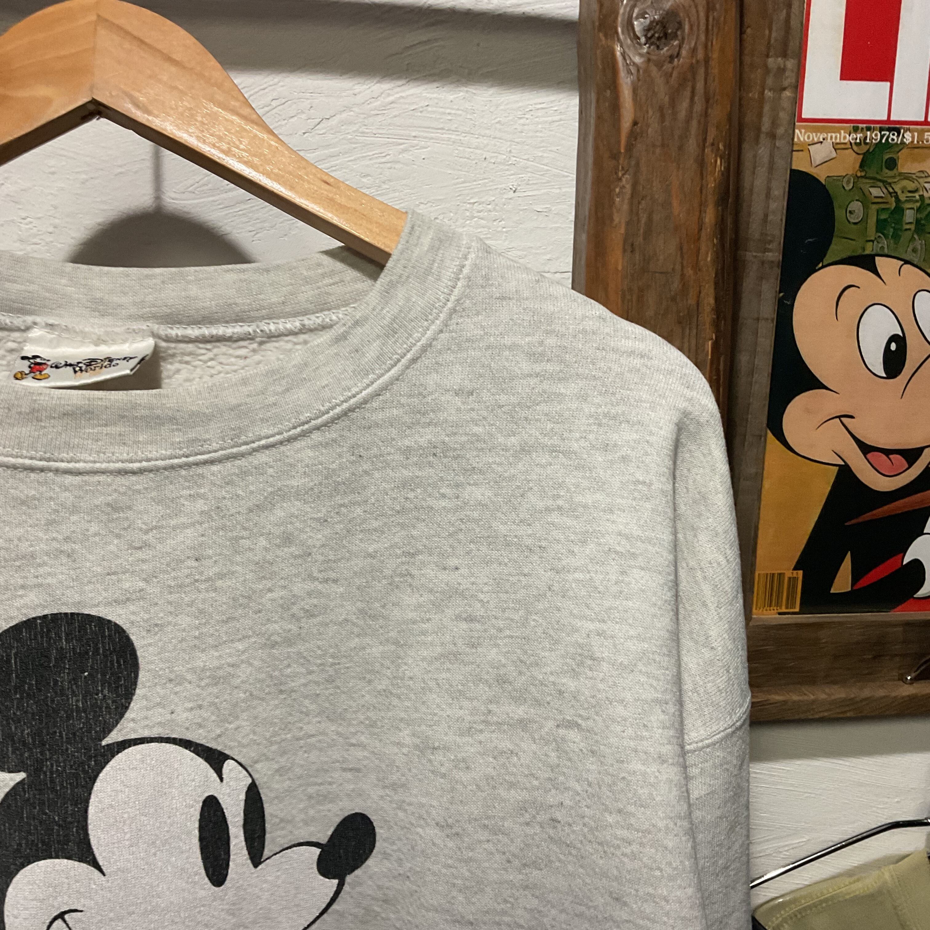 オートミール杢のスウェットボディに、クラシックなミッキーマウスのフロントプリントが入った1着。