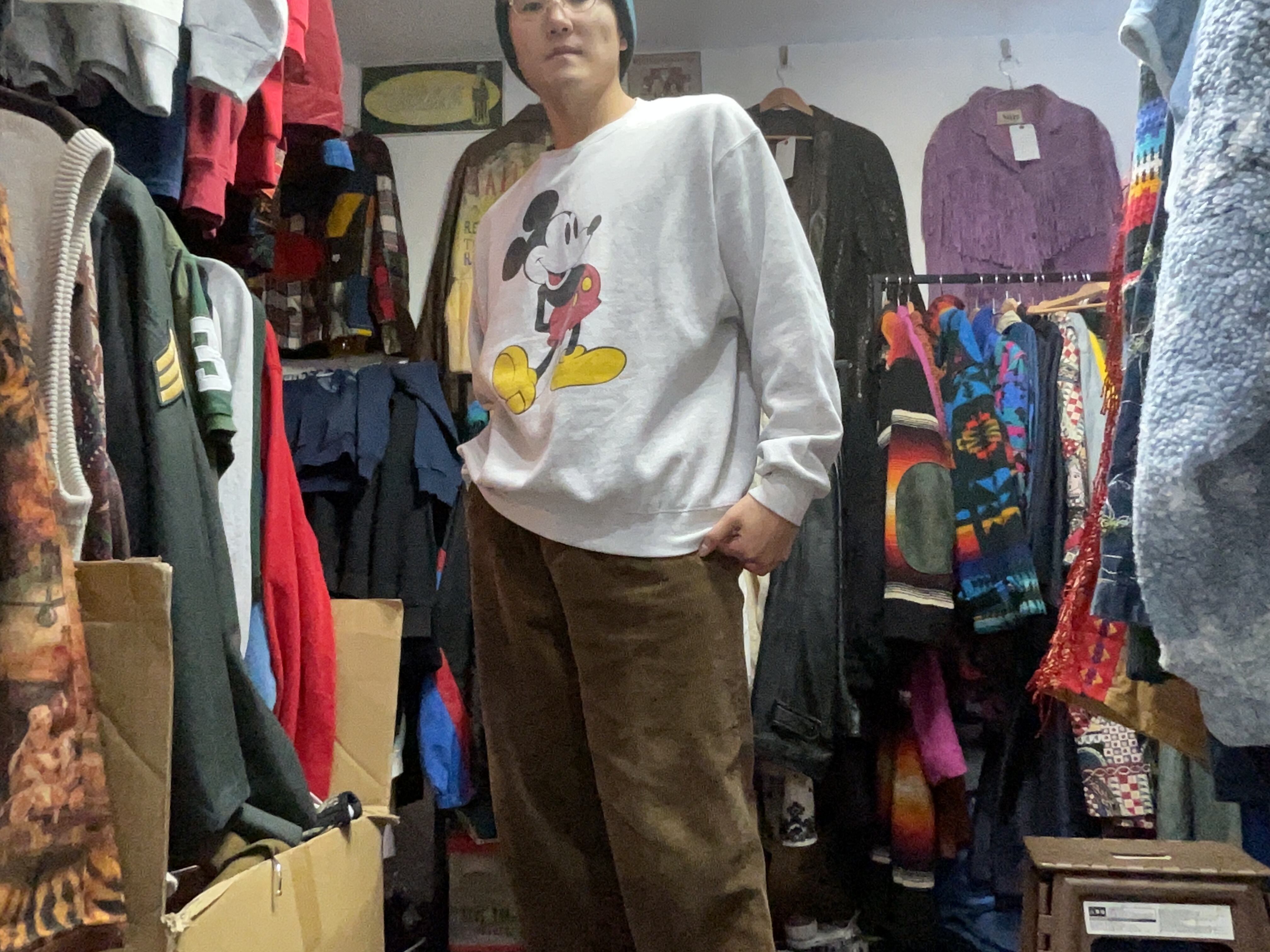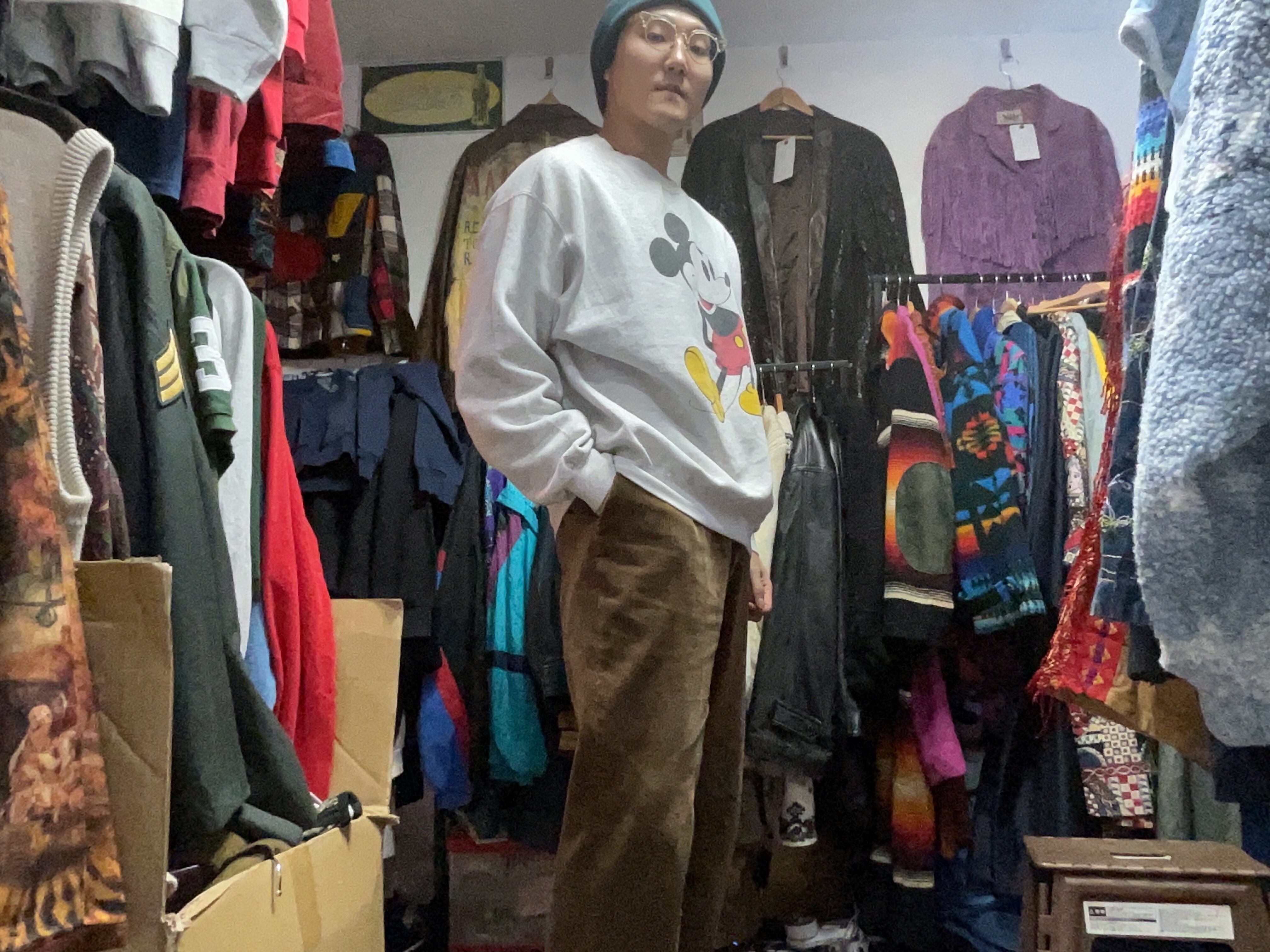 デニムやチノはもちろん、スラックスで外して着てもハマる、大人にもおすすめできるディズニースウェット。