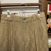 フロントはタック入りで腰回りにゆとりがあり、太すぎないストレート寄りのシルエット。きれいめにも古着ミックスにも振れる万能タイプで、ニットやシャツはもちろん、スウェット合わせでも一気に“大人っぽい抜け”が作れる。秋冬〜春先にちょうどいい厚み感。色味が柔らかいので、黒・ネイビー・オリーブ・ブラウン系と相性抜群。