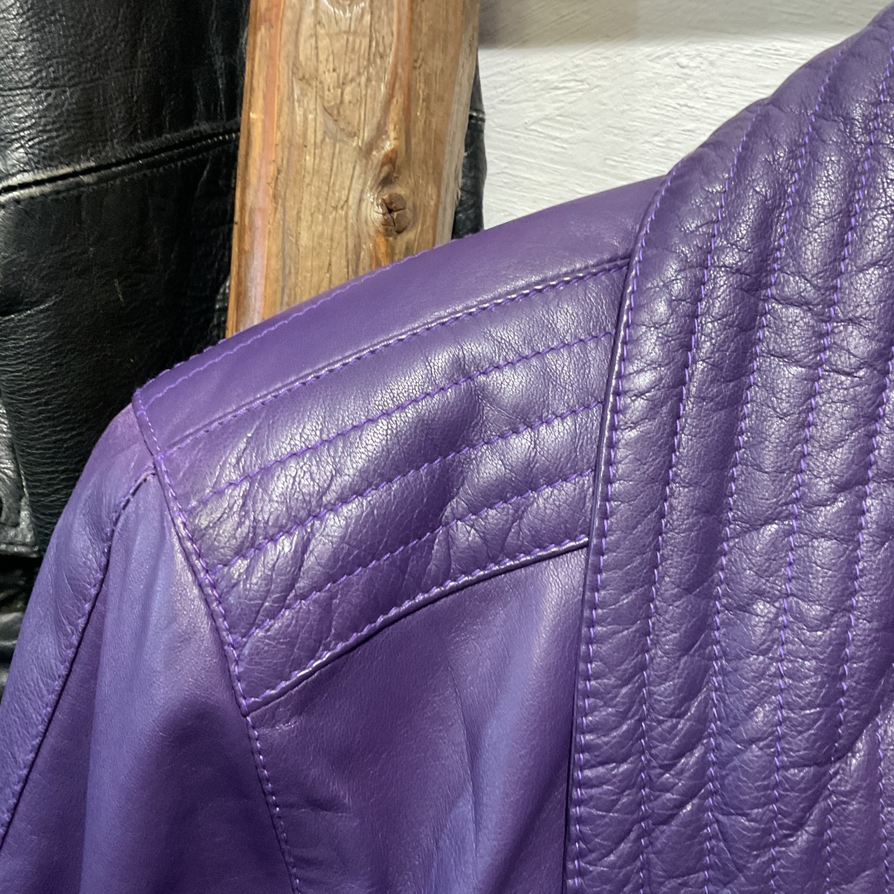 発色が強いパープルレザーを主役にした、存在感MAXのレザージャケット。