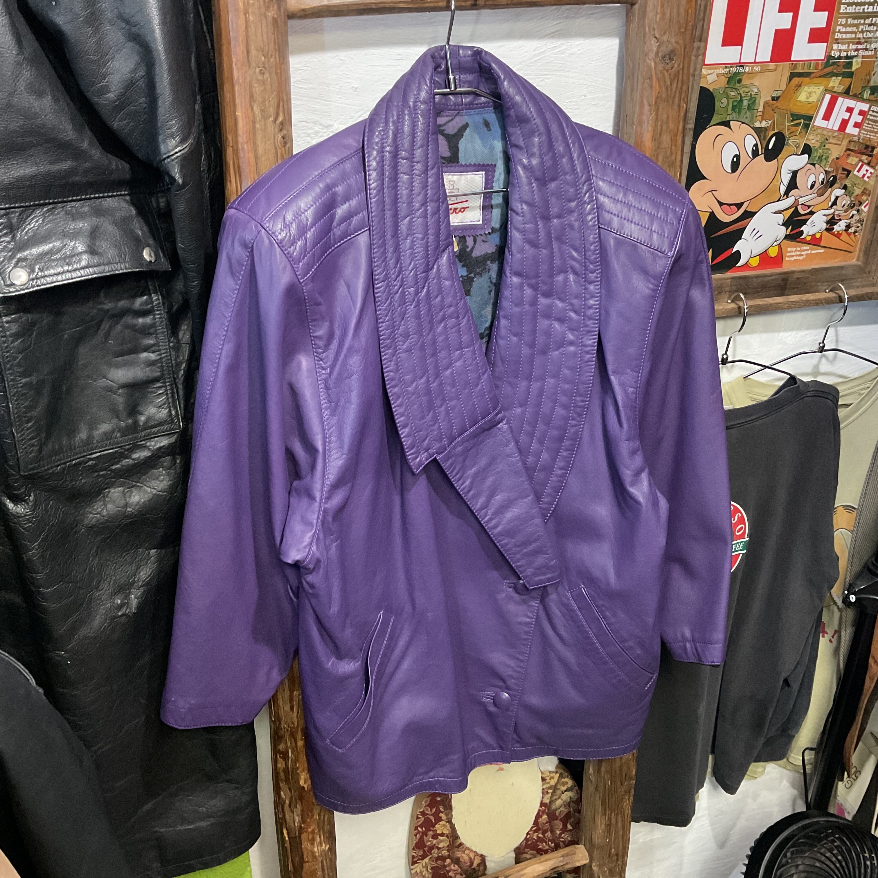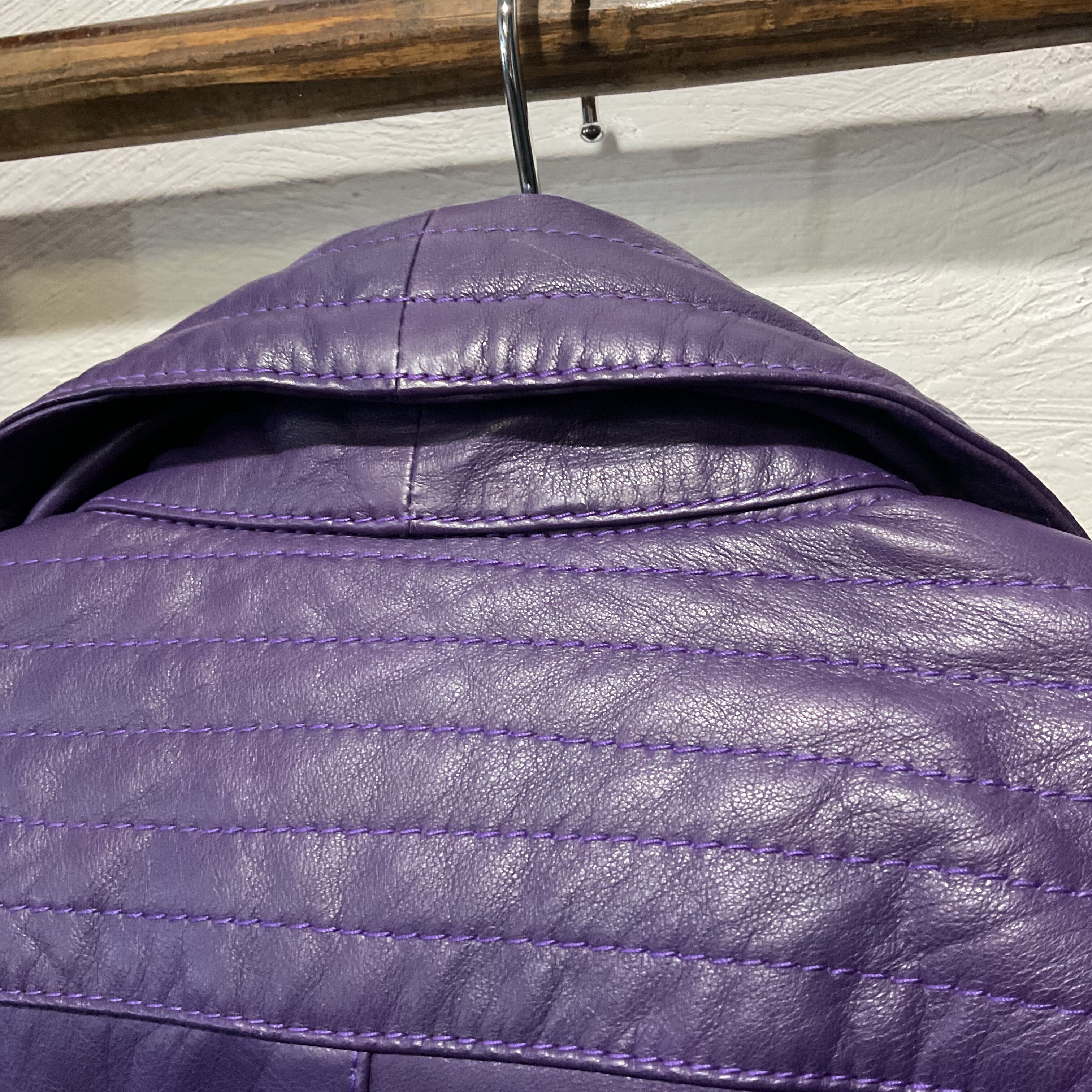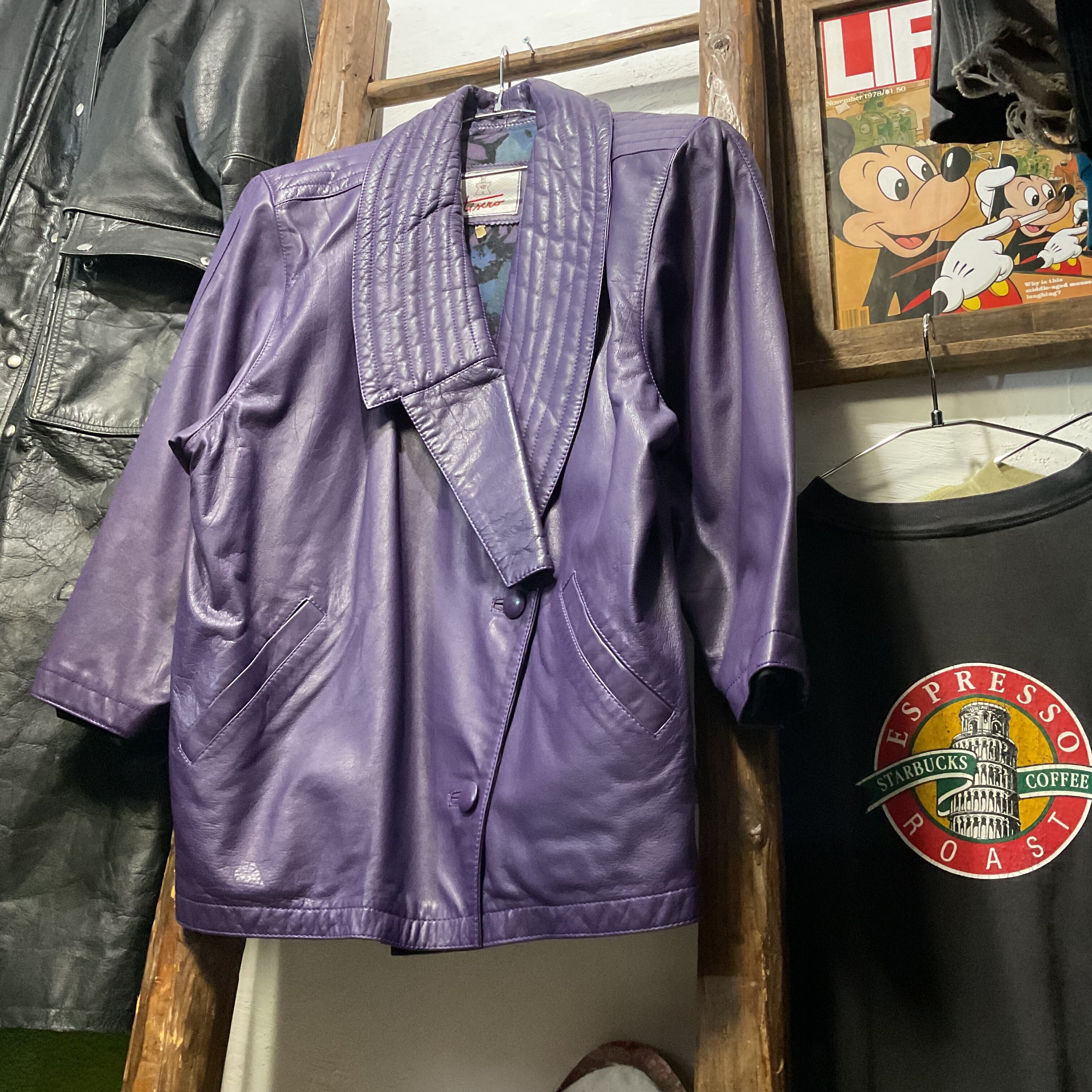 80s-90s “tixro” Purple Leather Shawl Collar Jacket
