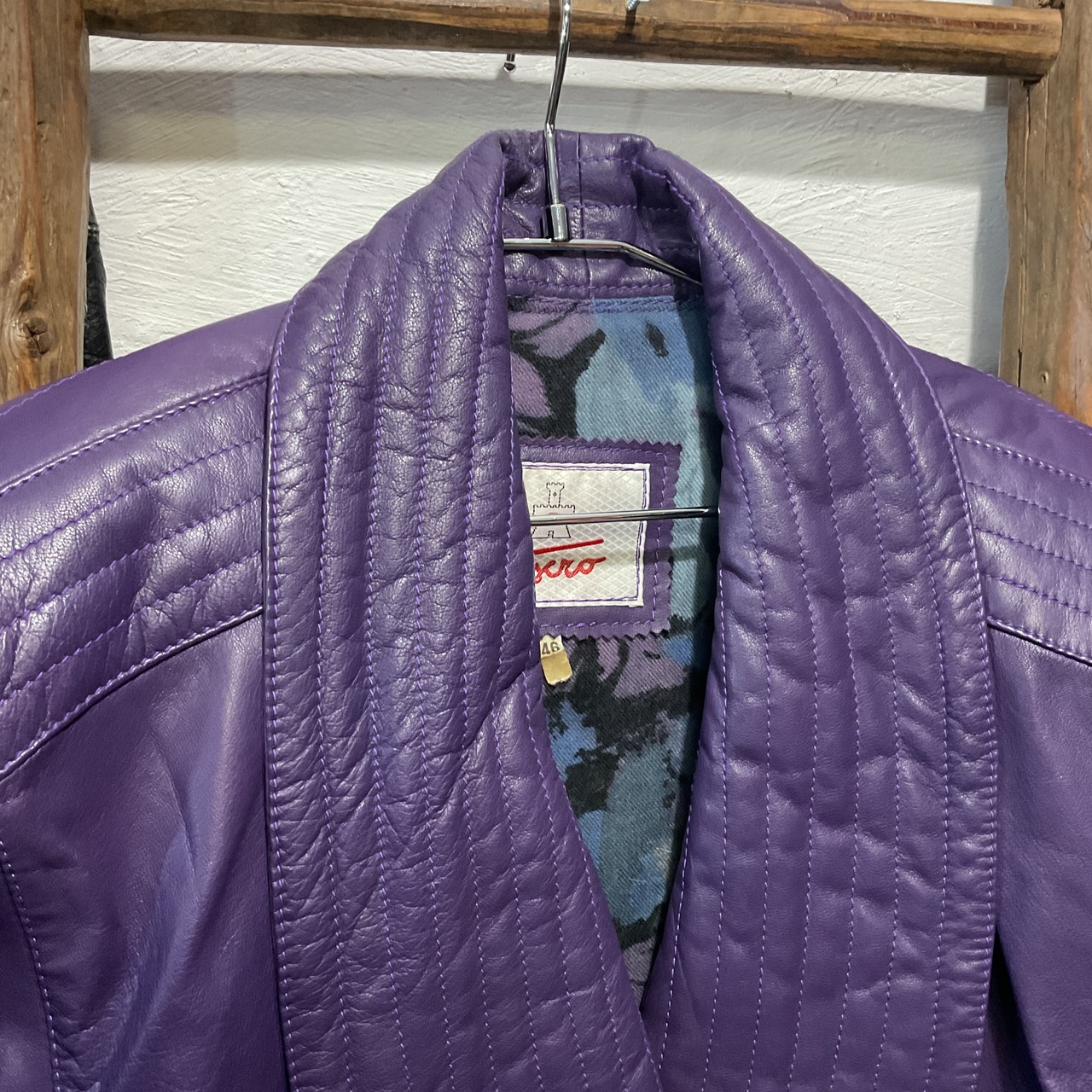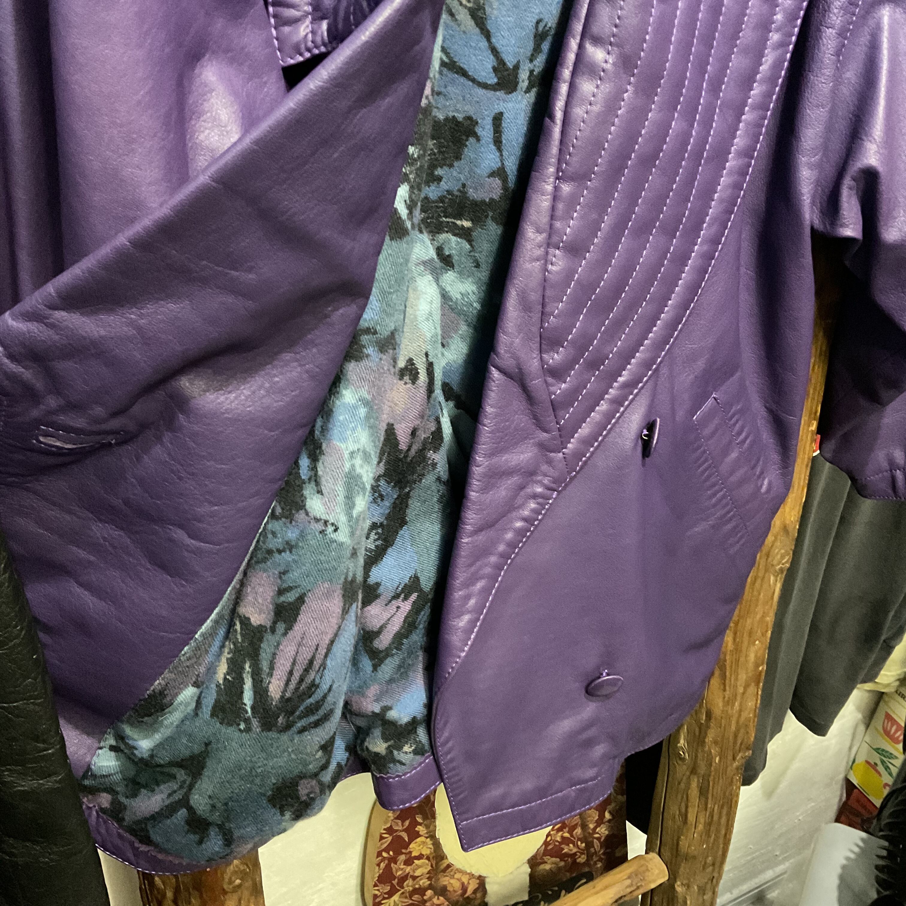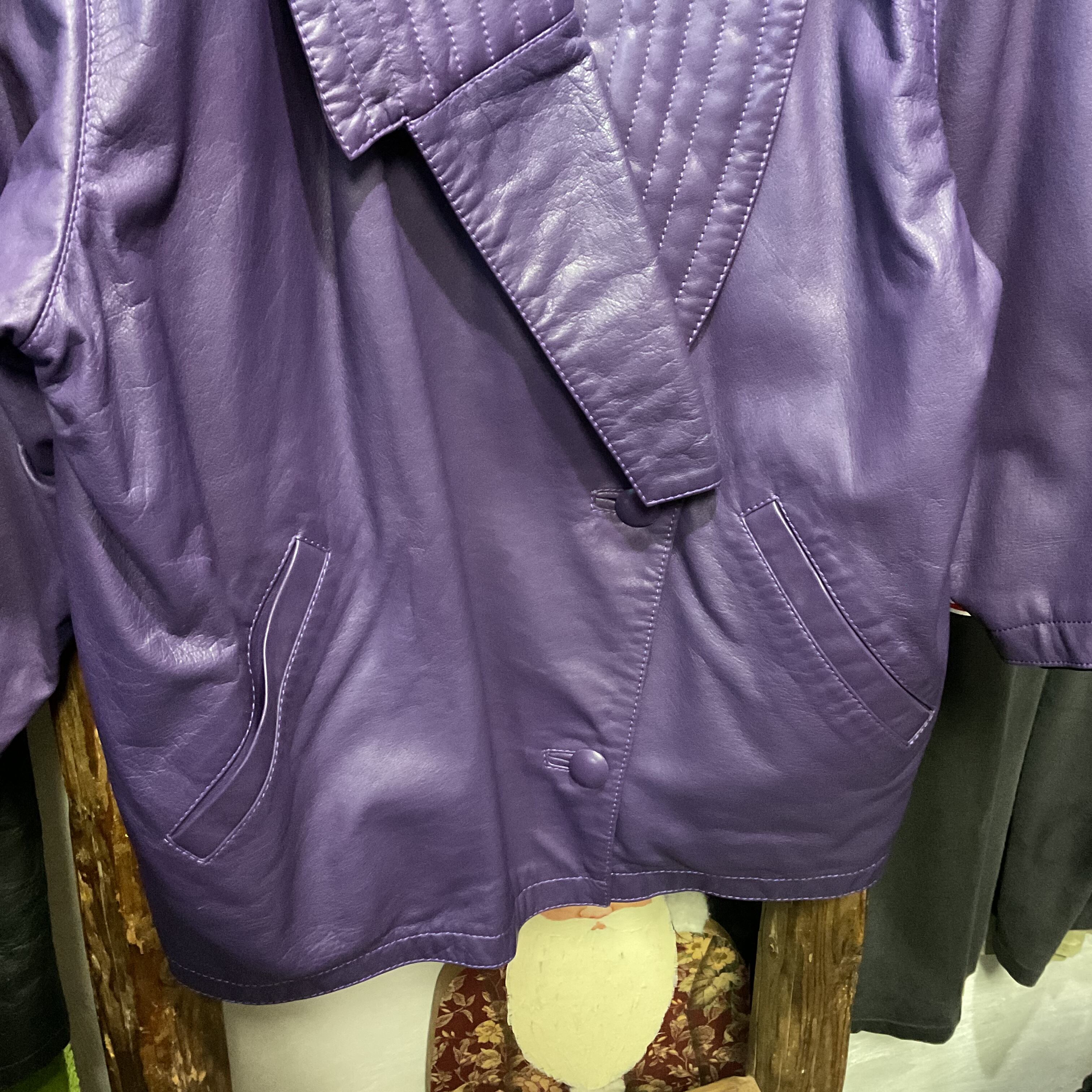 80s-90s “tixro” Purple Leather Shawl Collar Jacket