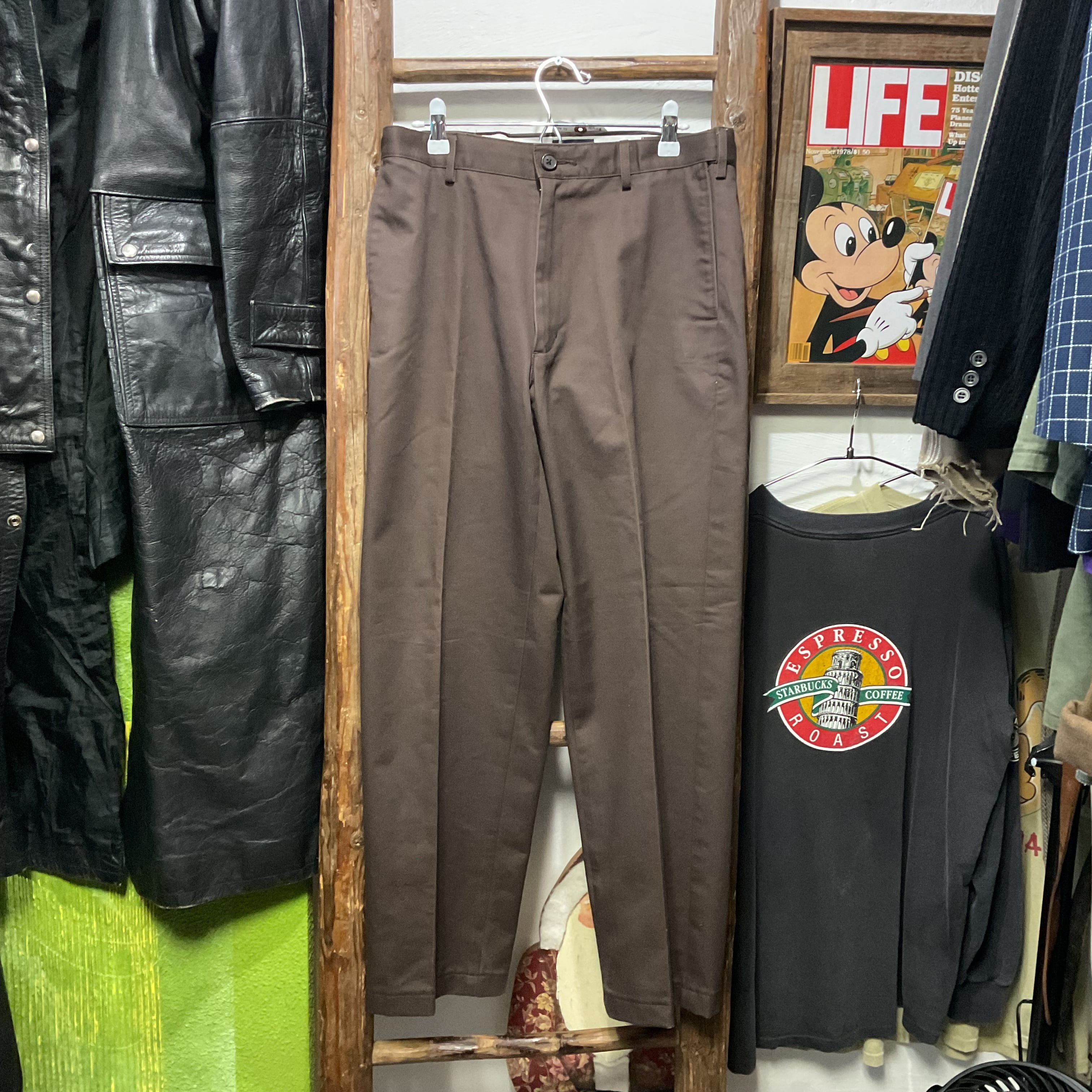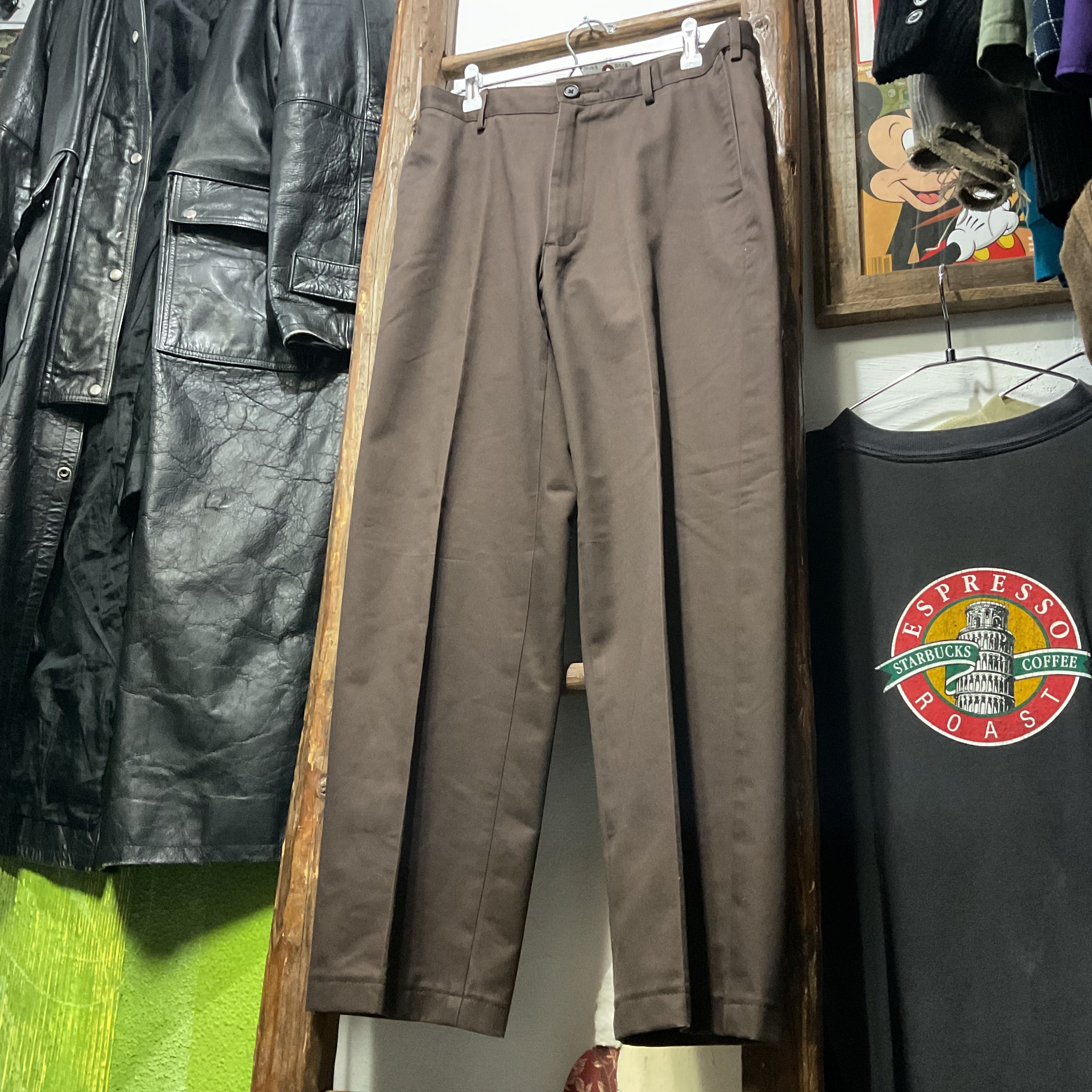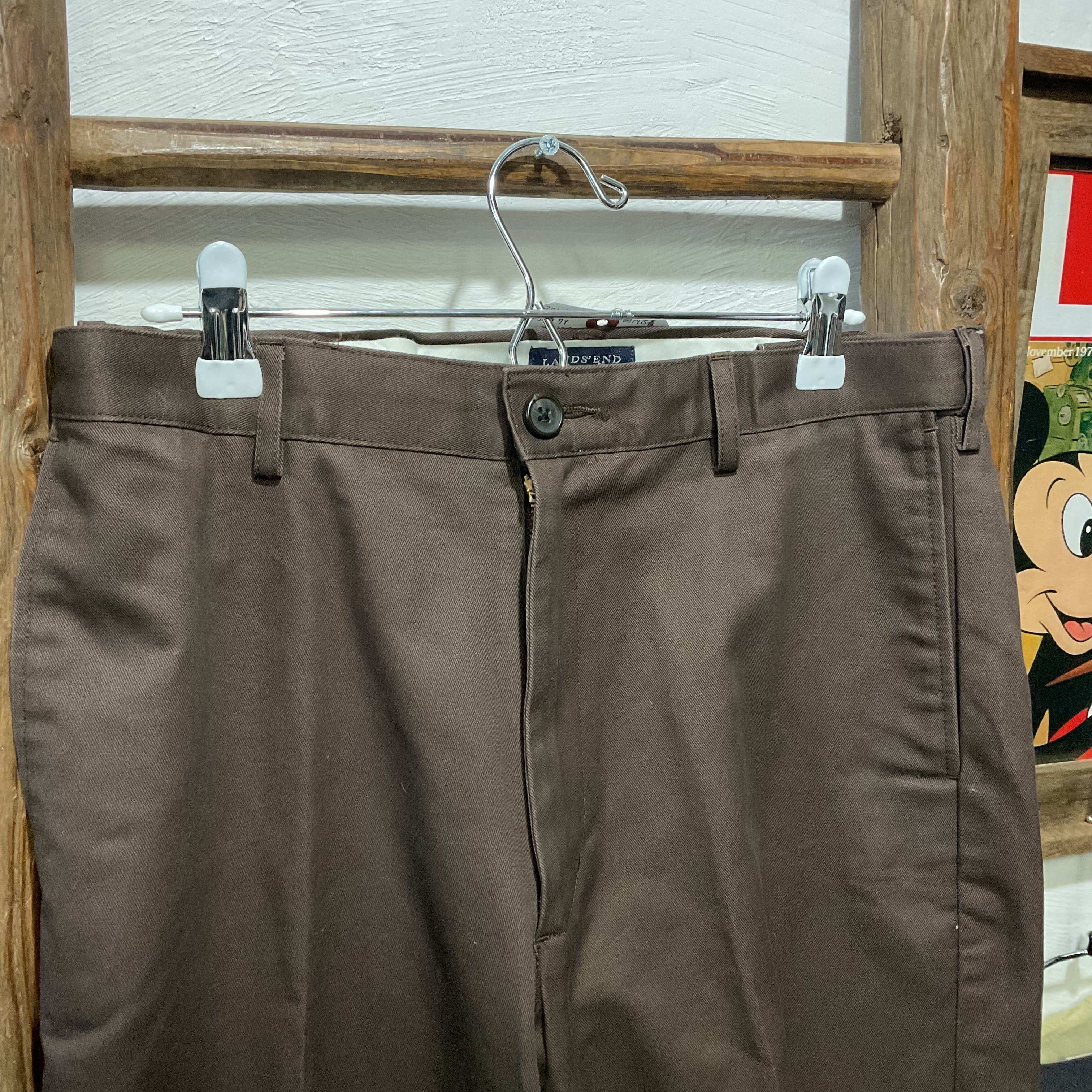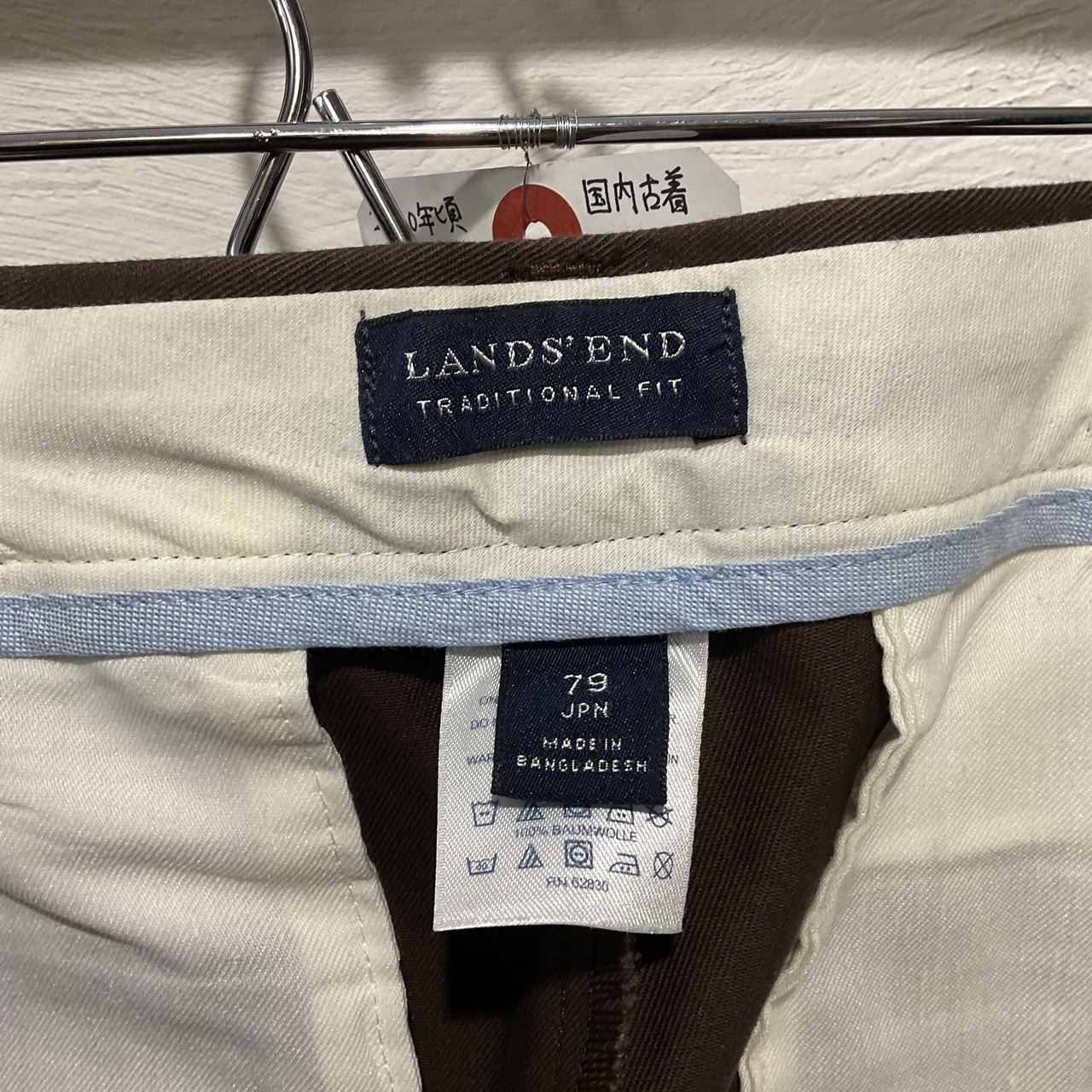 LAND’S ENDのTRADITIONAL FIT、落ち着いたブラウンのコットンパンツ。太すぎず細すぎないクラシックなシルエットで、合わせ方次第できれいめにもカジュアルにも振れる万能枠。