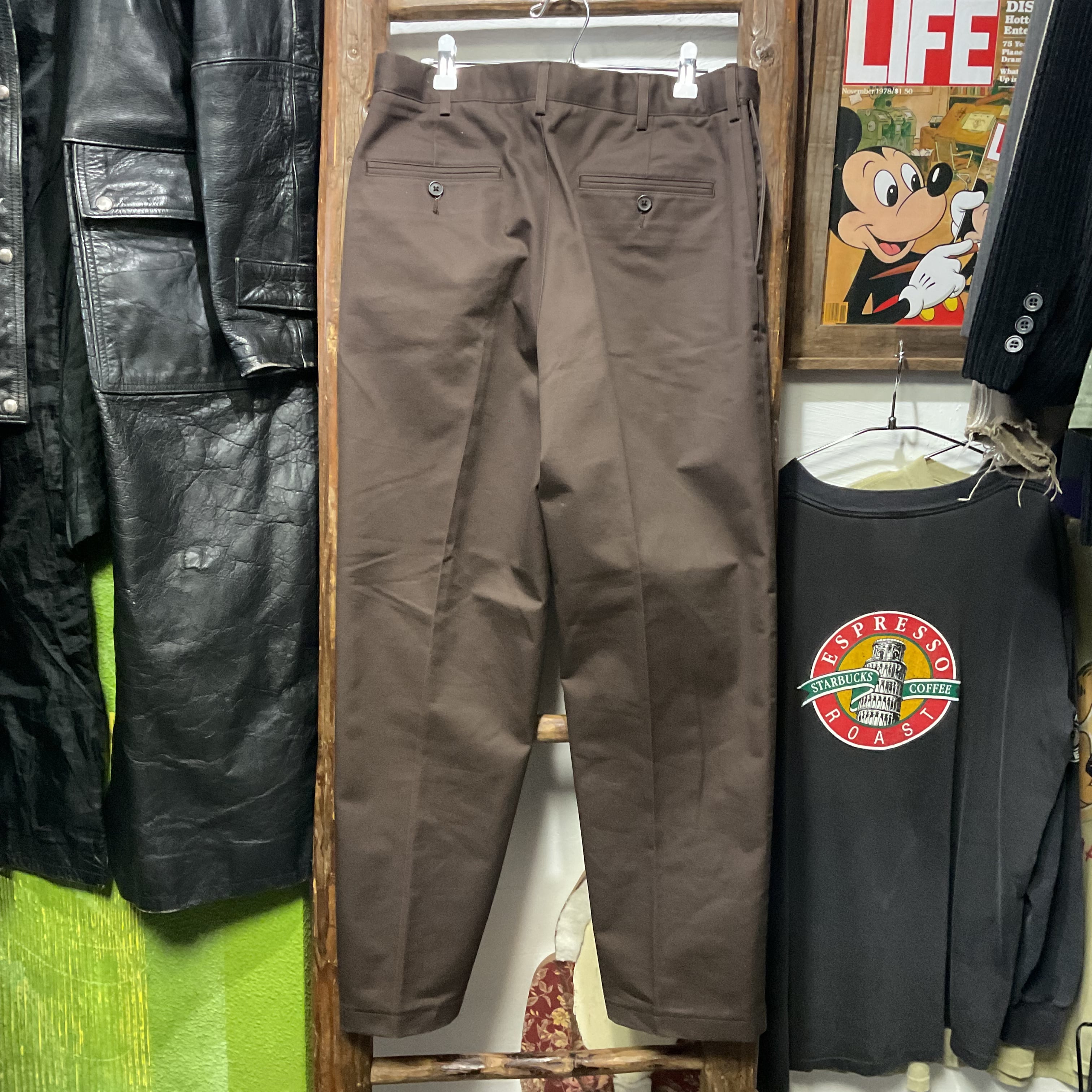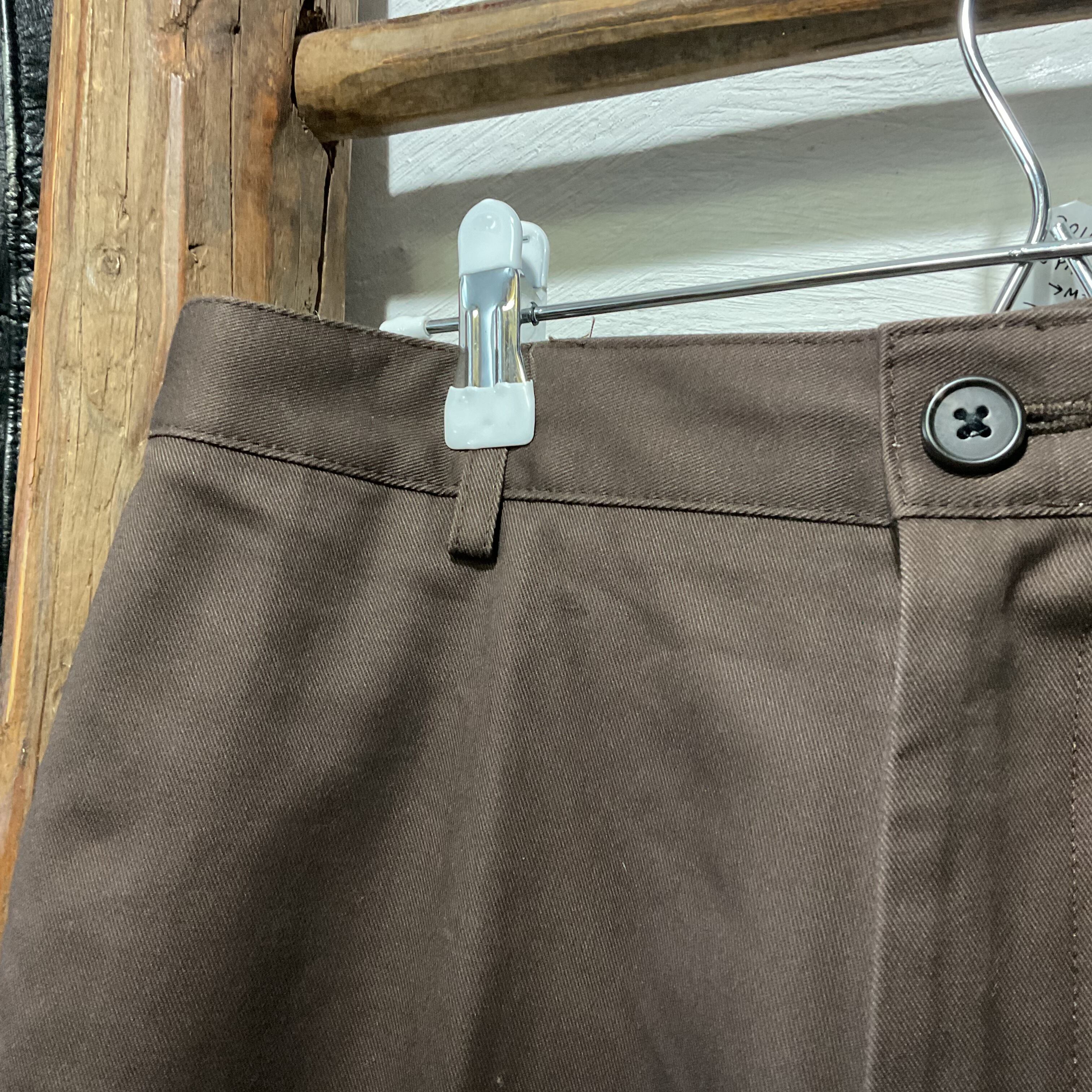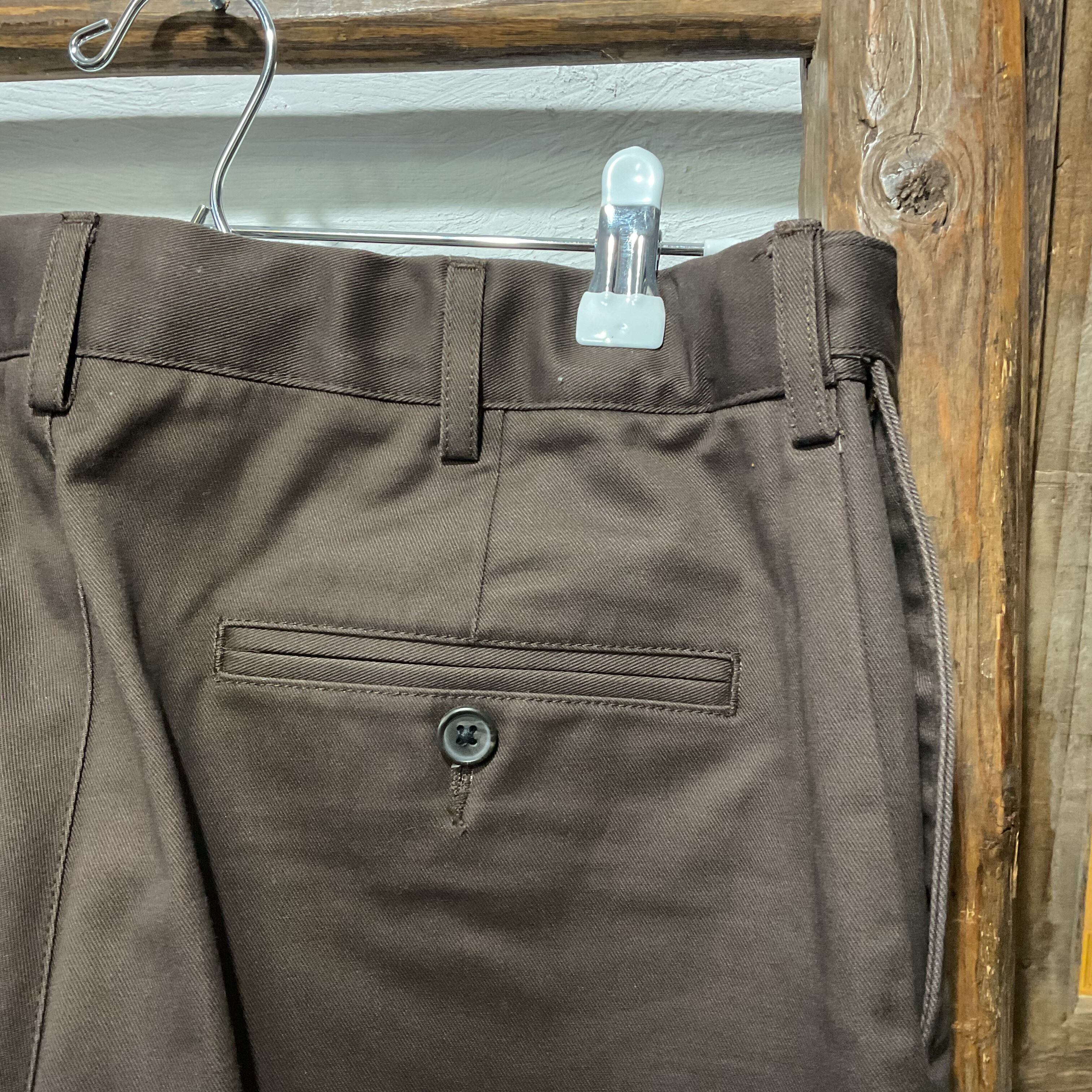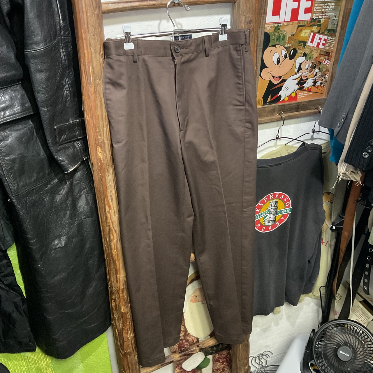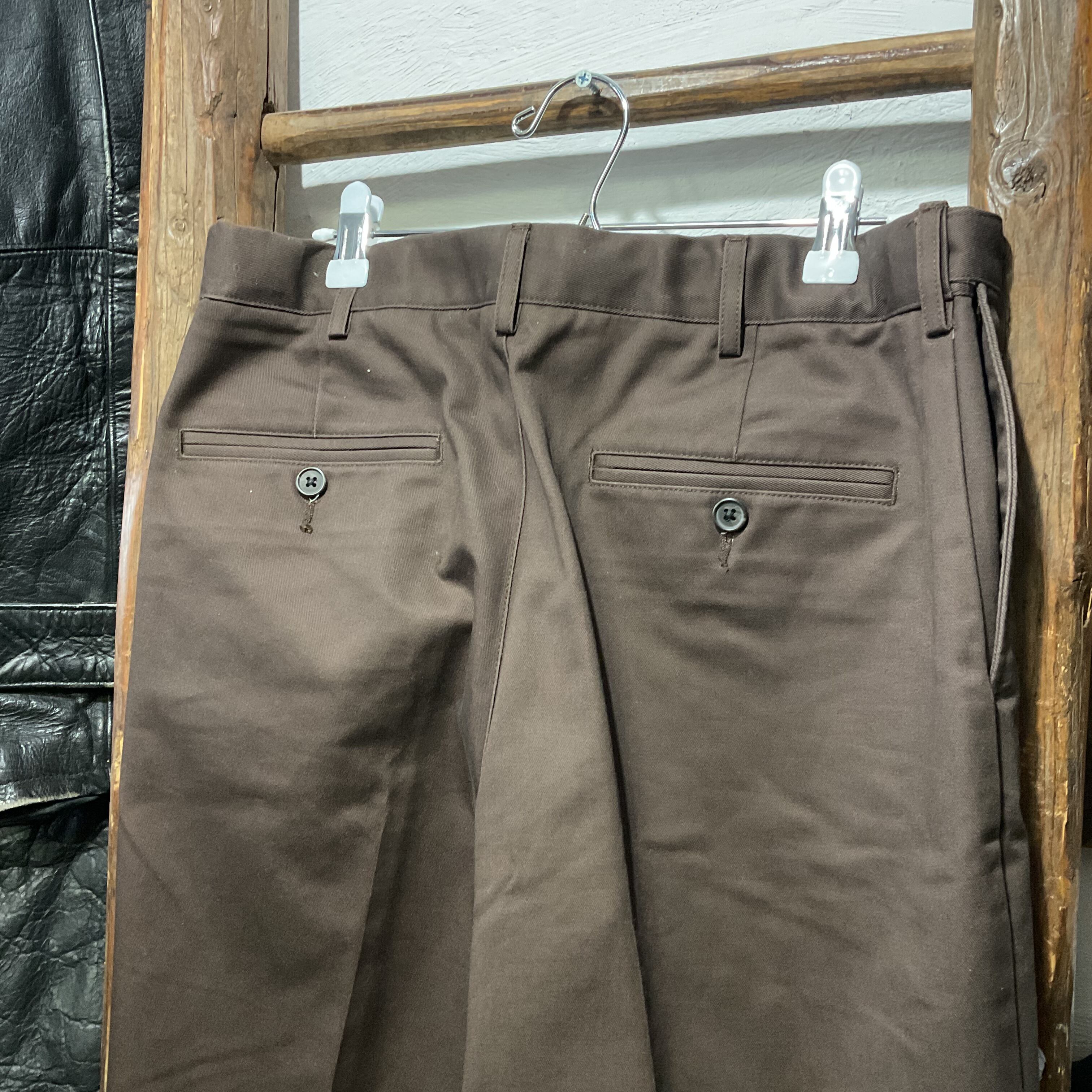 LAND’S ENDのTRADITIONAL FIT、落ち着いたブラウンのコットンパンツ。太すぎず細すぎないクラシックなシルエットで、合わせ方次第できれいめにもカジュアルにも振れる万能枠。