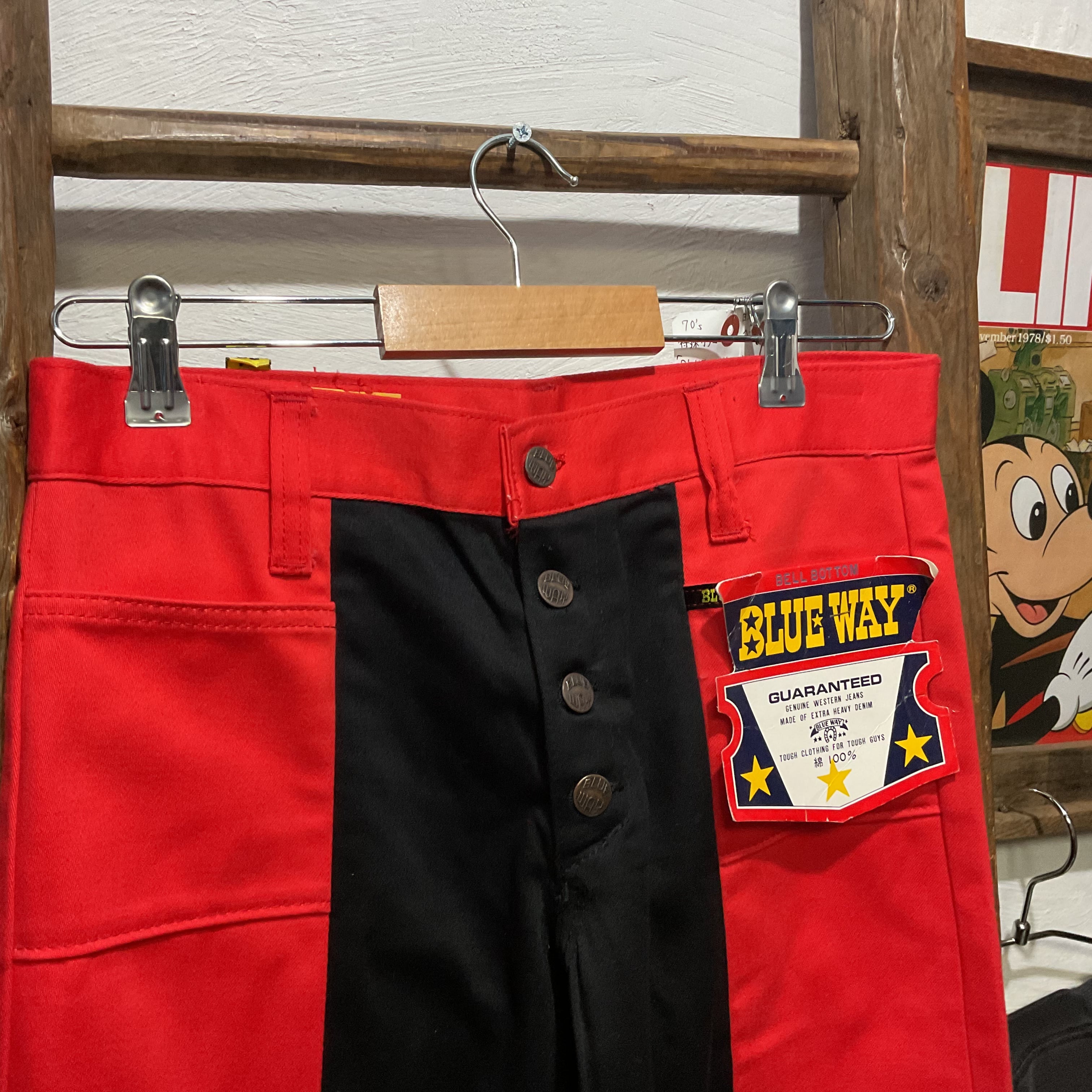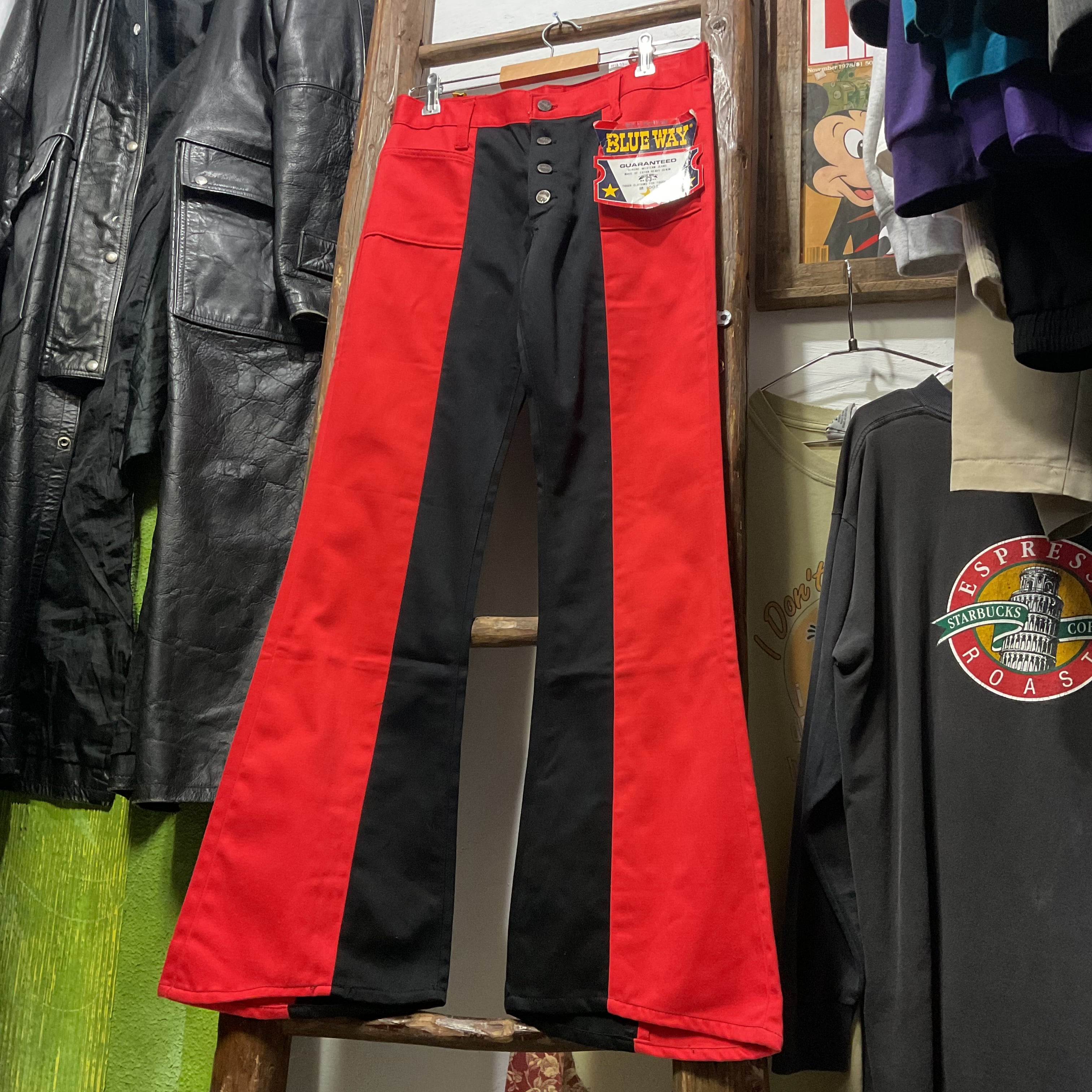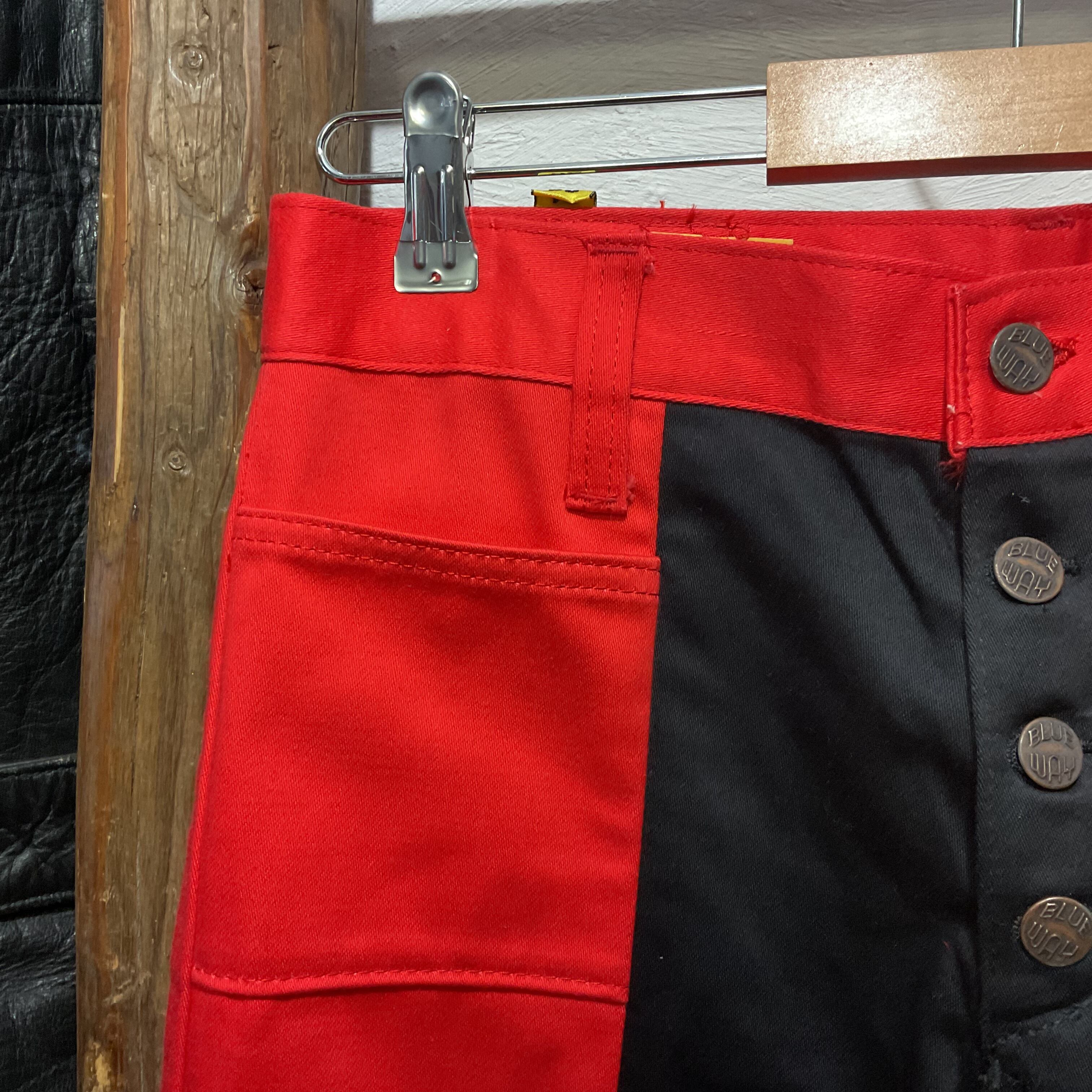 70's BLUE WAY Red/Black Two-Tone Bell-Bottom Jeans