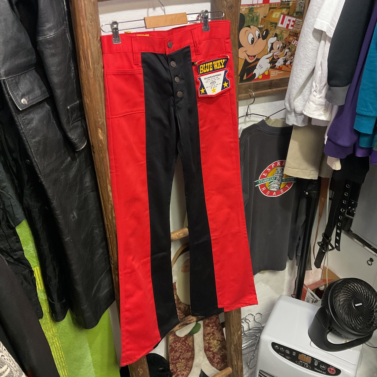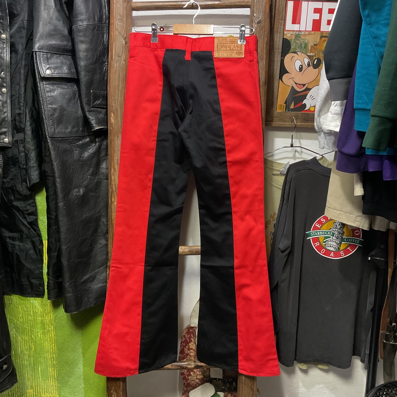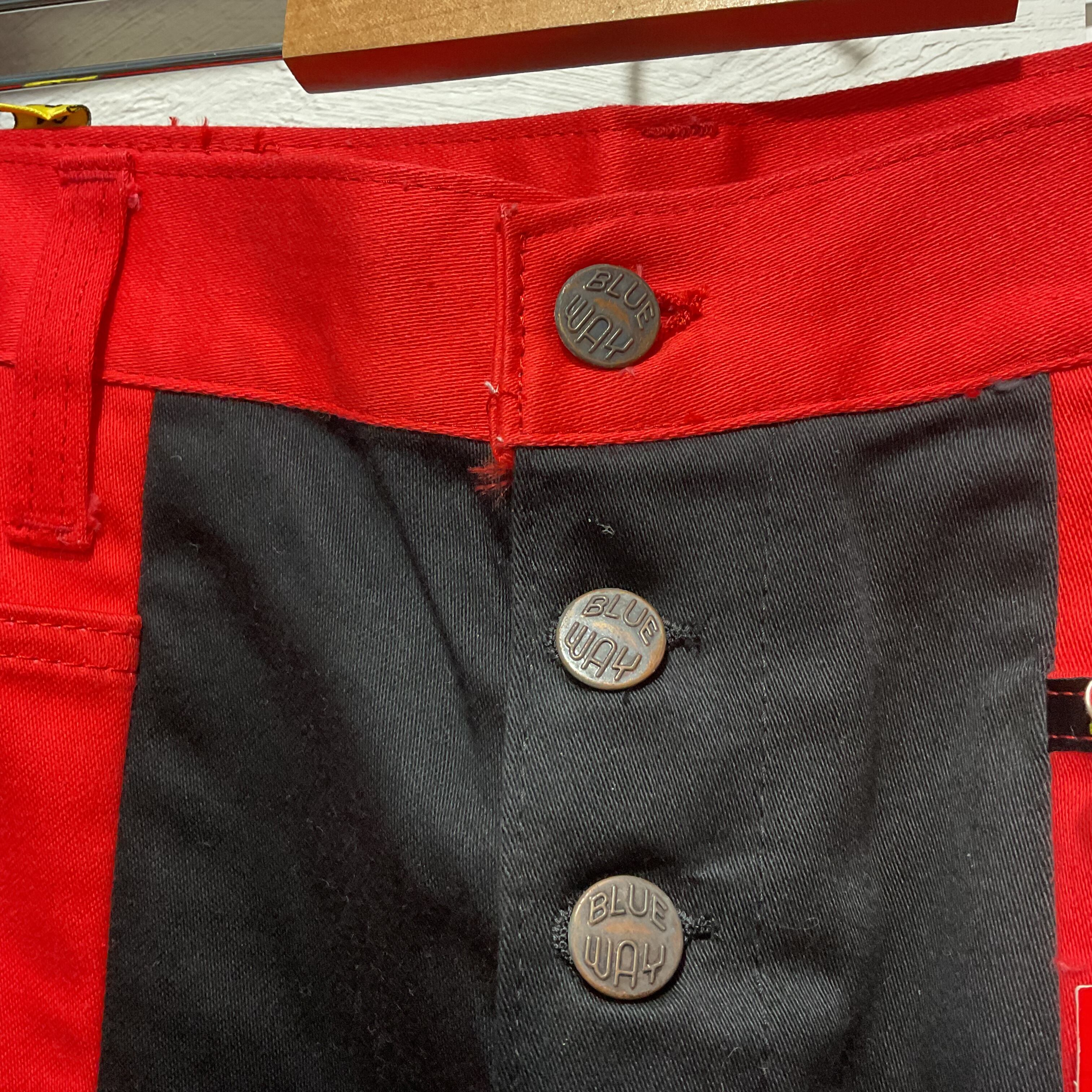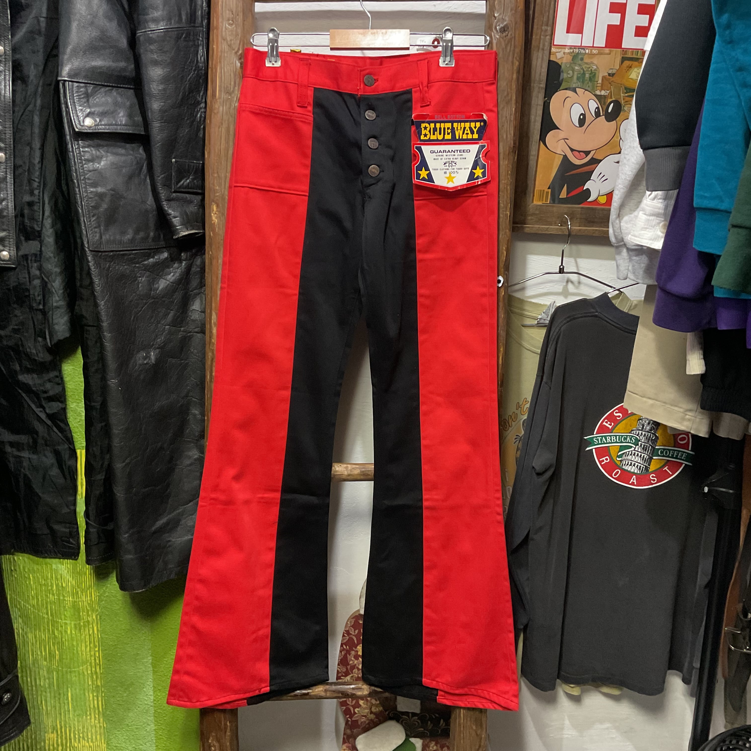 70's BLUE WAY Red/Black Two-Tone Bell-Bottom Jeans