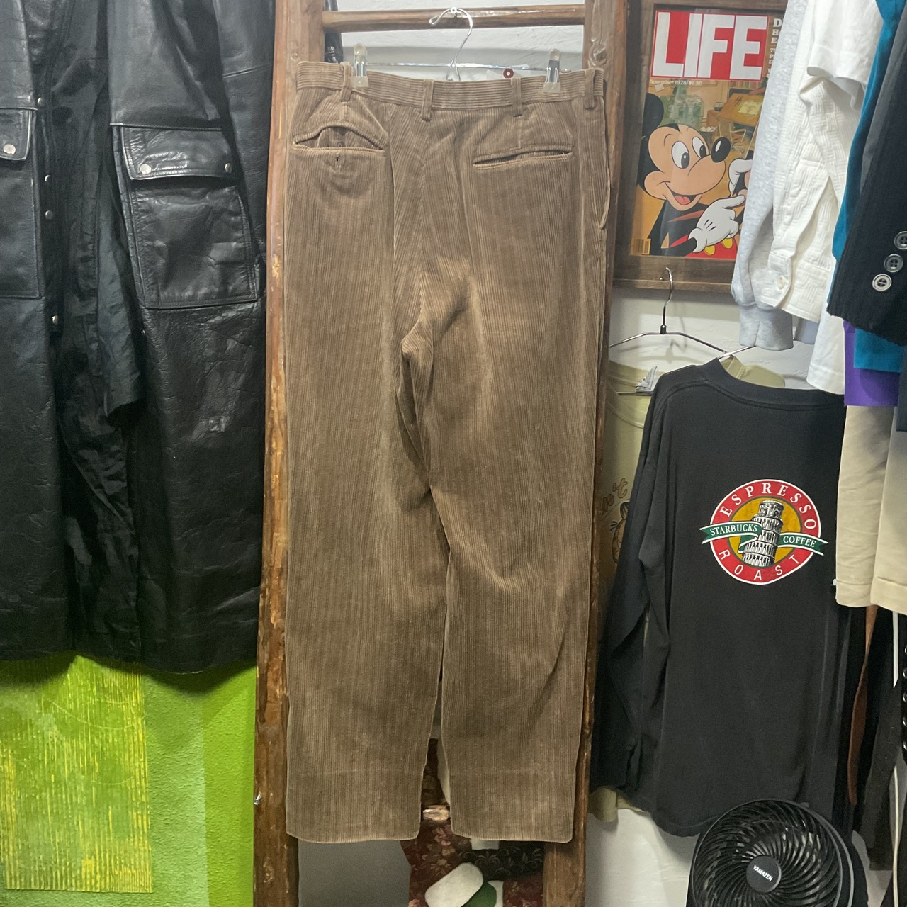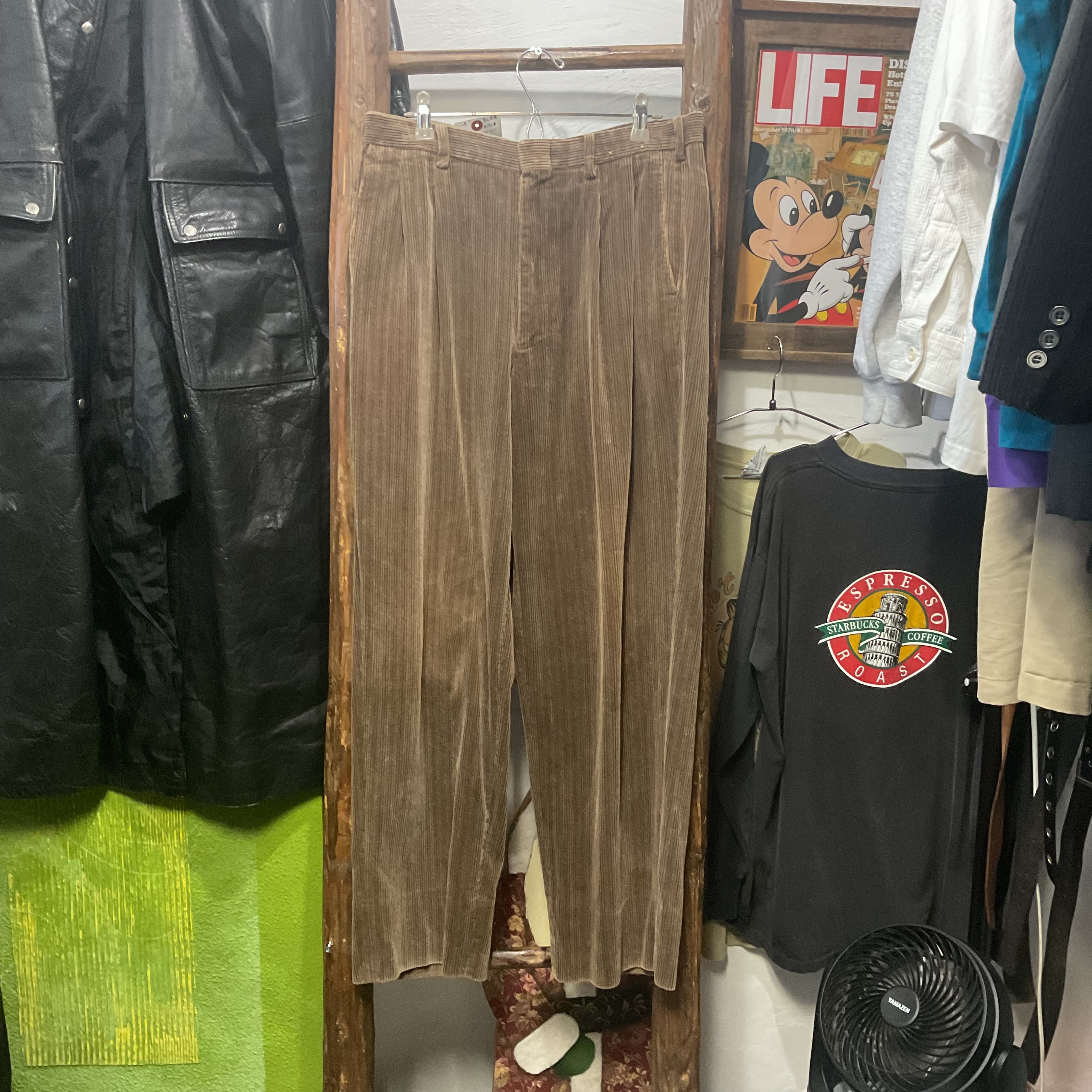 シルエットはストレート寄りで、きれいめにもカジュアルにも合わせやすいバランス。レザーシューズやブーツで大人っぽくまとめても、スニーカーでラフに振っても成立。古着ならではの“こなれ感”がありつつ、主張が強すぎないので、ワードローブの定番として活躍。