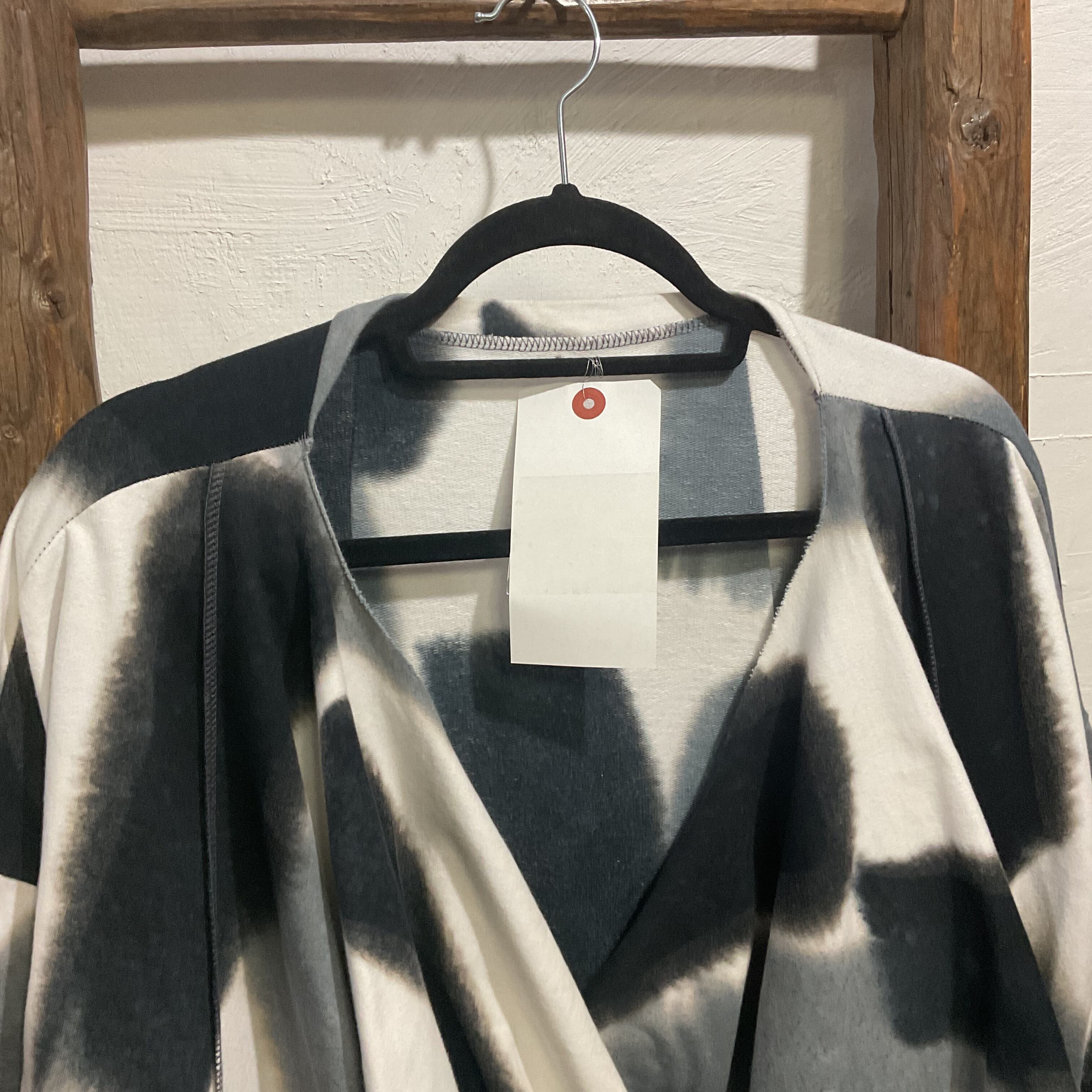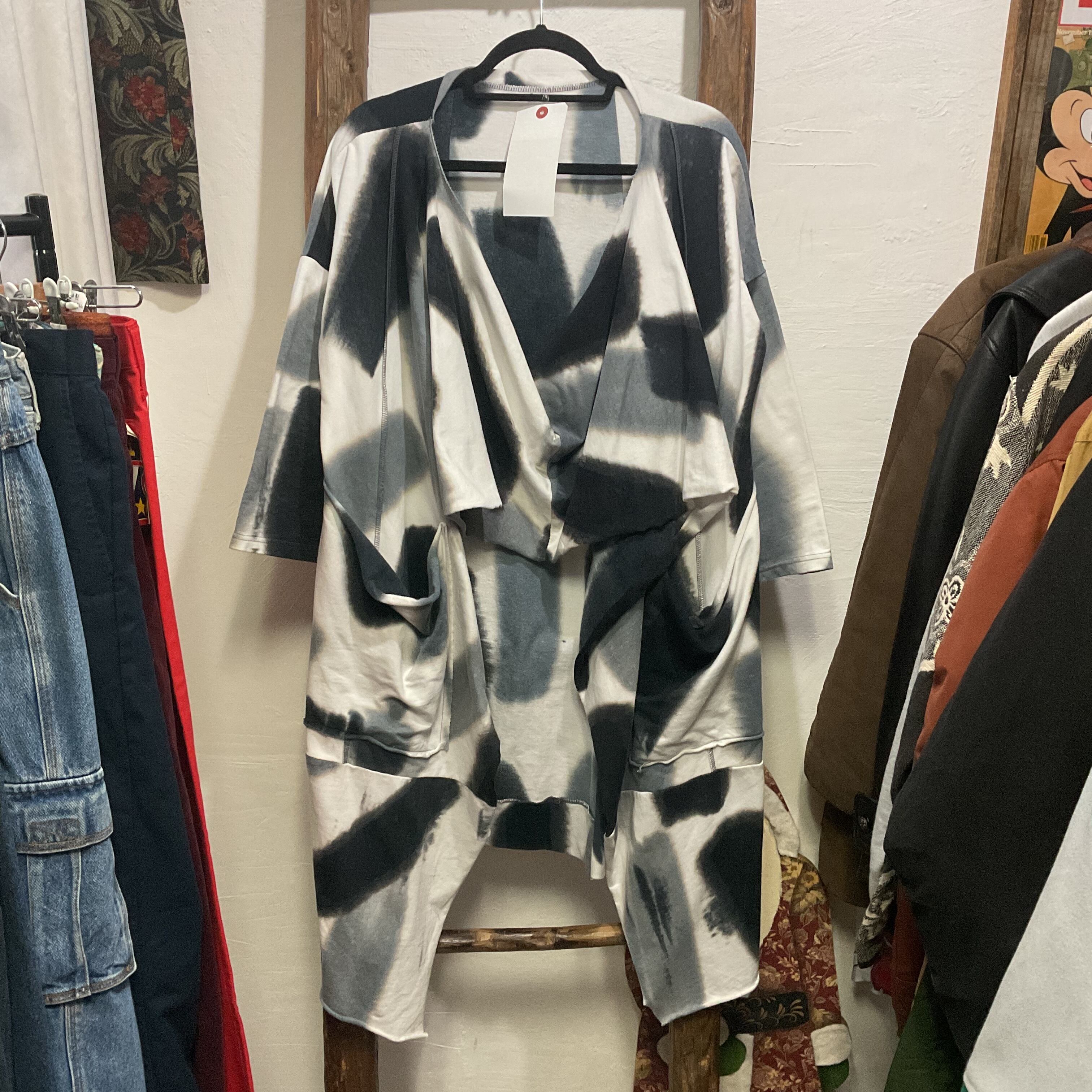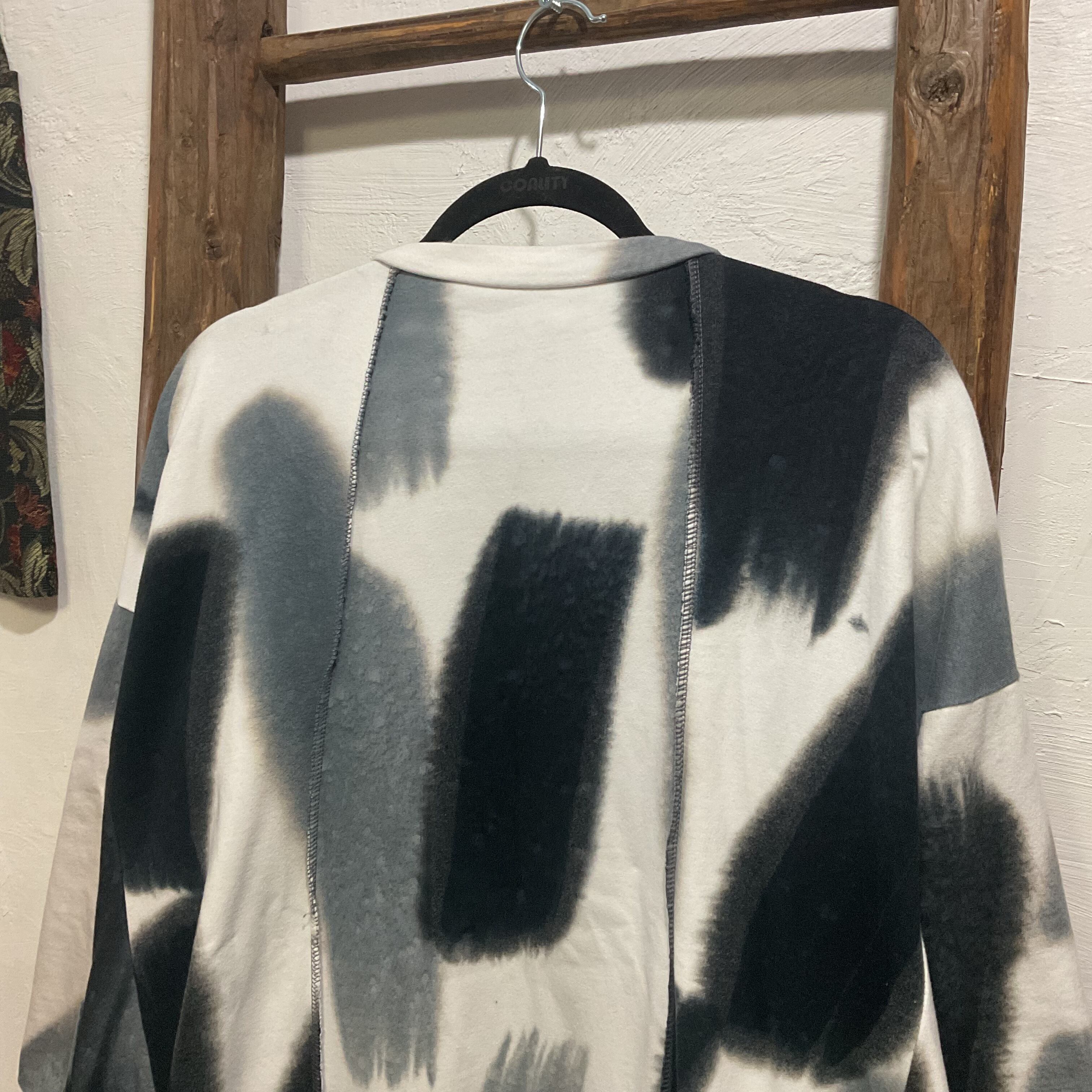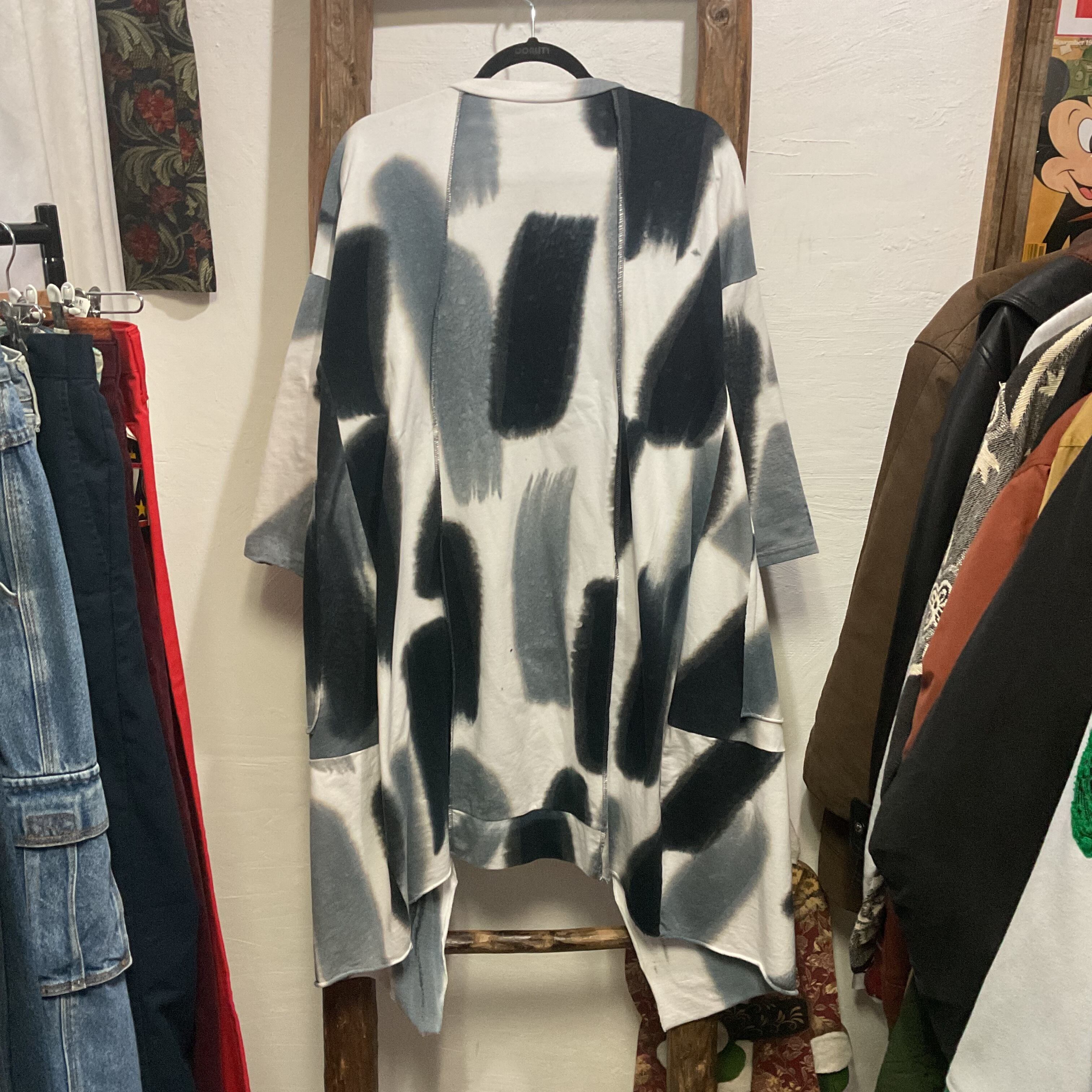 モノトーンの大胆なブラッシュ柄が目を惹く、デザイン性の高いオーバーシルエットカーディガン。