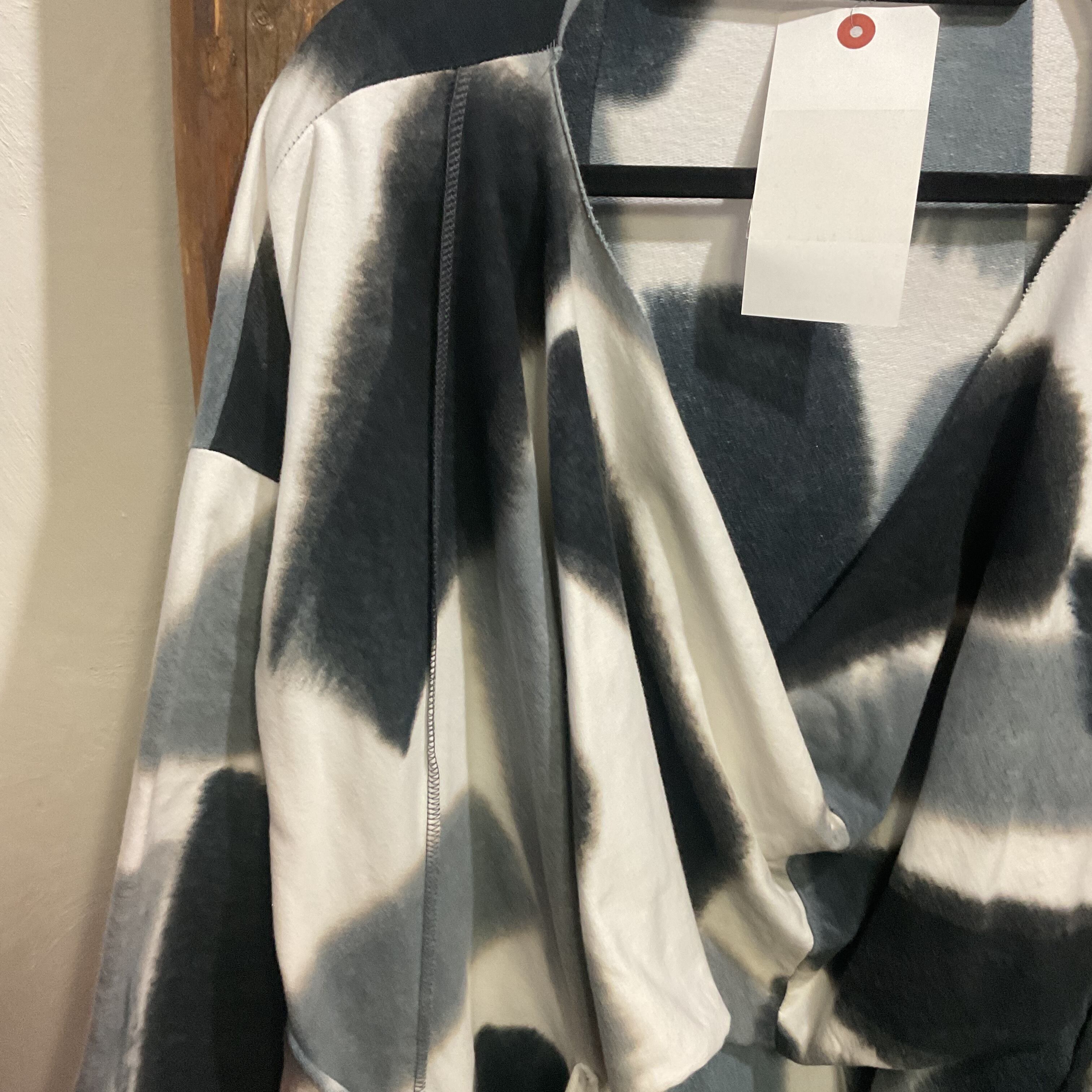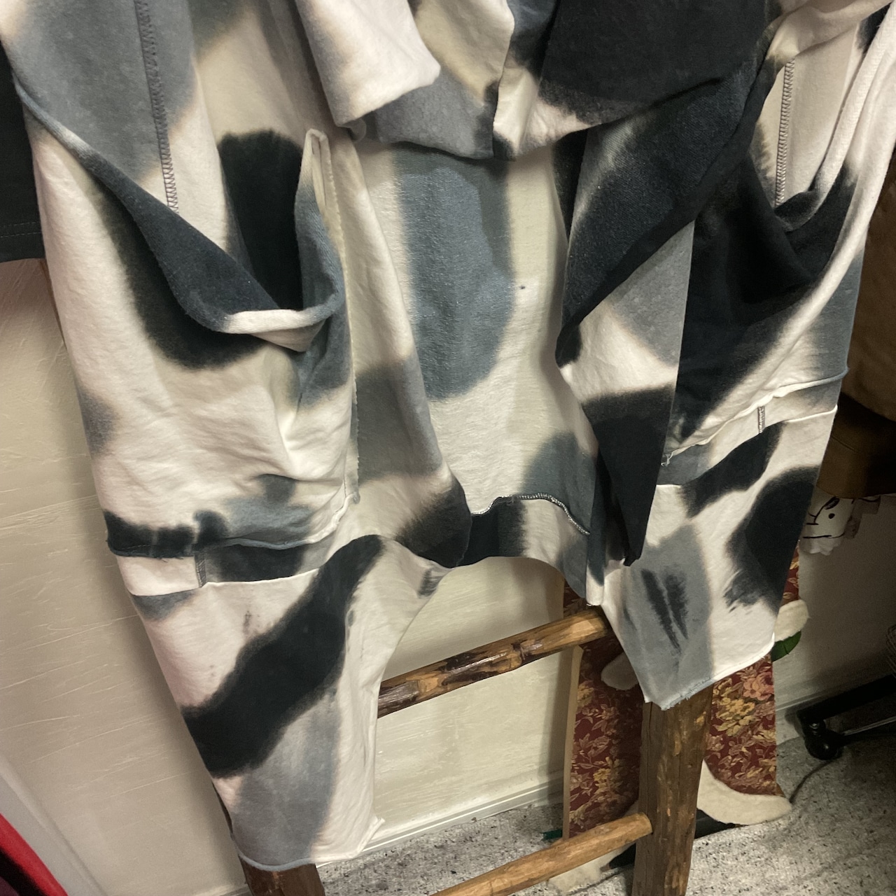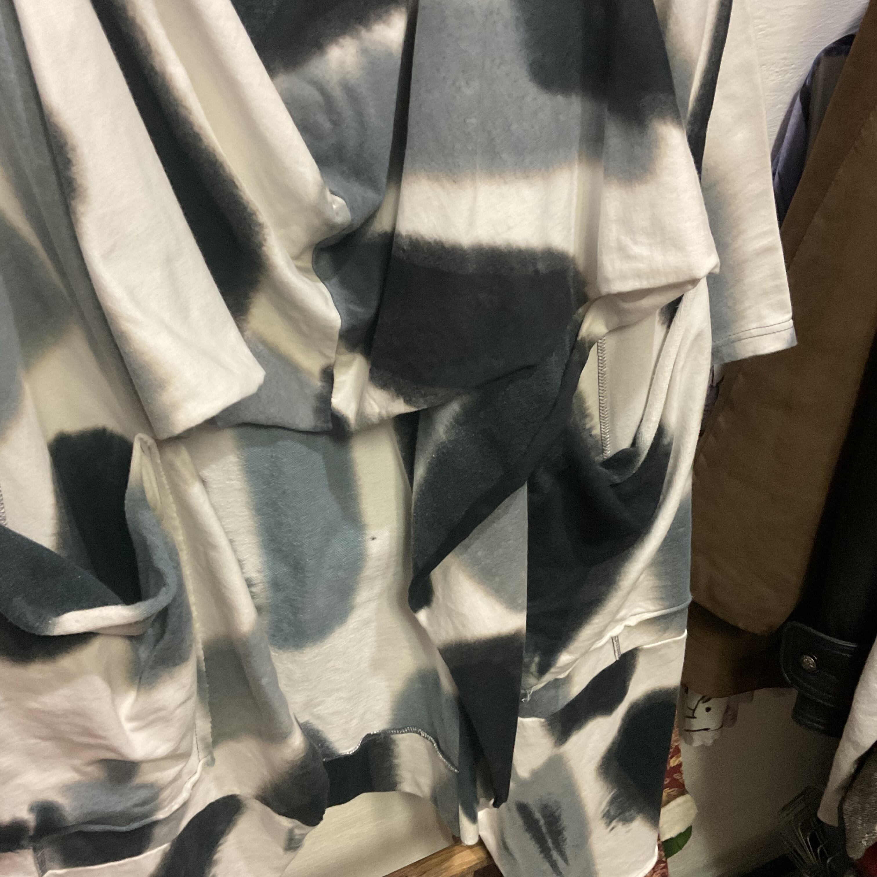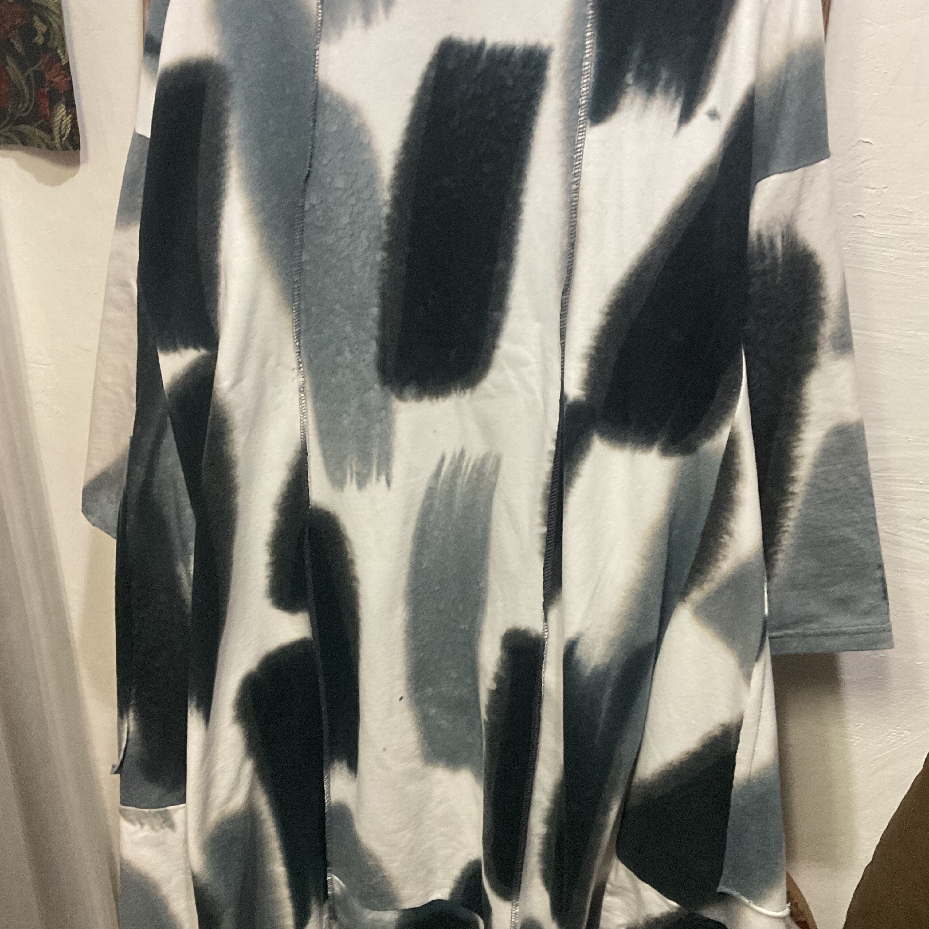 モノトーンの大胆なブラッシュ柄が目を惹く、デザイン性の高いオーバーシルエットカーディガン。