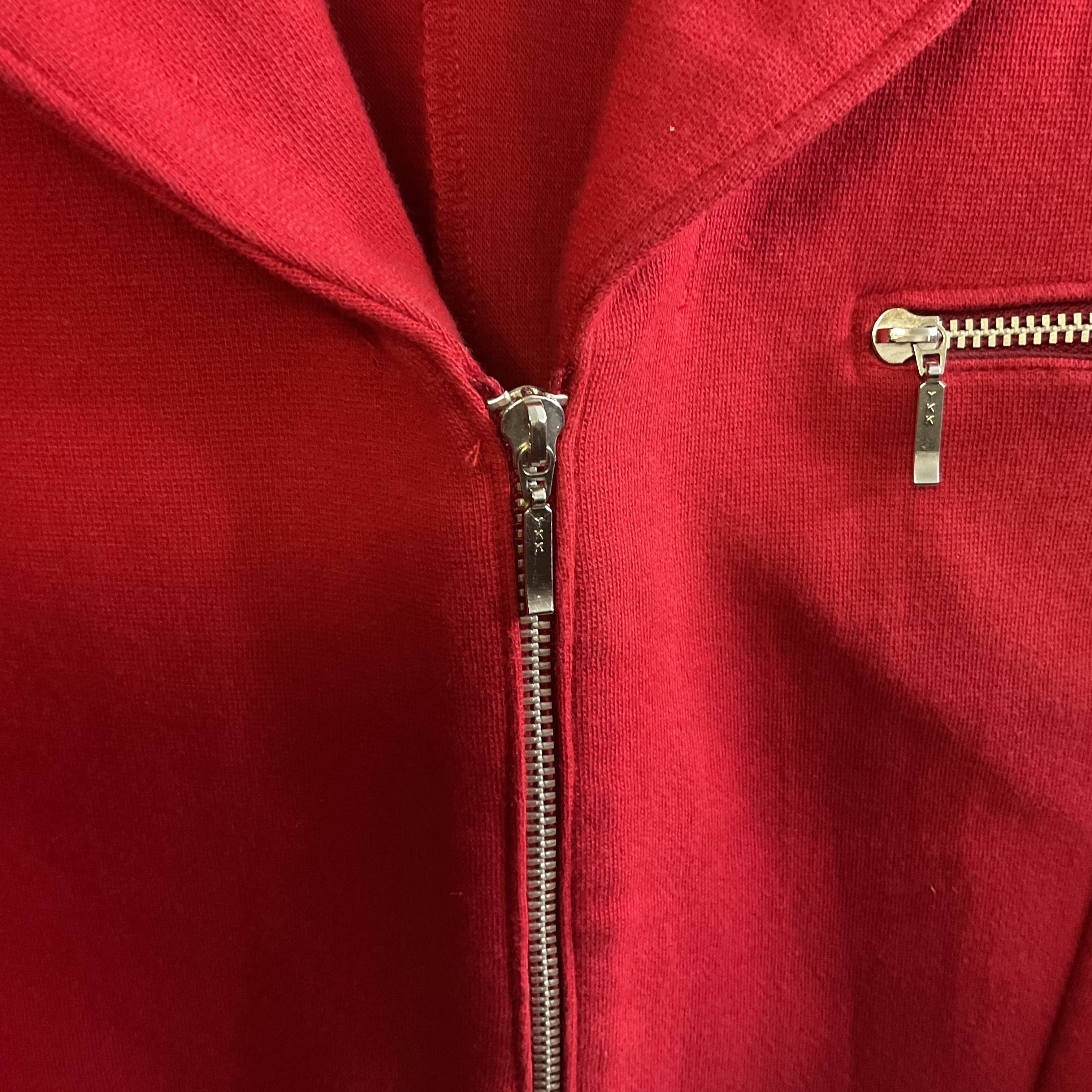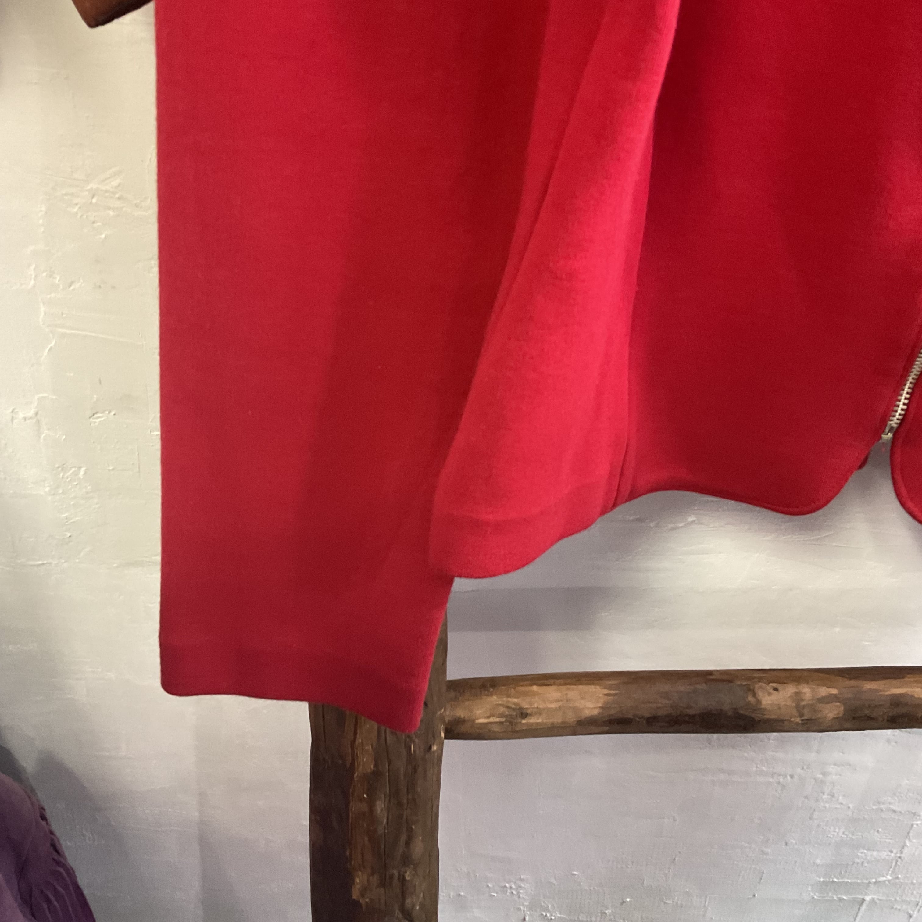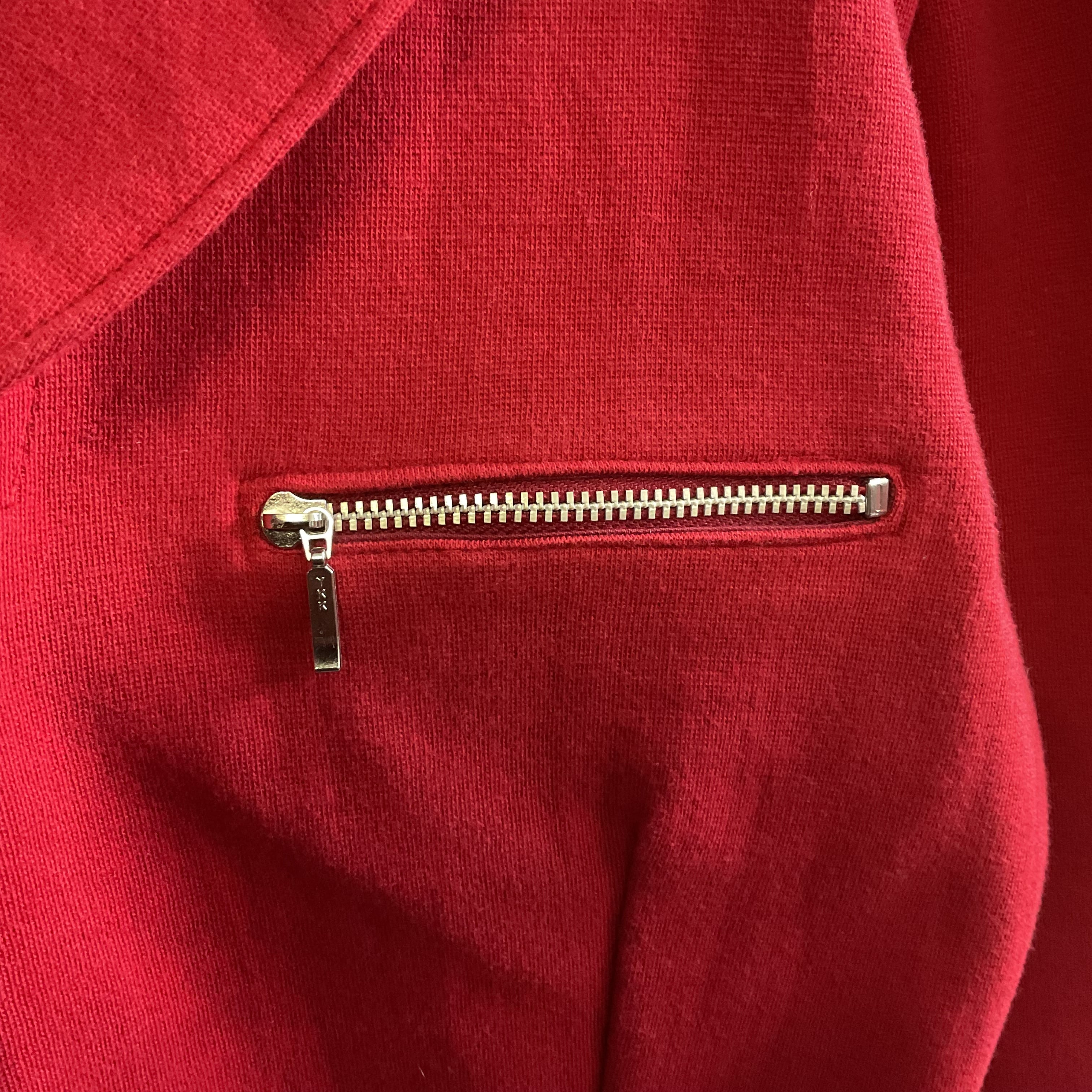 鮮やかなレッドが目を惹く、ジップアップ仕様のショートジャケット。