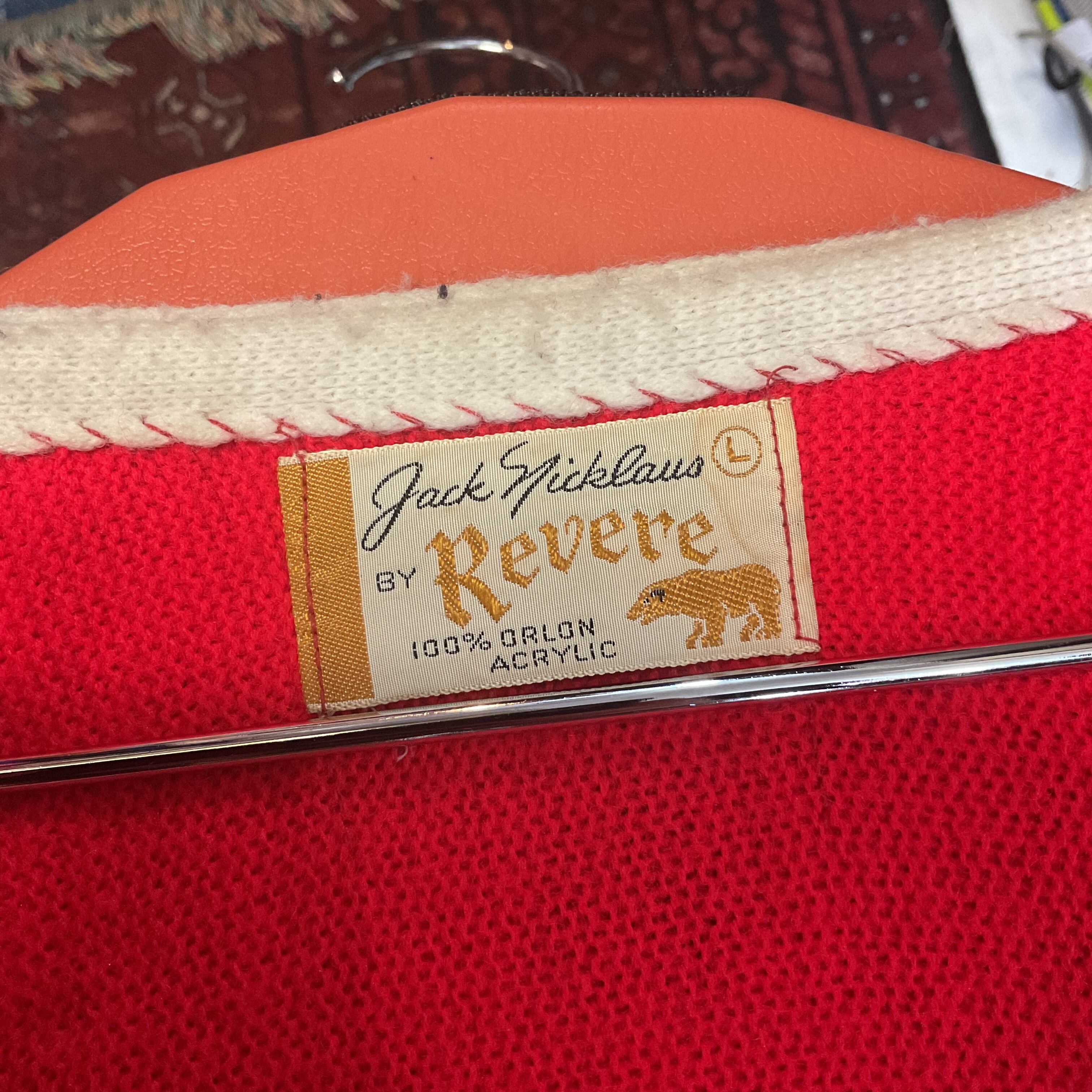70s–80s Jack Nicklaus by Revere Red Acrylic Cardigan with White Piping