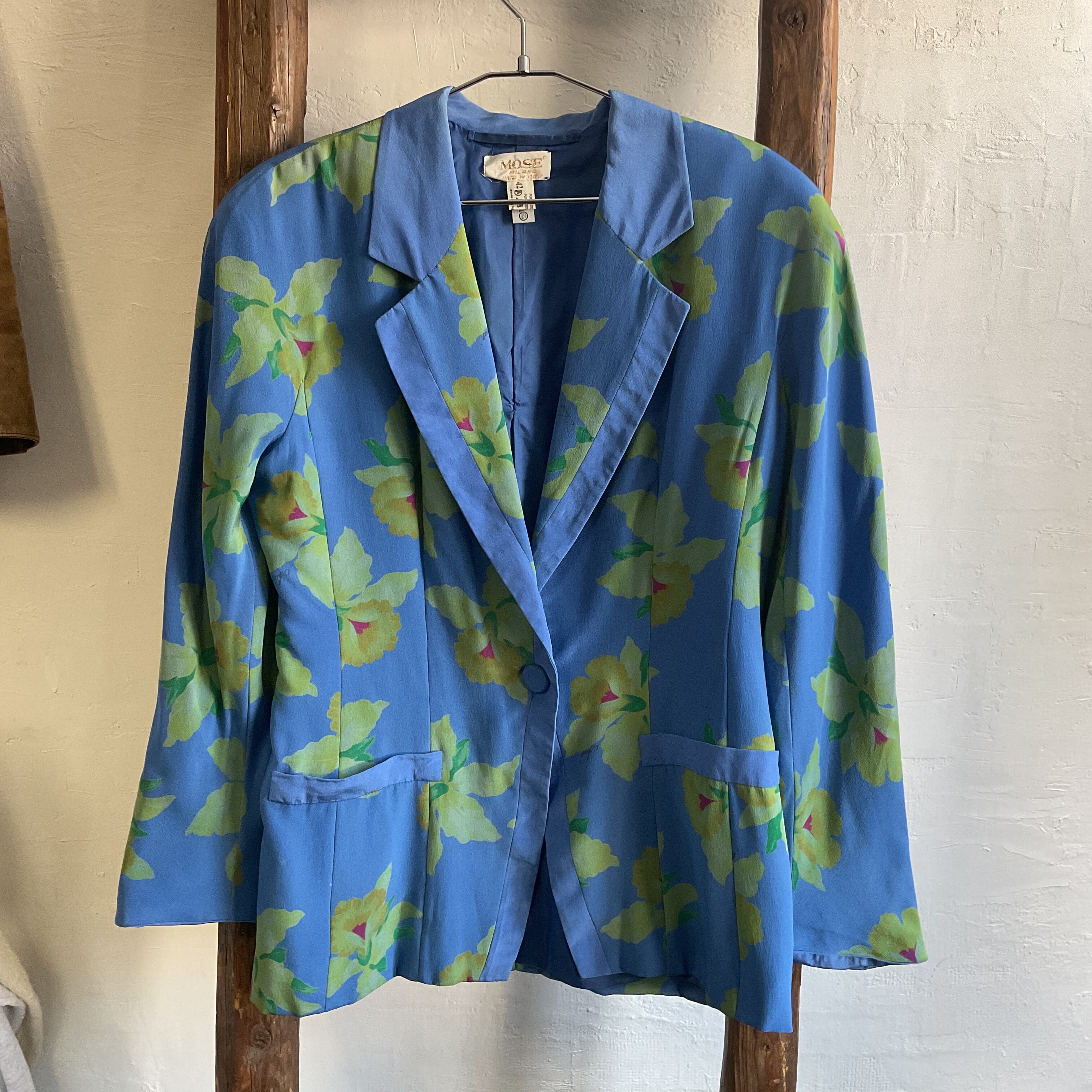 デニムでカジュアルダウンしても素敵ですし、スラックスやスカートと合わせればぐっとエレガントな印象。インナーをシンプルなタンクトップやカットソーにすることで、ジャケットの華やかさがより引き立ちます。ヴィンテージらしい大胆な柄使いと、上品な仕立てのバランスがとても魅力的で、普段の装いに少し特別感を加えたいときにぴったりの1着。