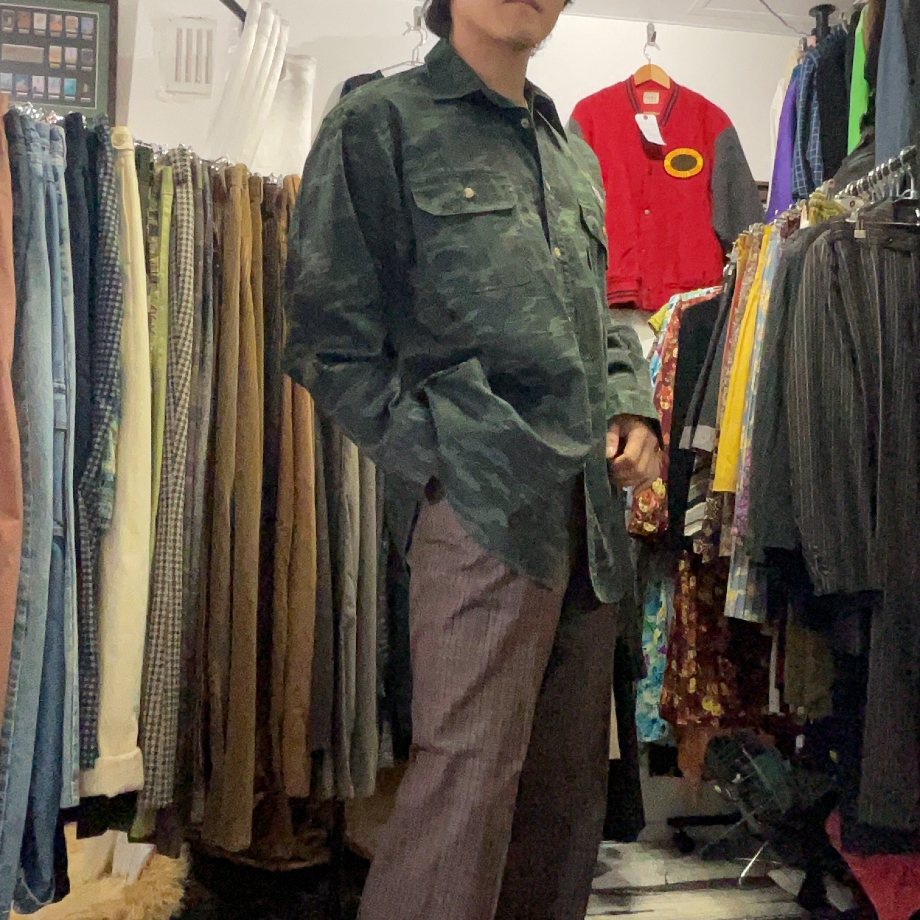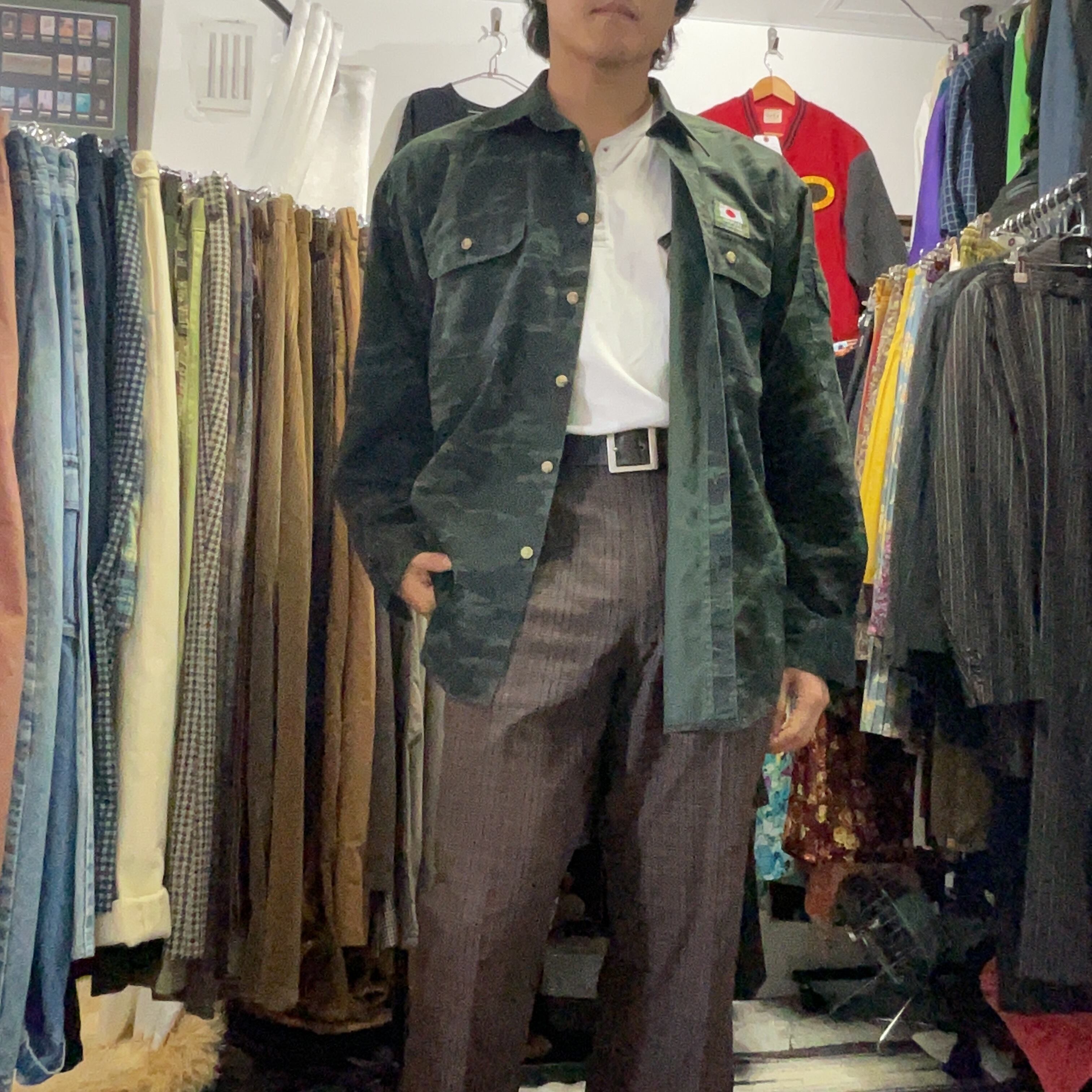 It can be worn on its own as a statement shirt or layered over a T-shirt or thermal for a more relaxed outfit. It pairs naturally with cargo pants or denim for a classic military-inspired look, but it also works surprisingly well with black trousers or slacks for a cleaner, more urban style. This is a versatile piece that blends workwear, military, and streetwear elements in a very wearable way.