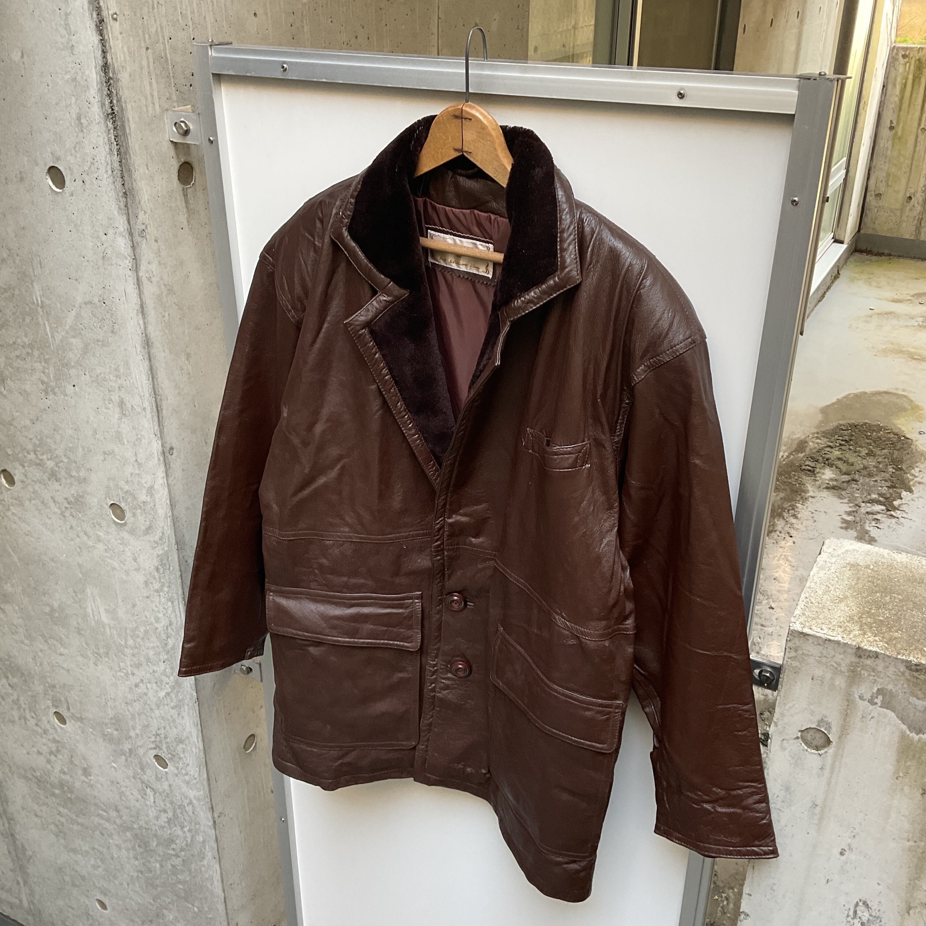 Mode nolle Red Brown Wool Neck Leather Jacket