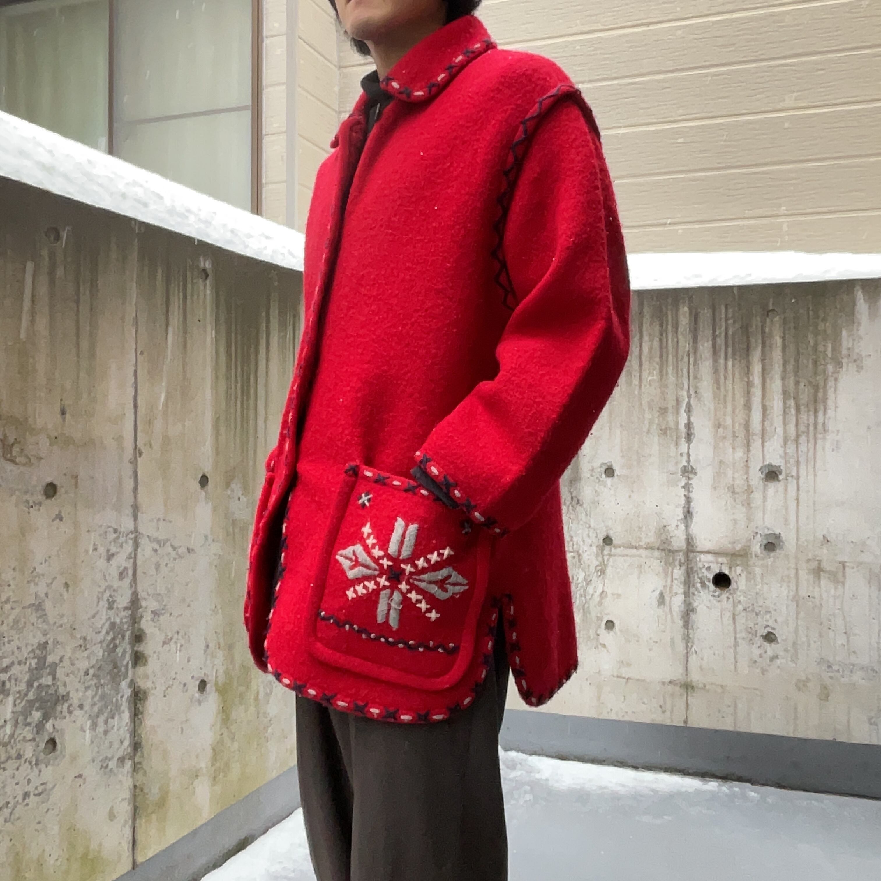 CORDIER Red Color Nordic Button Jacket